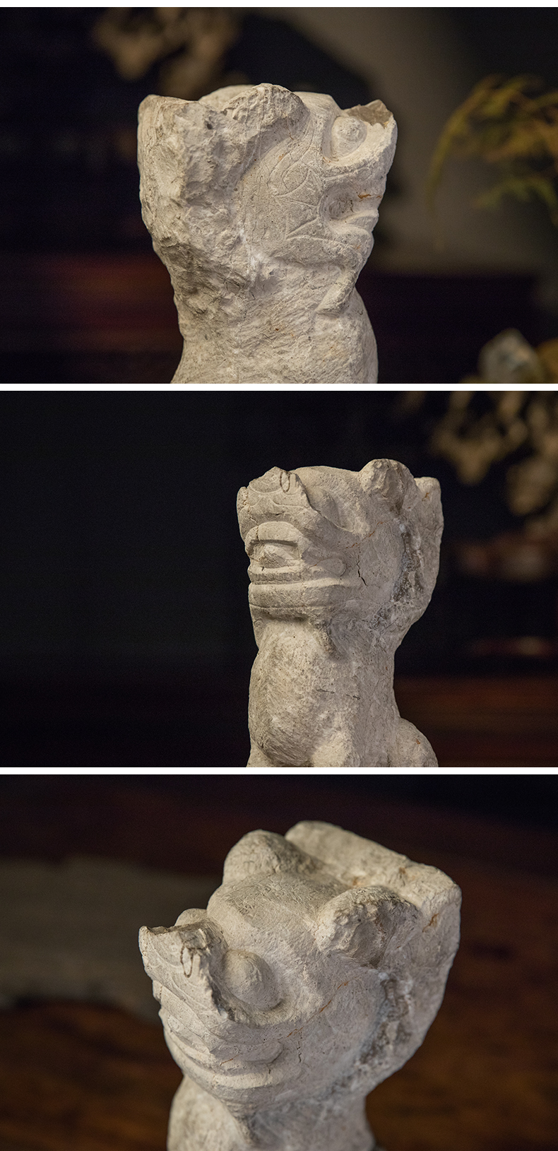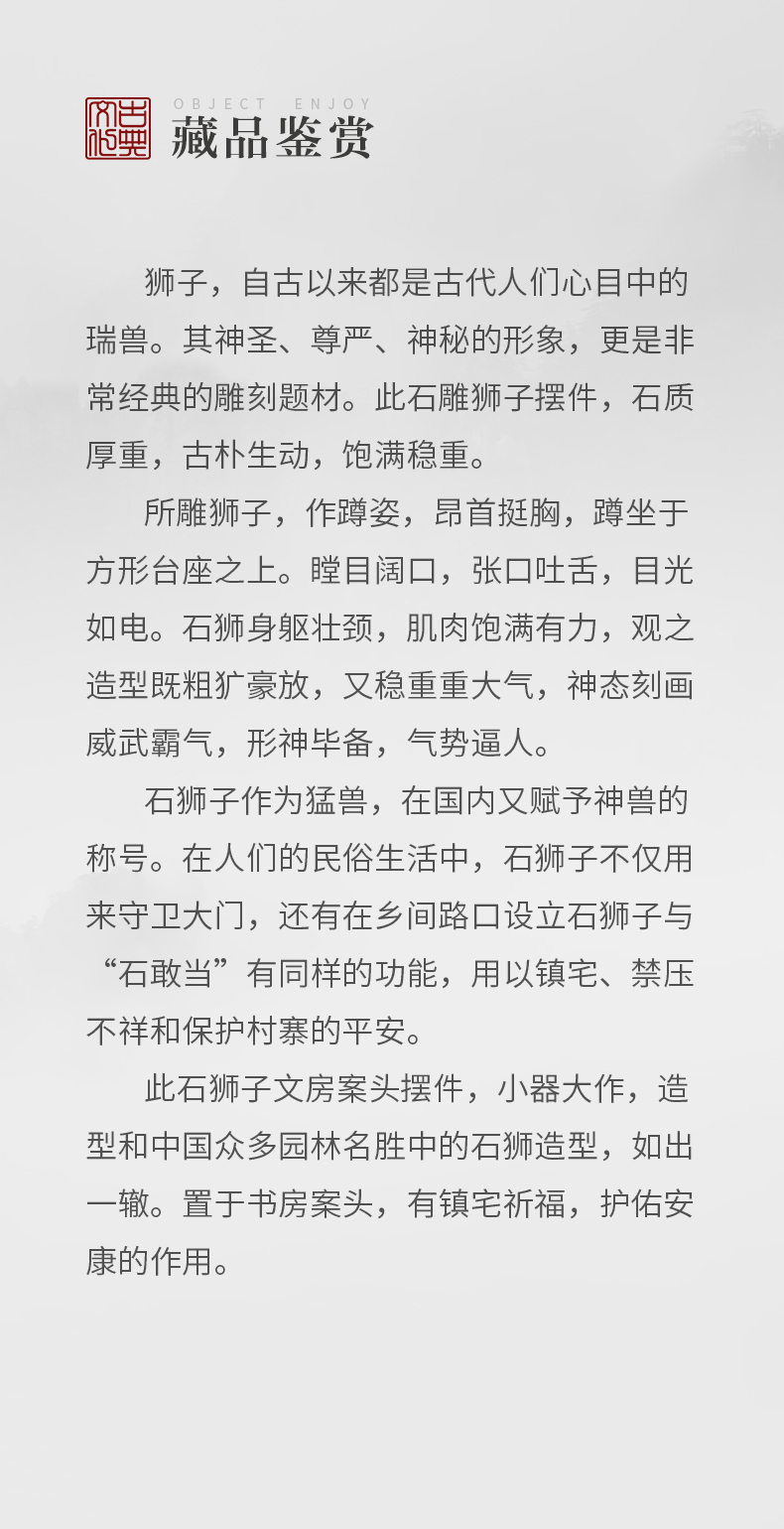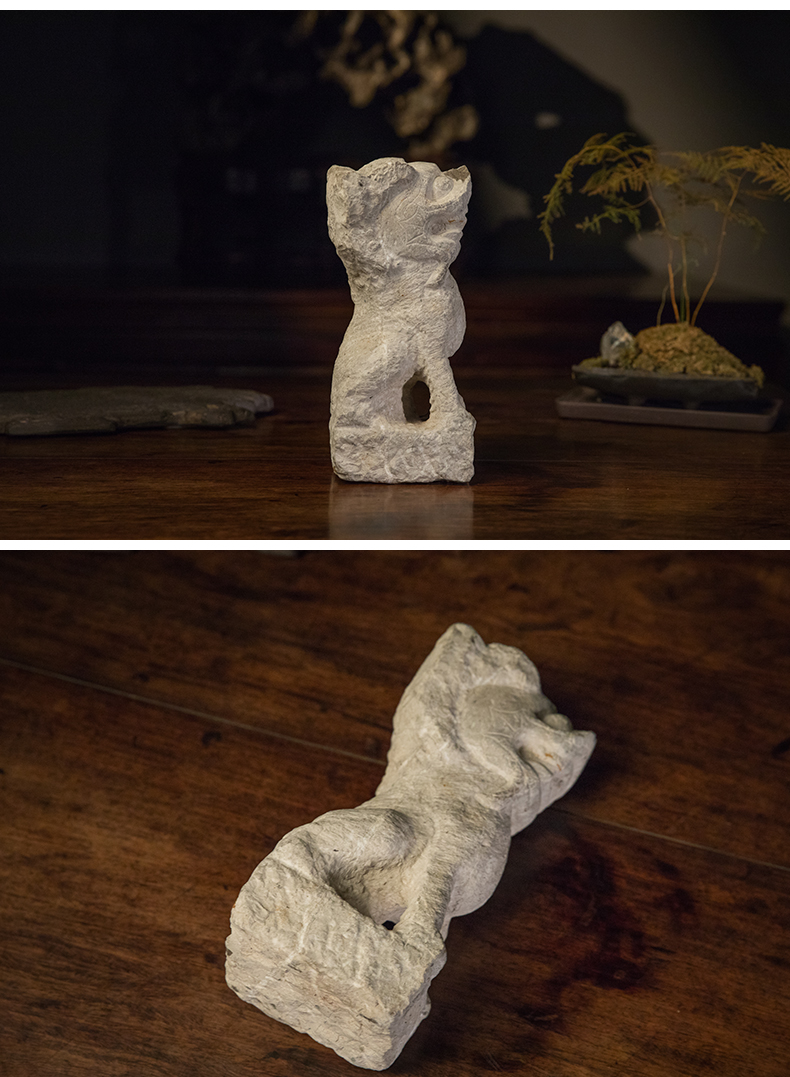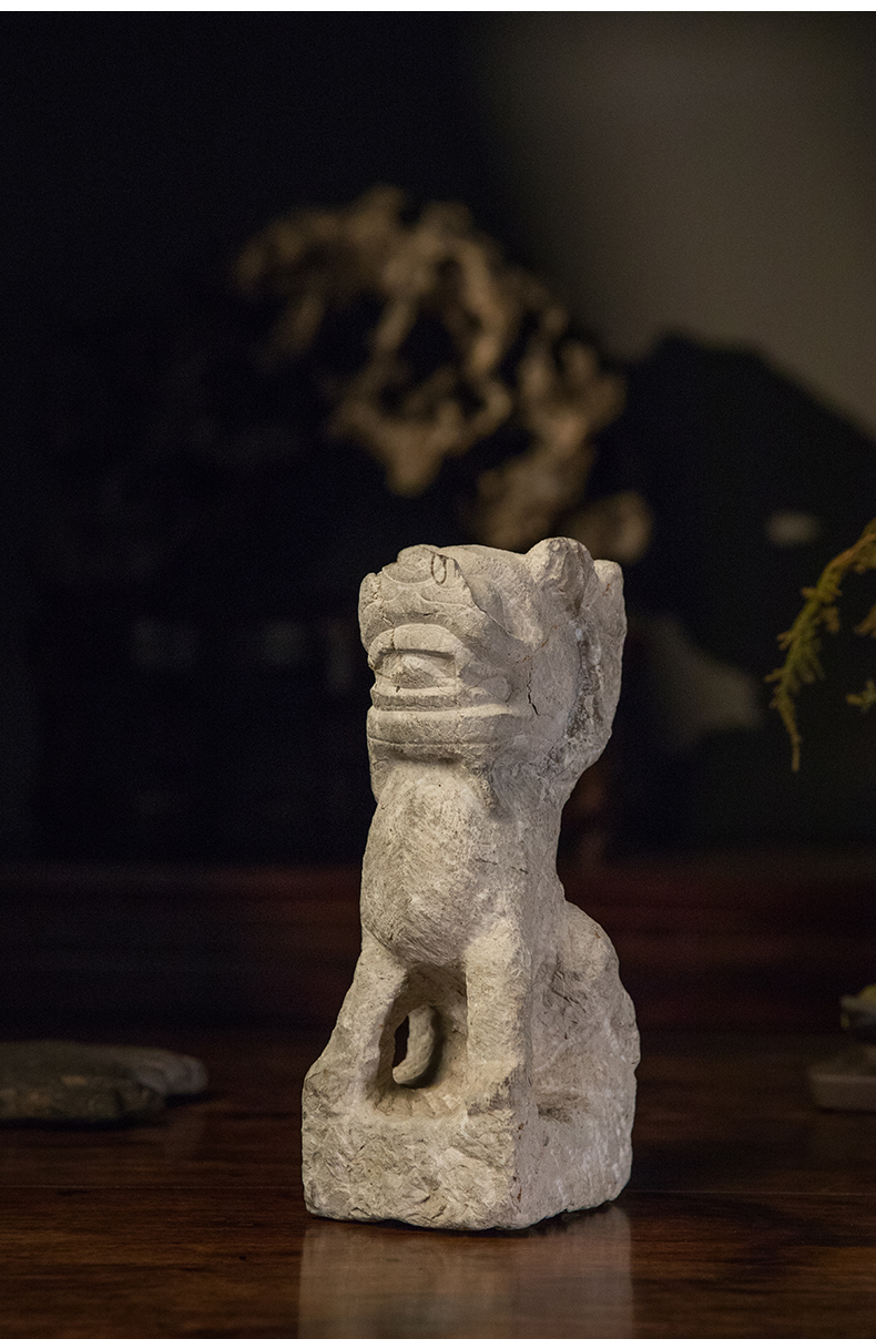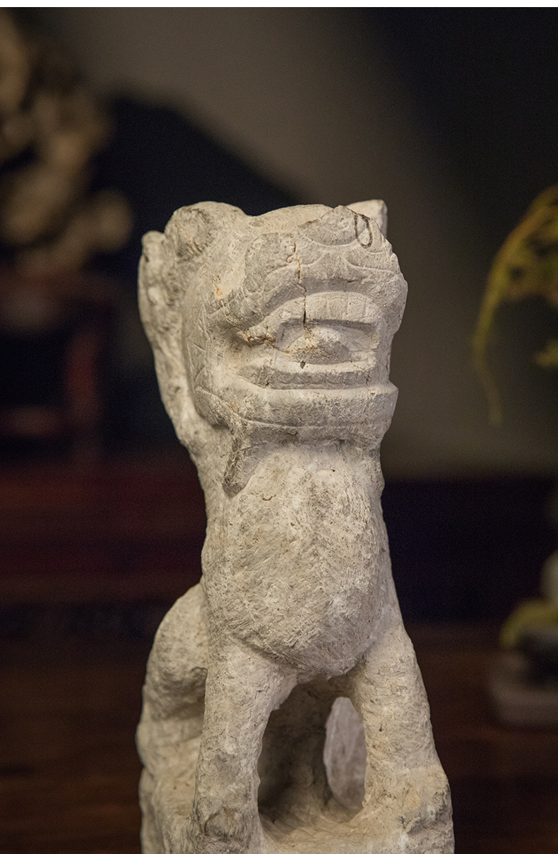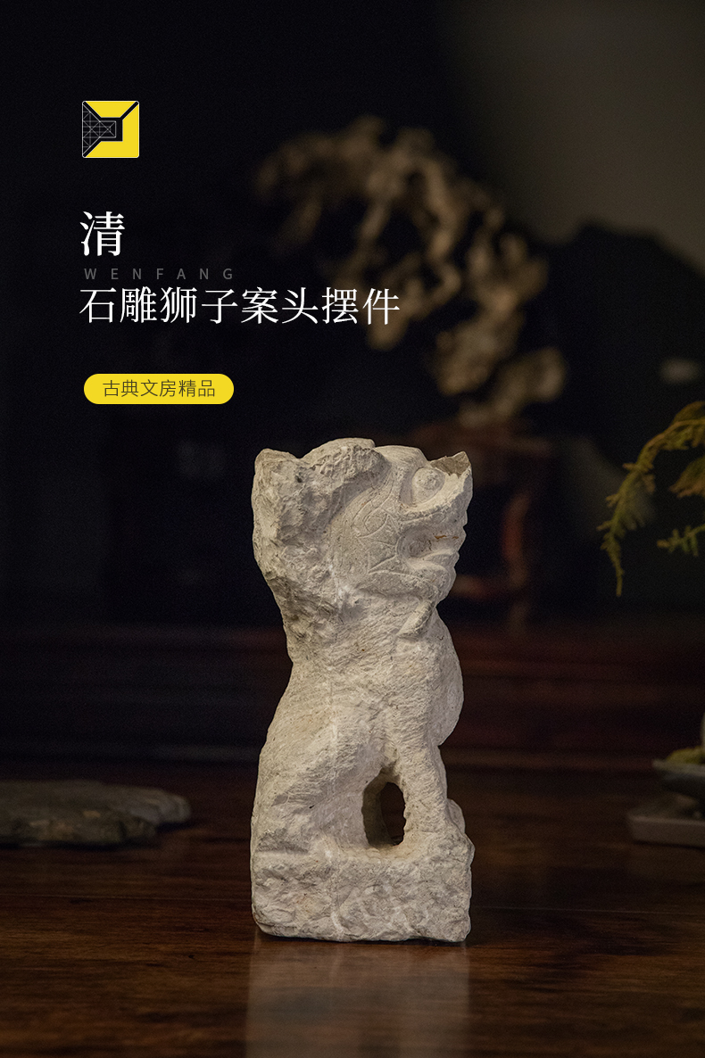 清 石雕狮子案头摆件