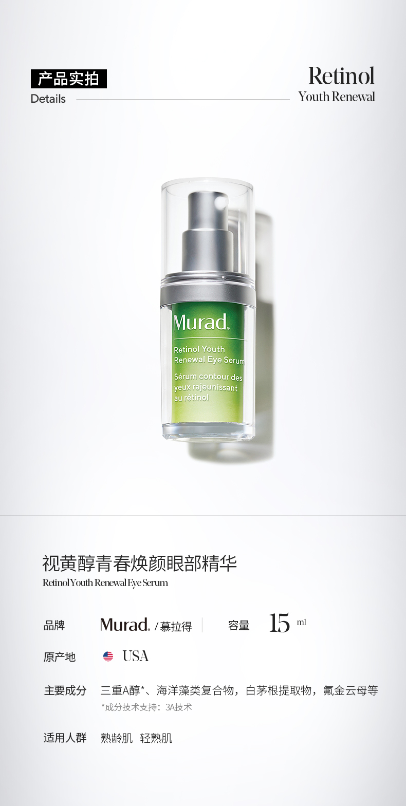 Murad慕拉得视黄醇眼部精华15ml