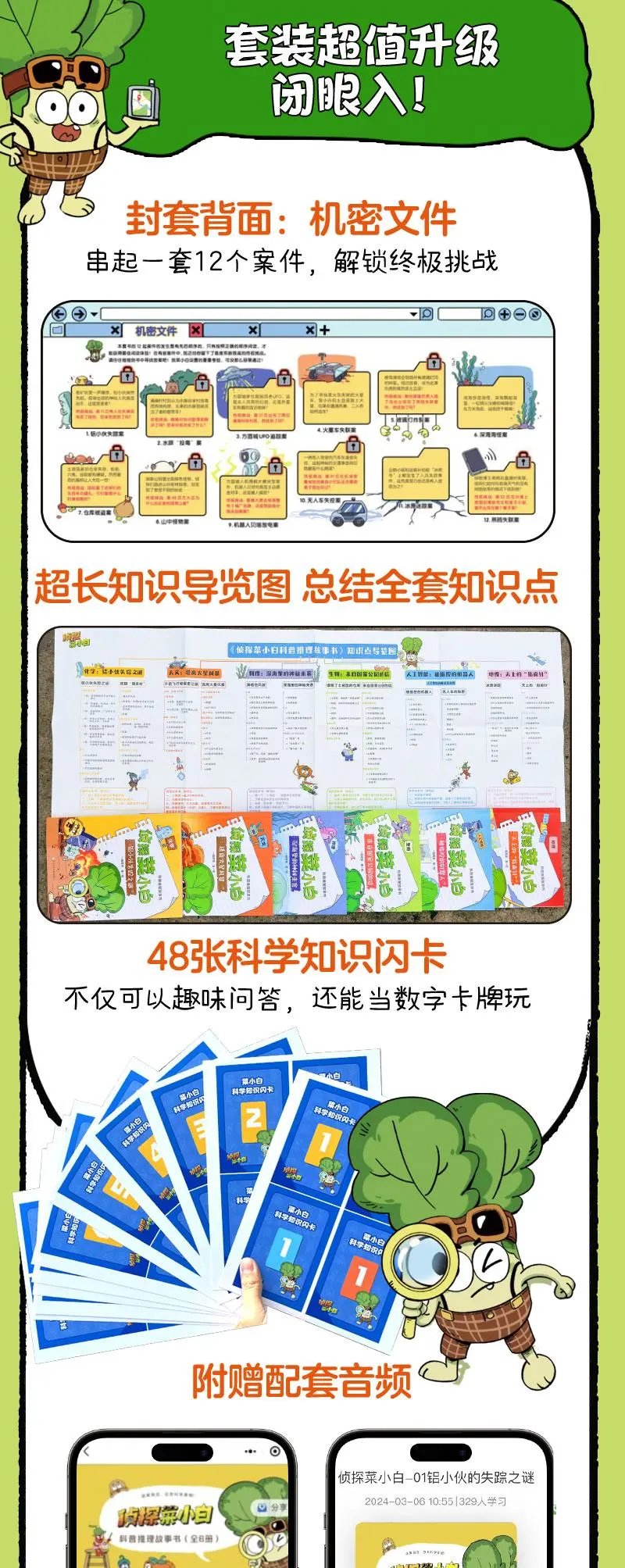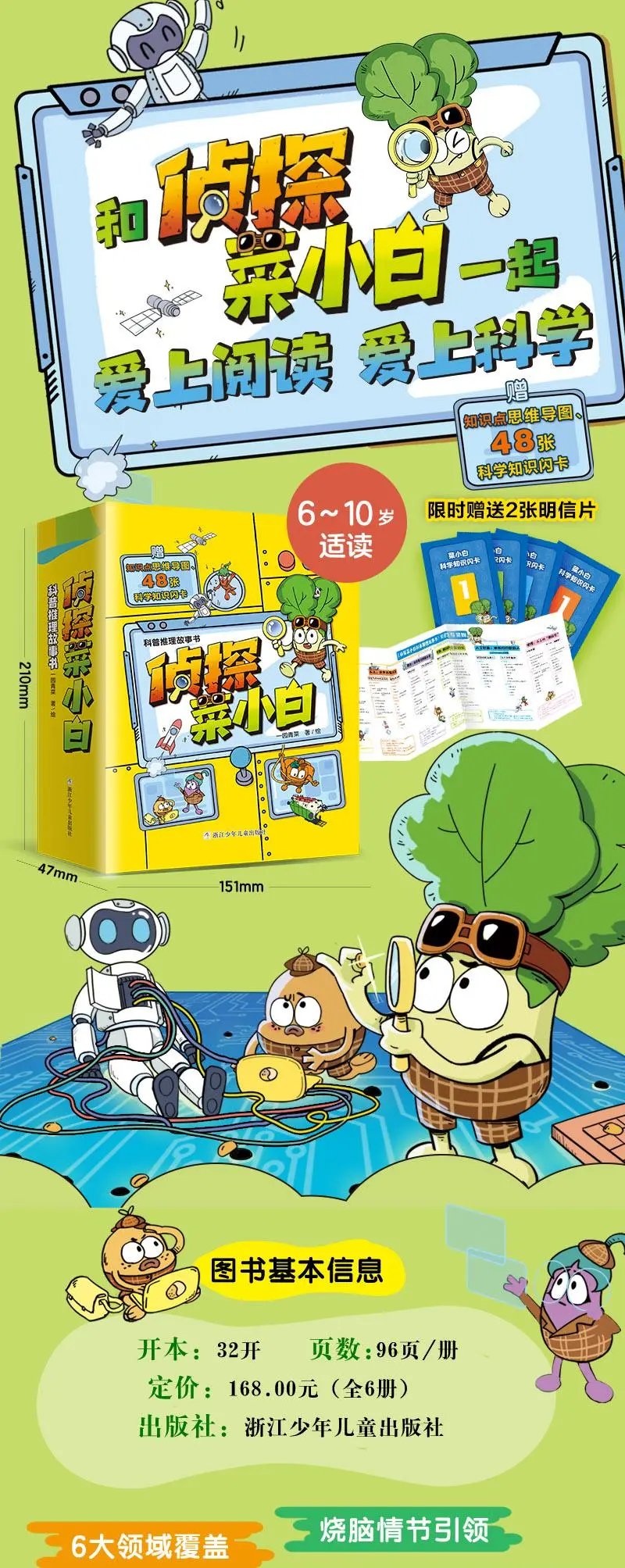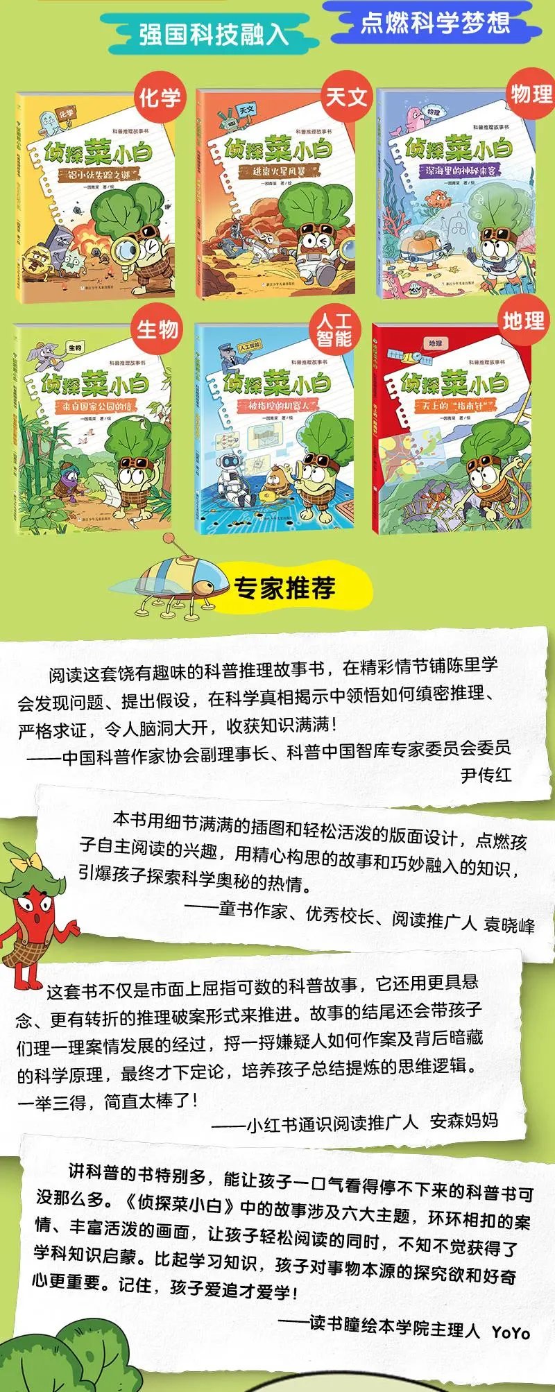 5岁+ 侦探菜小白(6册) 为孩子量身打造:形象Q萌可爱、各具特色,图文比例适当,适合小学中低段孩子阅读