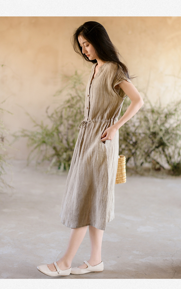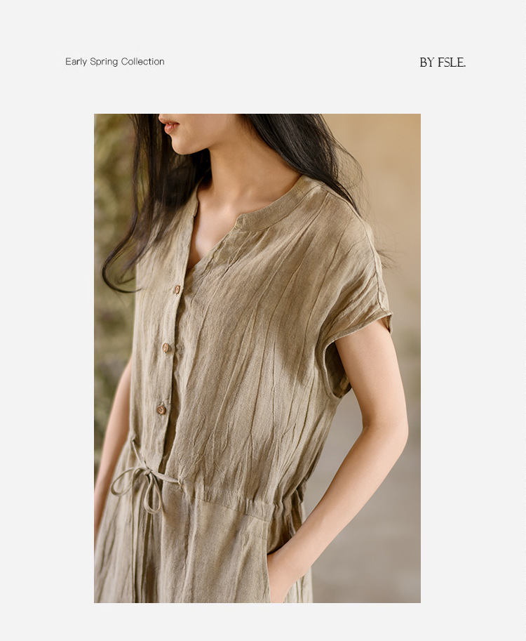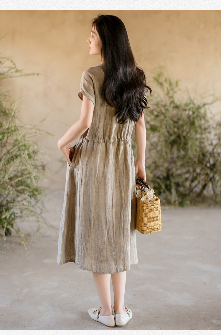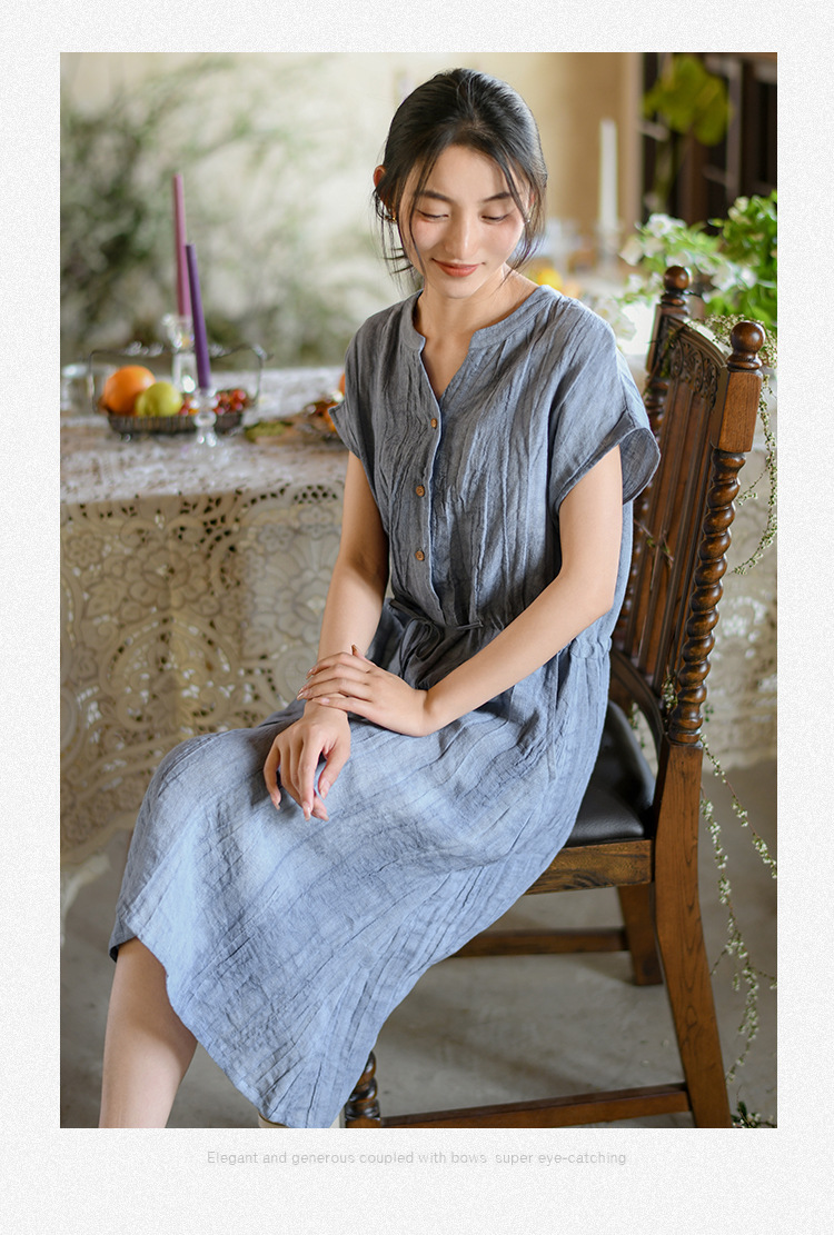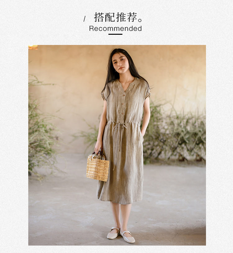 丁摩 新中式女装夏季短袖亚麻连衣裙女收腰显瘦高级感国风裙子4ZF-63002