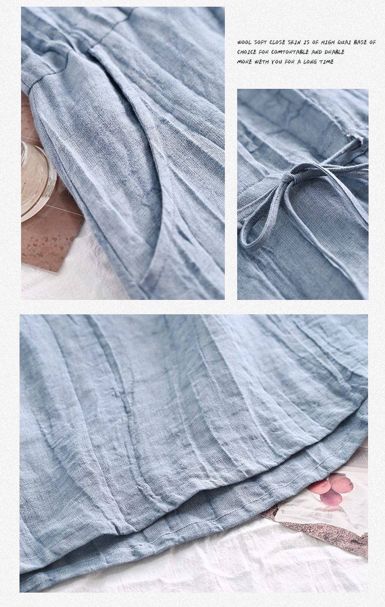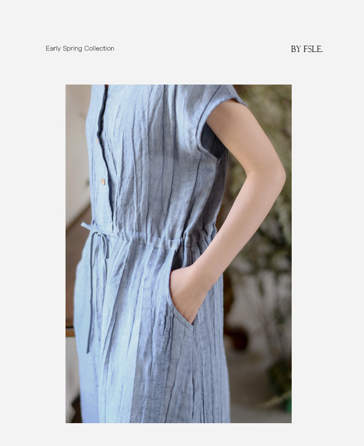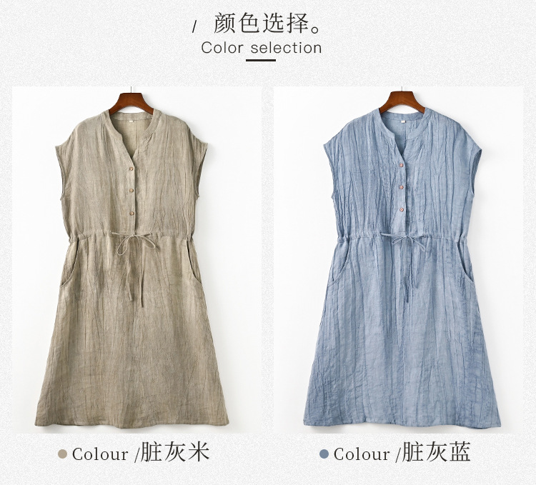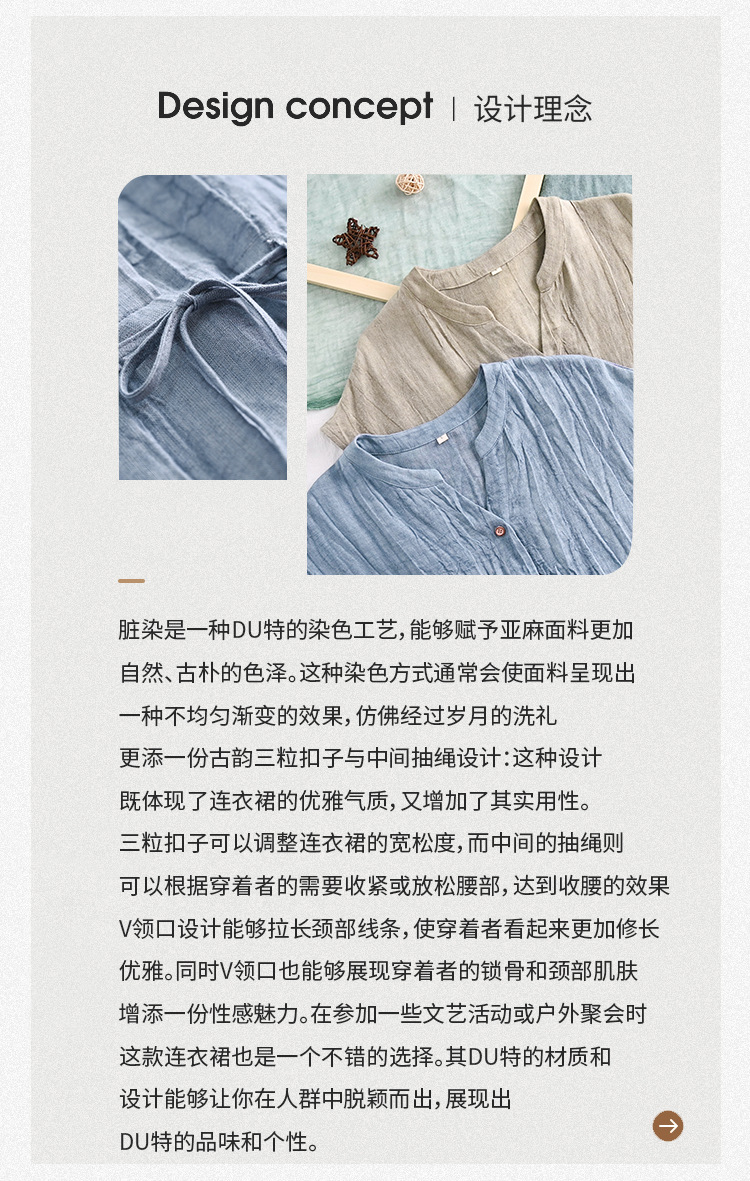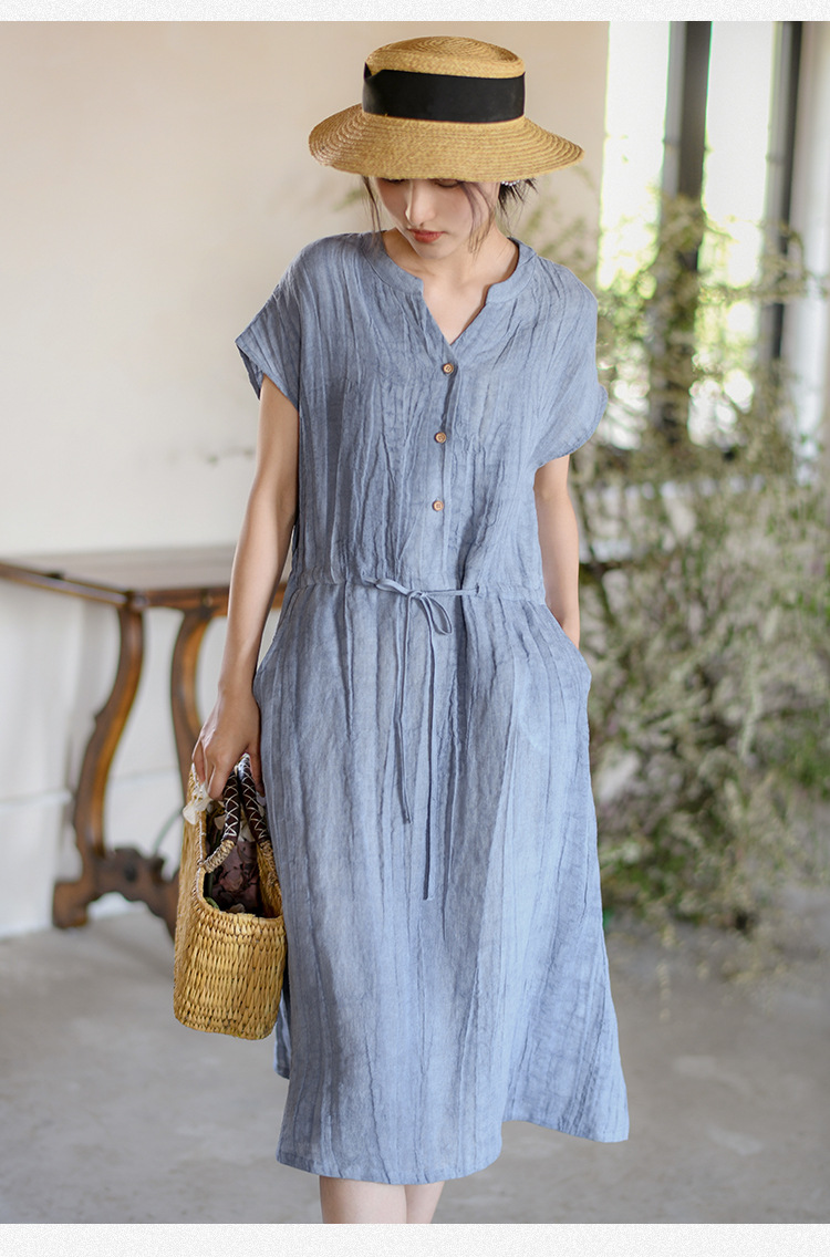 丁摩 新中式女装夏季短袖亚麻连衣裙女收腰显瘦高级感国风裙子4ZF-63002