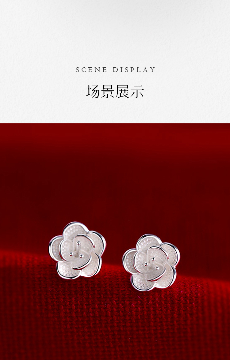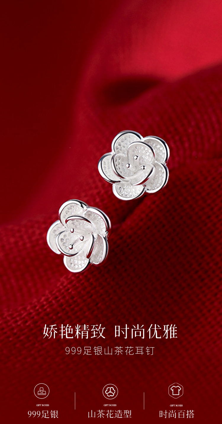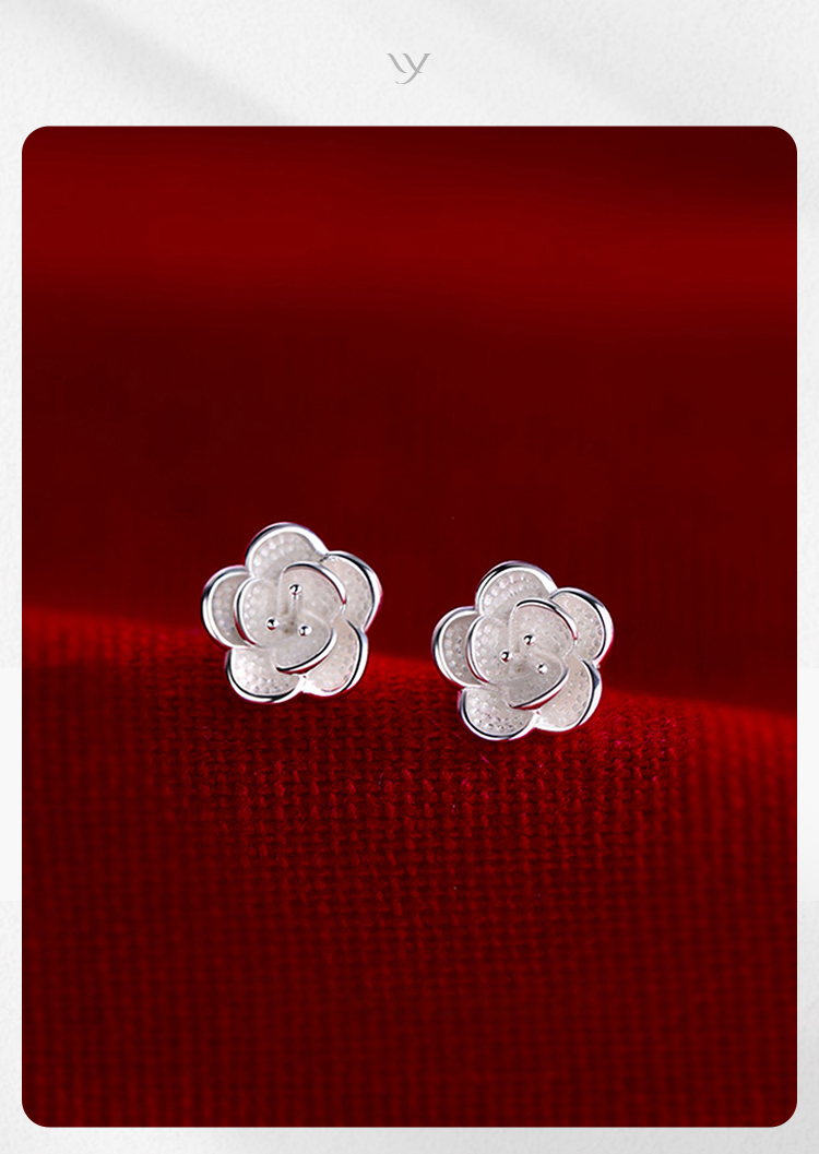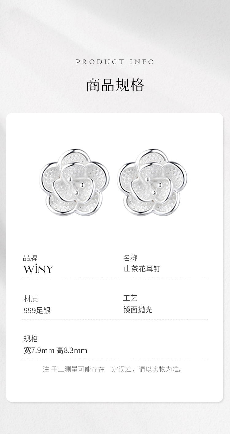 Winy925纯银山茶花耳钉送女友闺蜜节日生日礼物