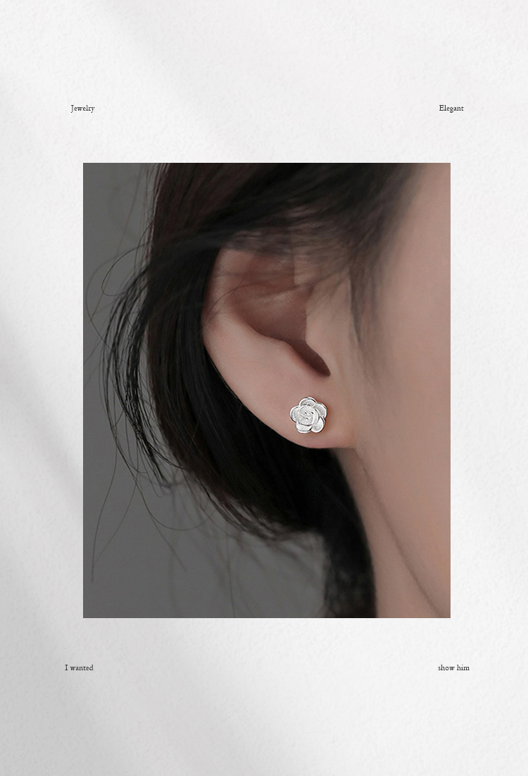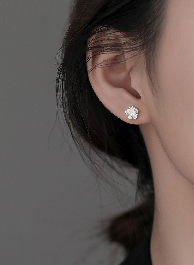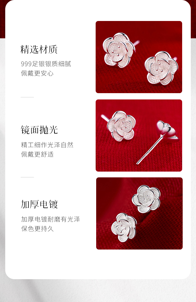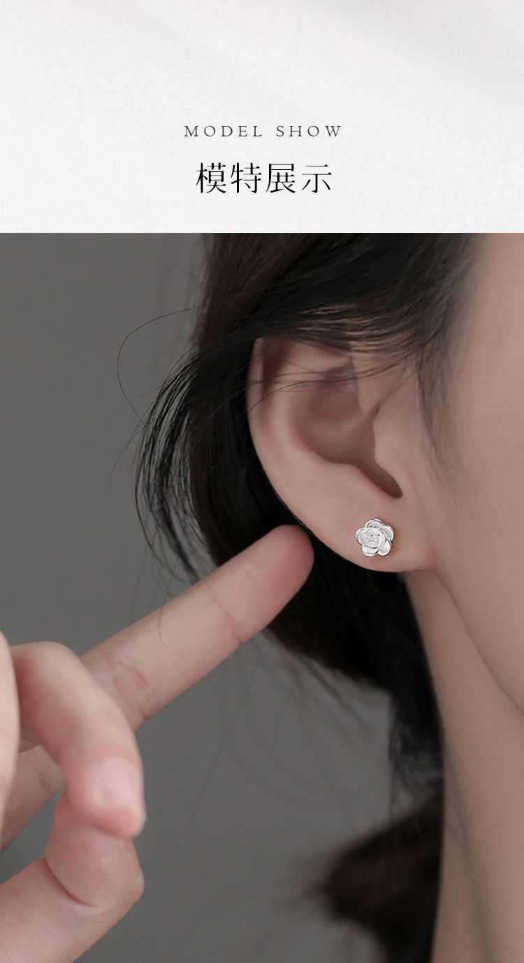 Winy925纯银山茶花耳钉送女友闺蜜节日生日礼物