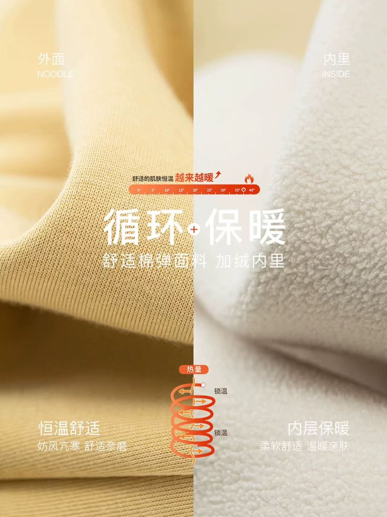 采用500g加厚华棉面料,内层细密磨毛锁住体温,外层微弹抗皱结构久穿不松垮