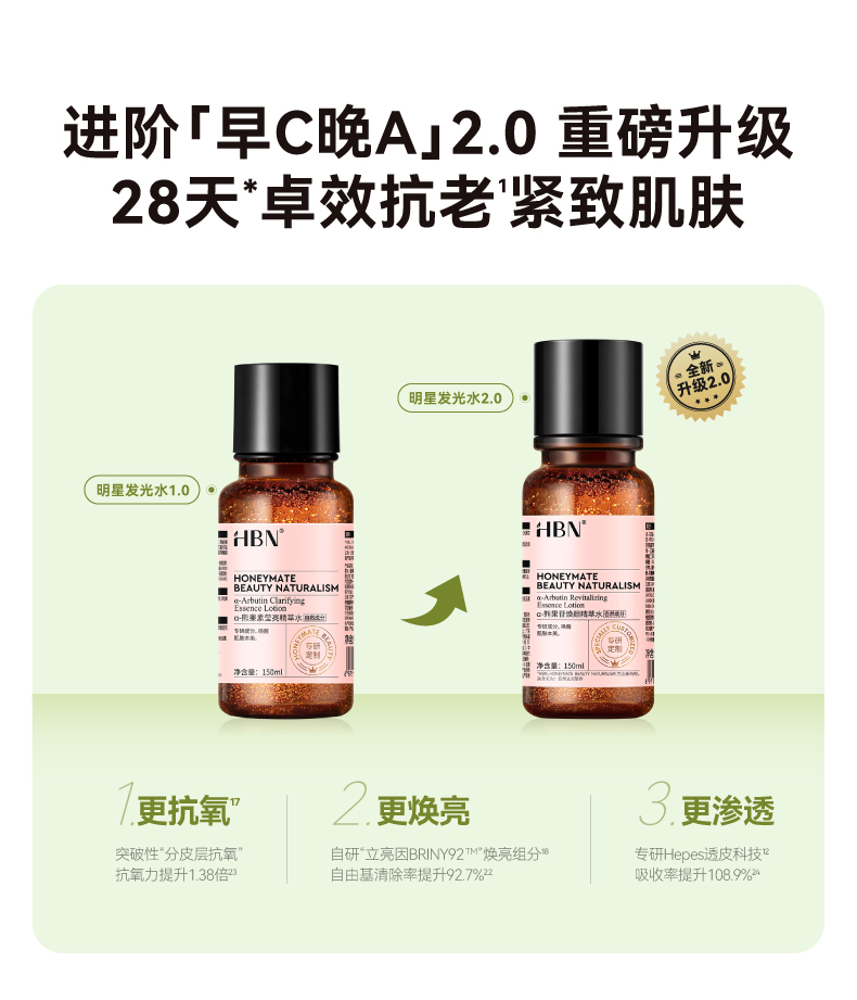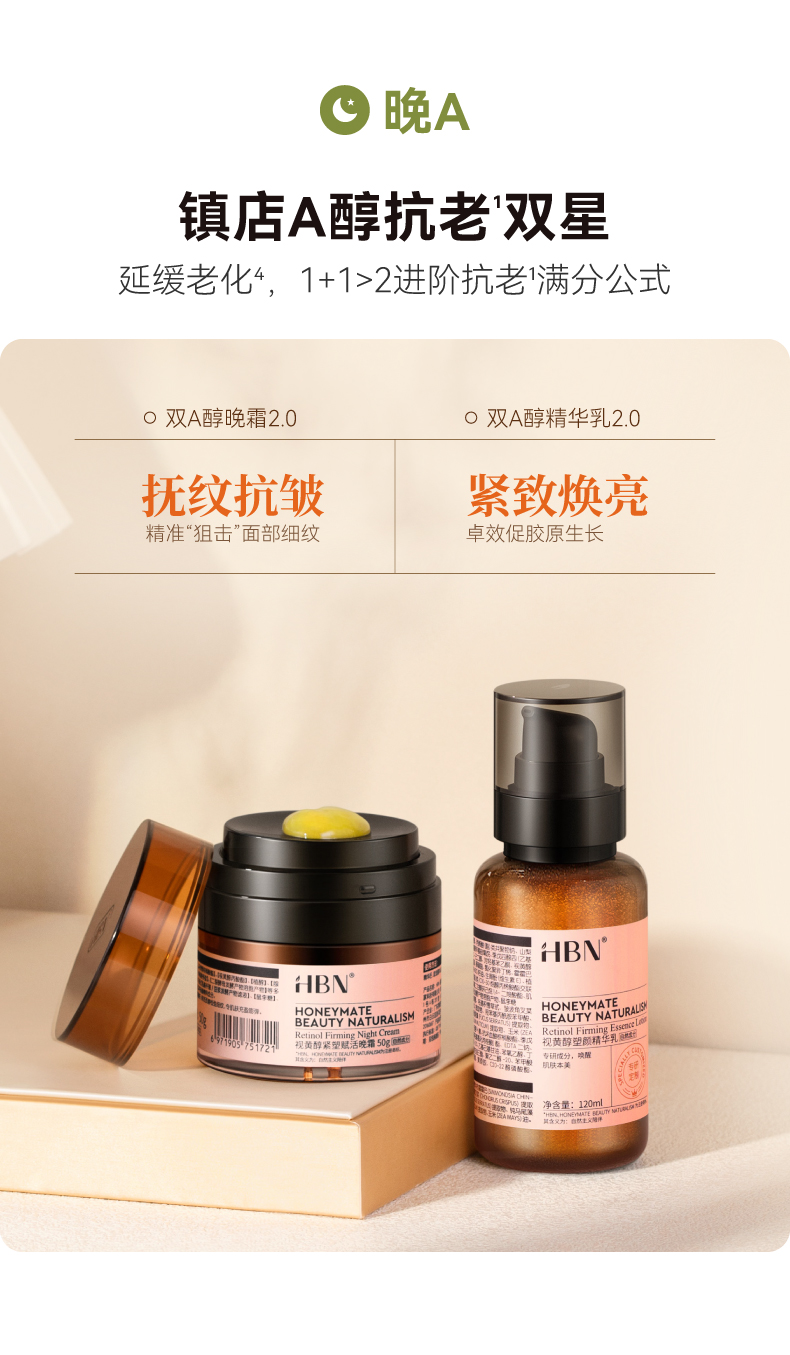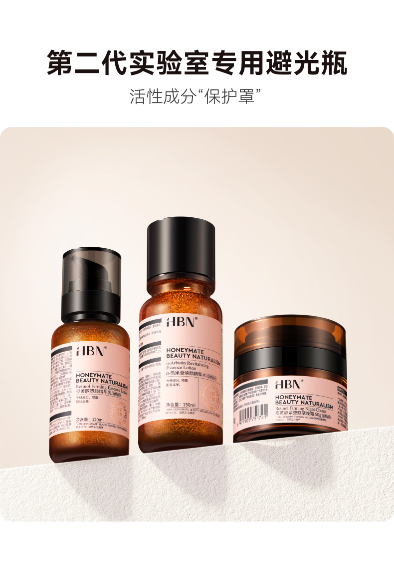HBN熊果苷精粹水发光水+视黄醇精华乳+视黄醇面霜
