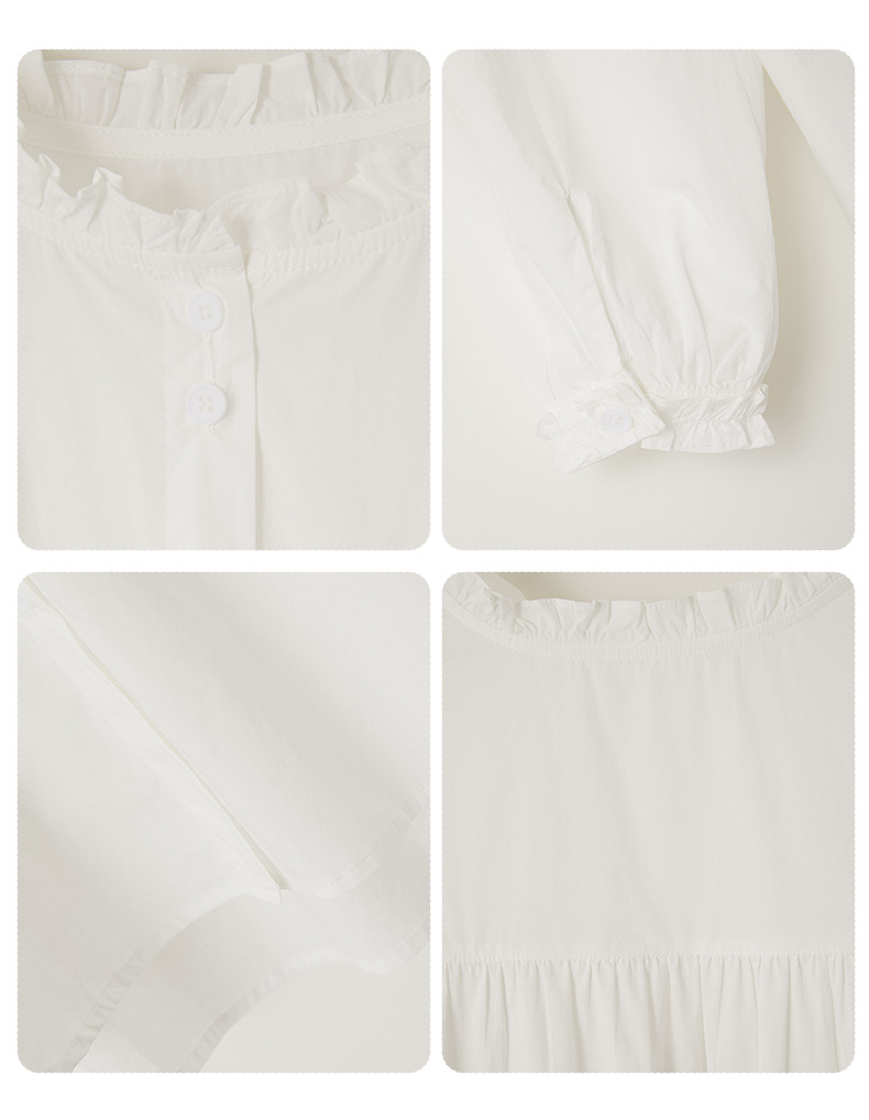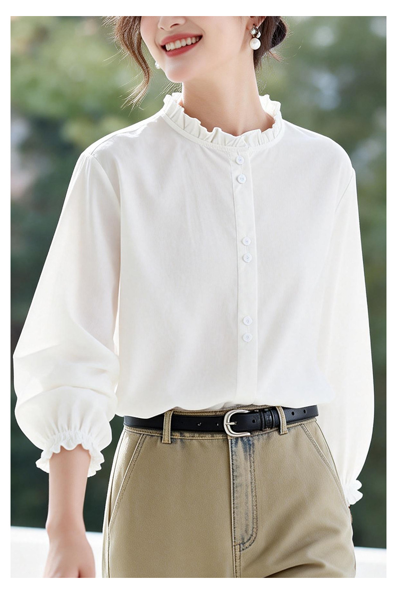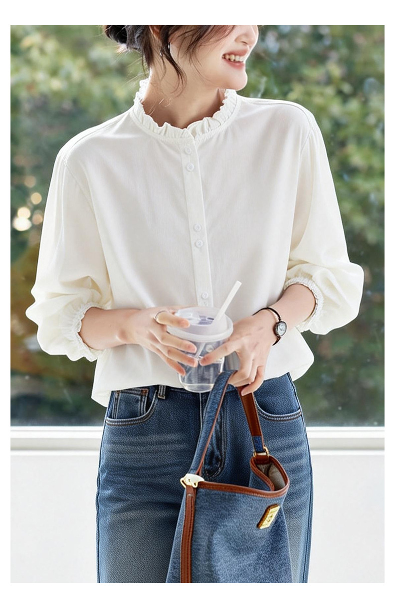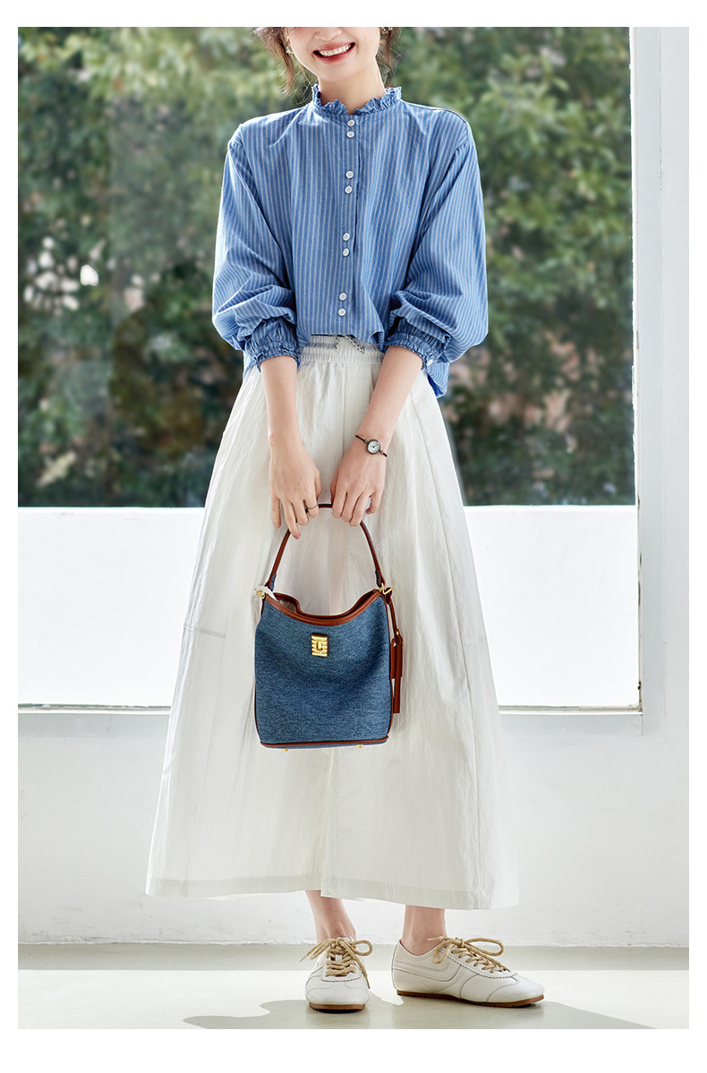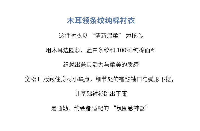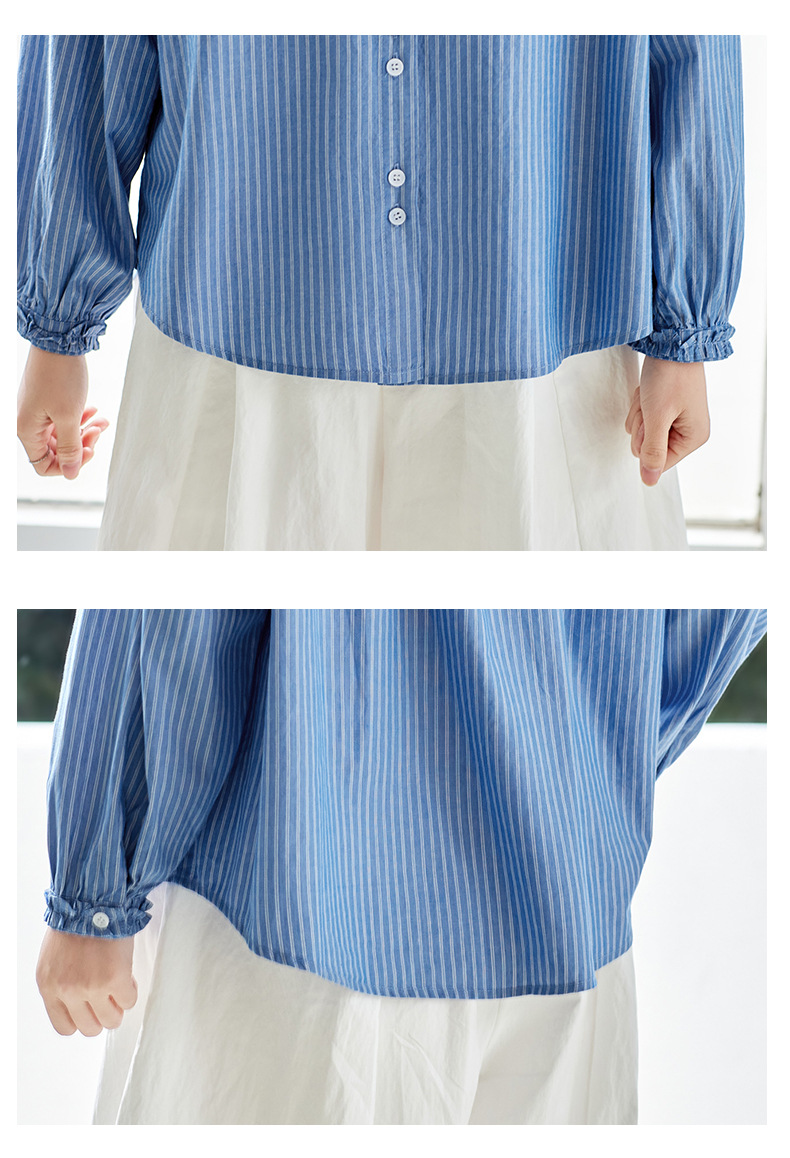 丁摩 蓝色条纹衬衫女长袖春装新款木耳领内搭叠穿上衣衬衣6ZF-61041