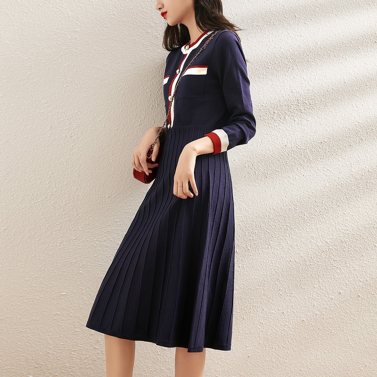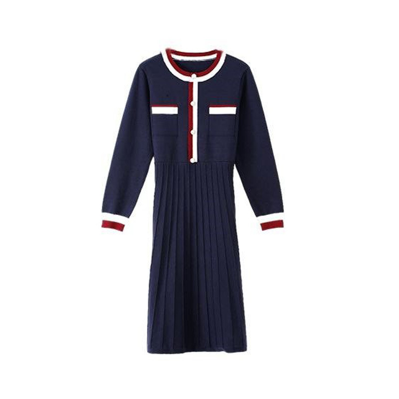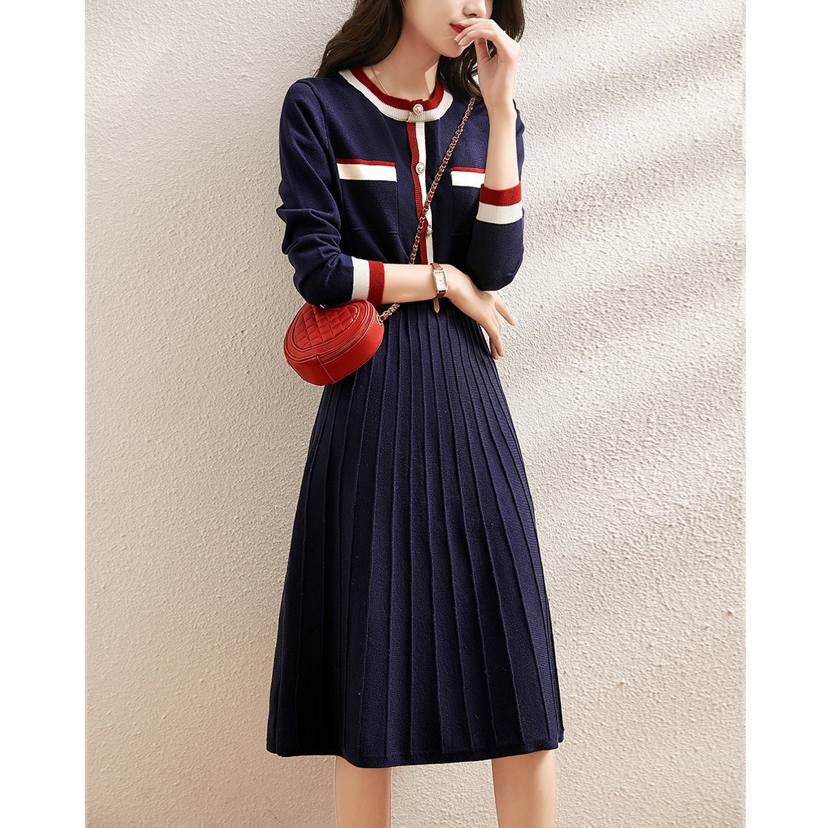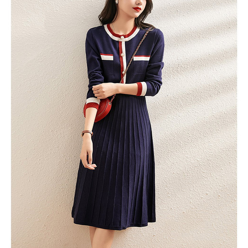 百媚生 小香风针织收腰百褶裙子气质复古打底连衣裙W26Q15711