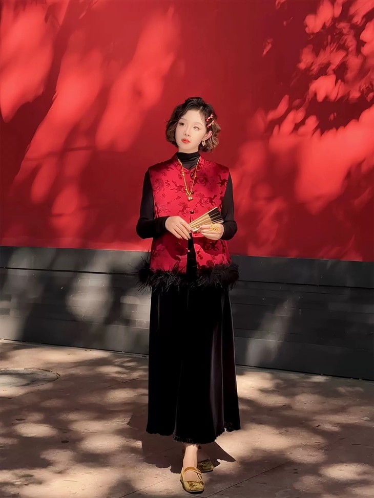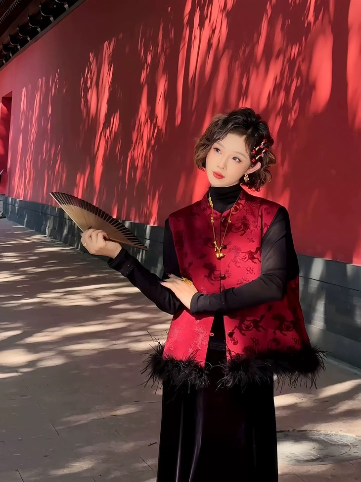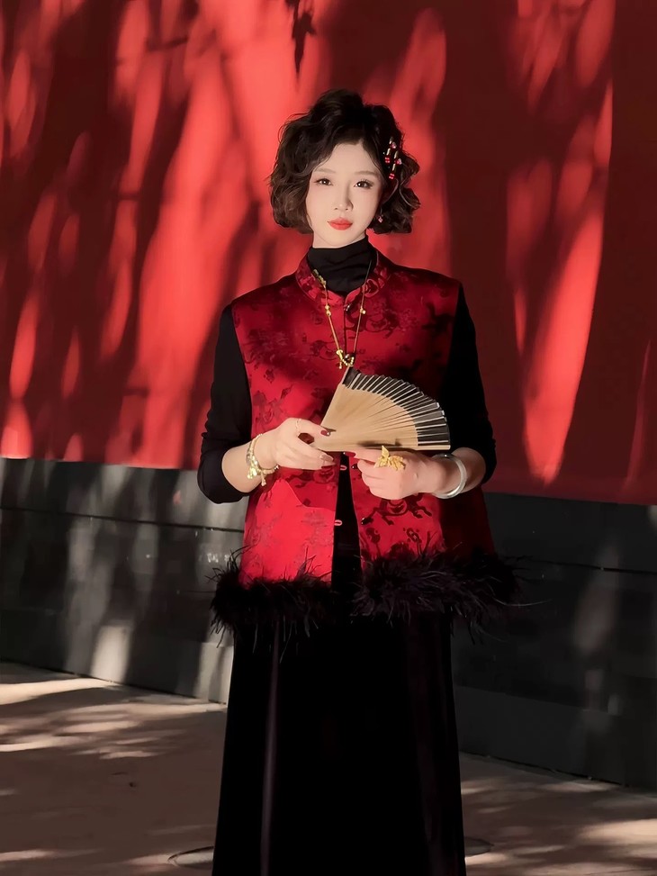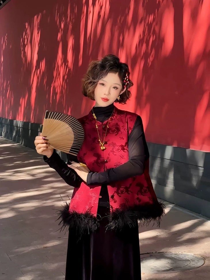 网红爆款新中式国风毛毛马夹夹棉叠穿无袖外套CS