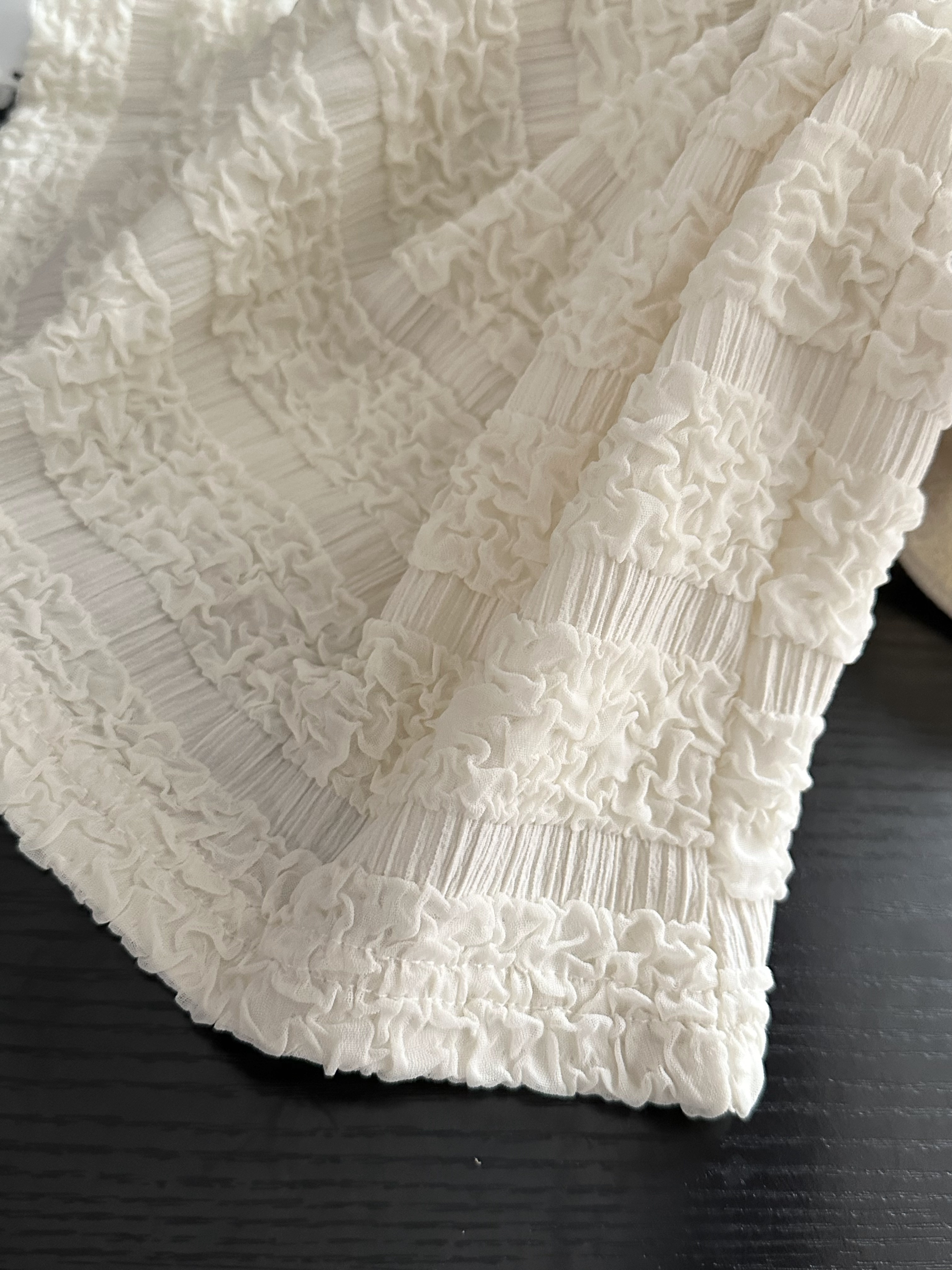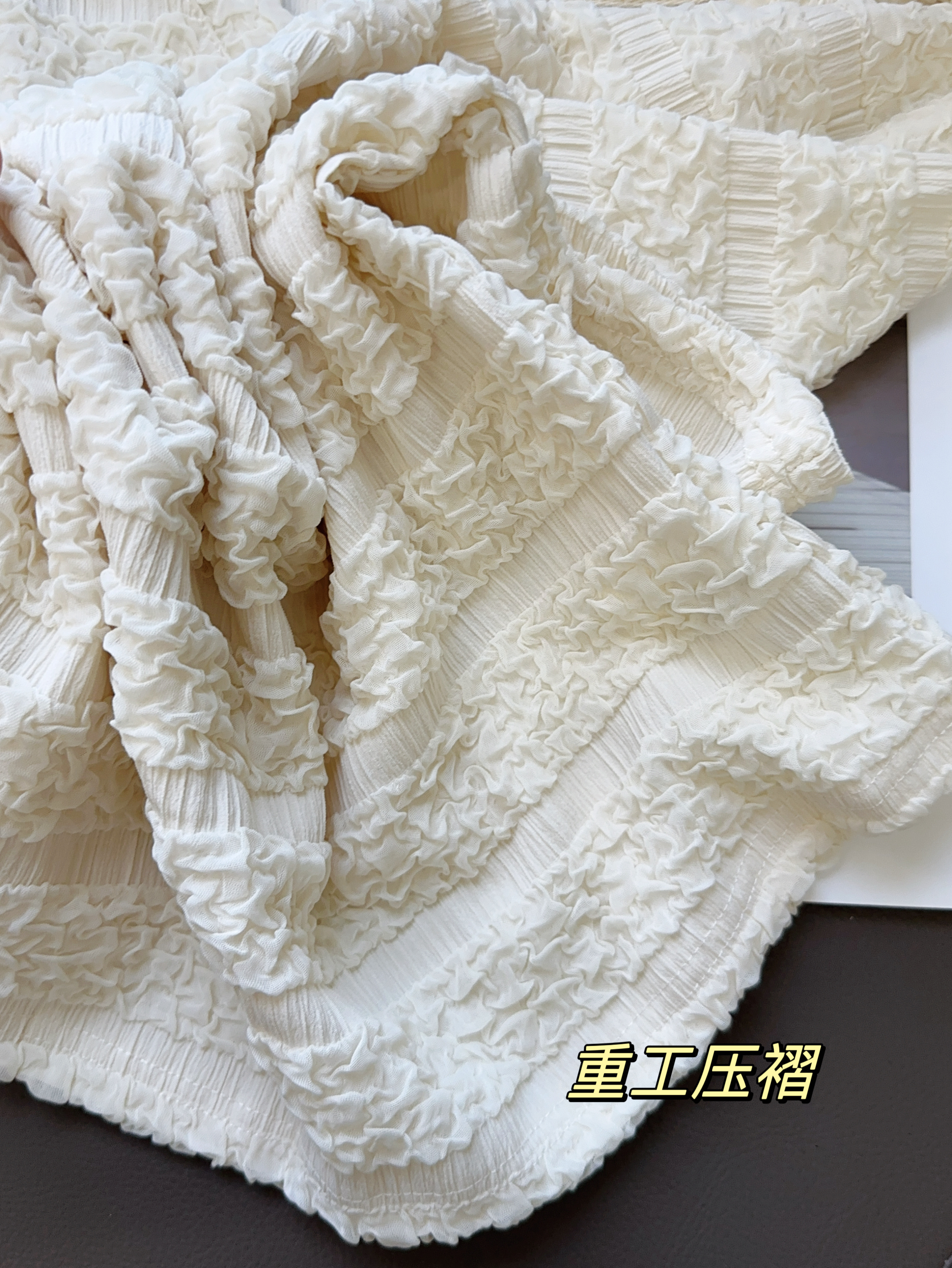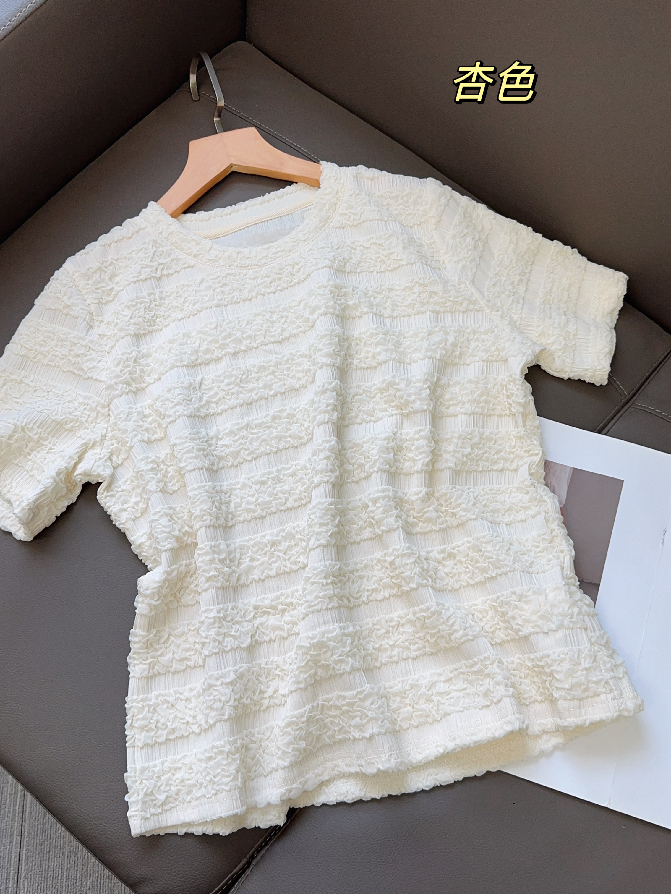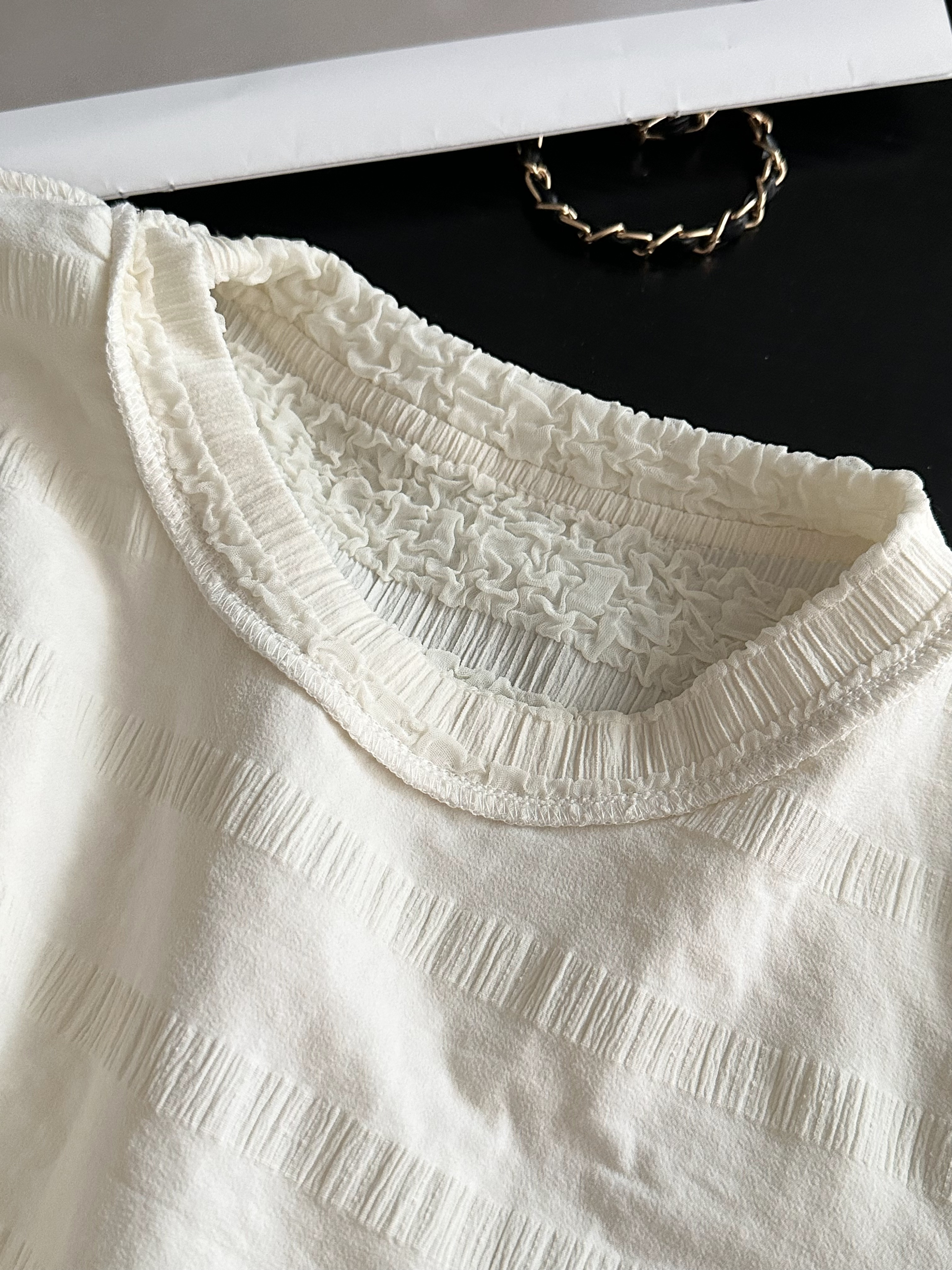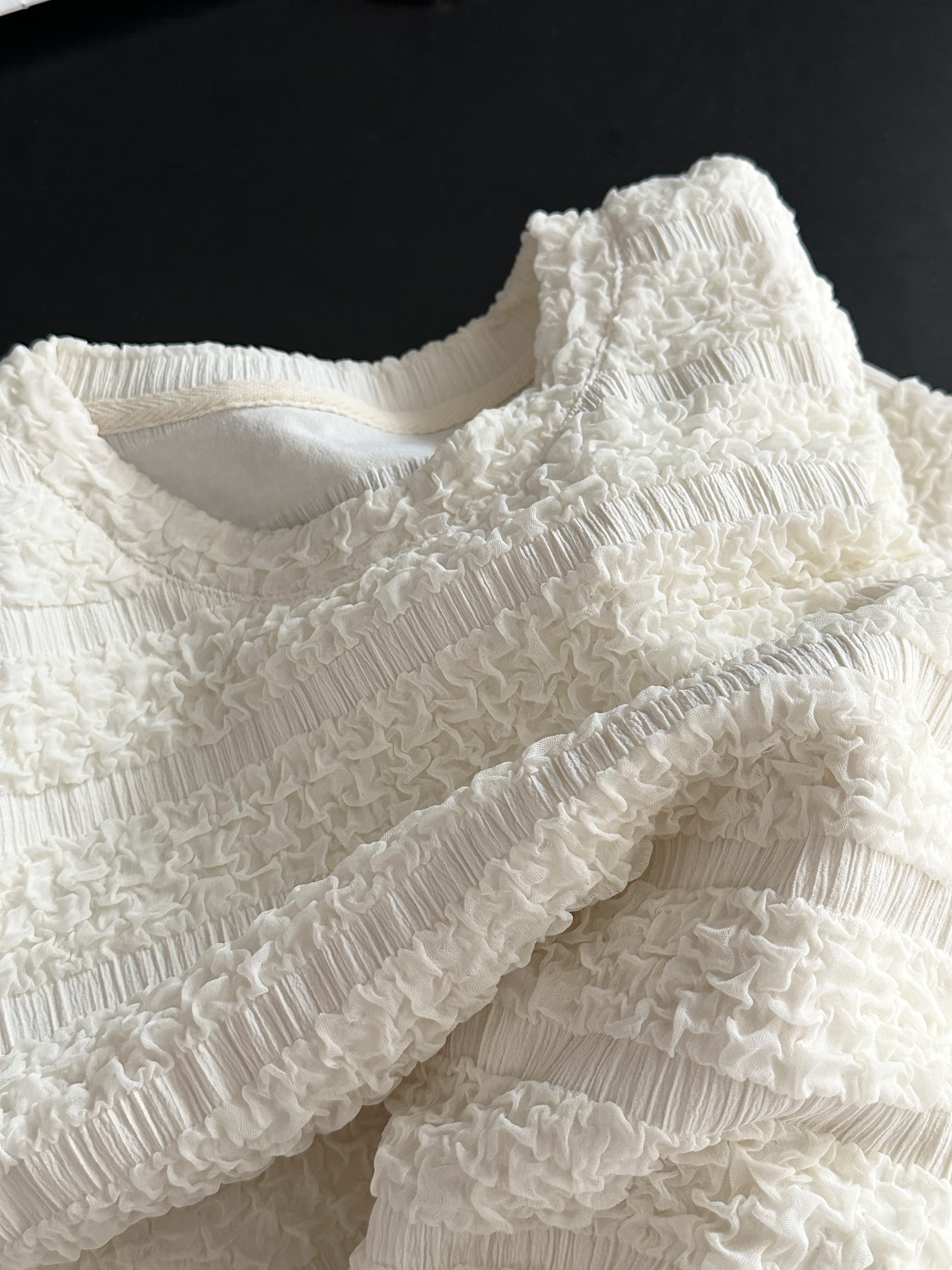 品名:樱西玛ENXIMANE 重工褶皱肌理感网纱短袖T
