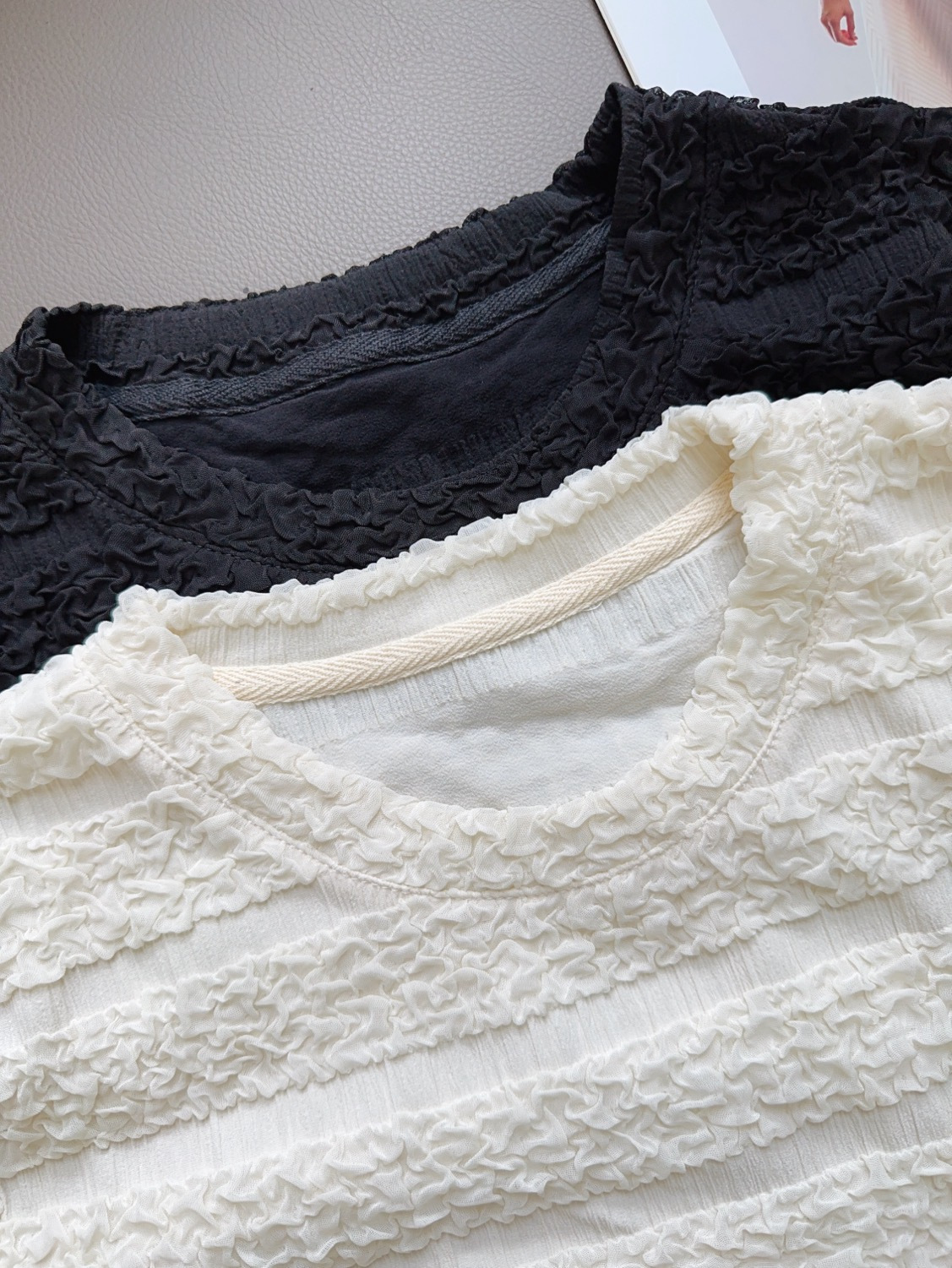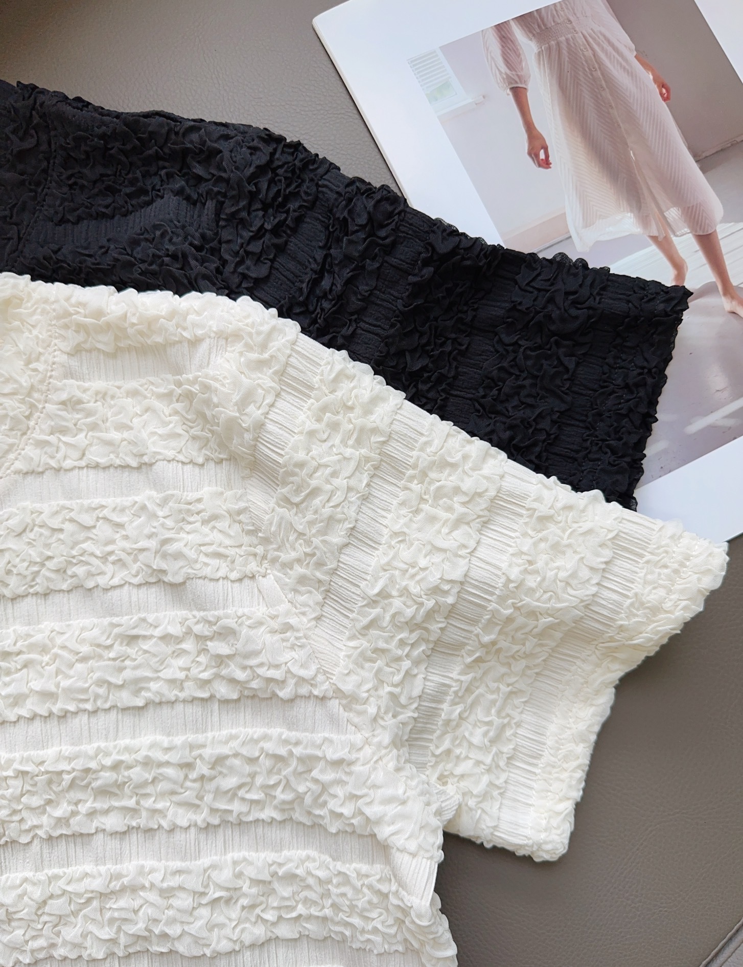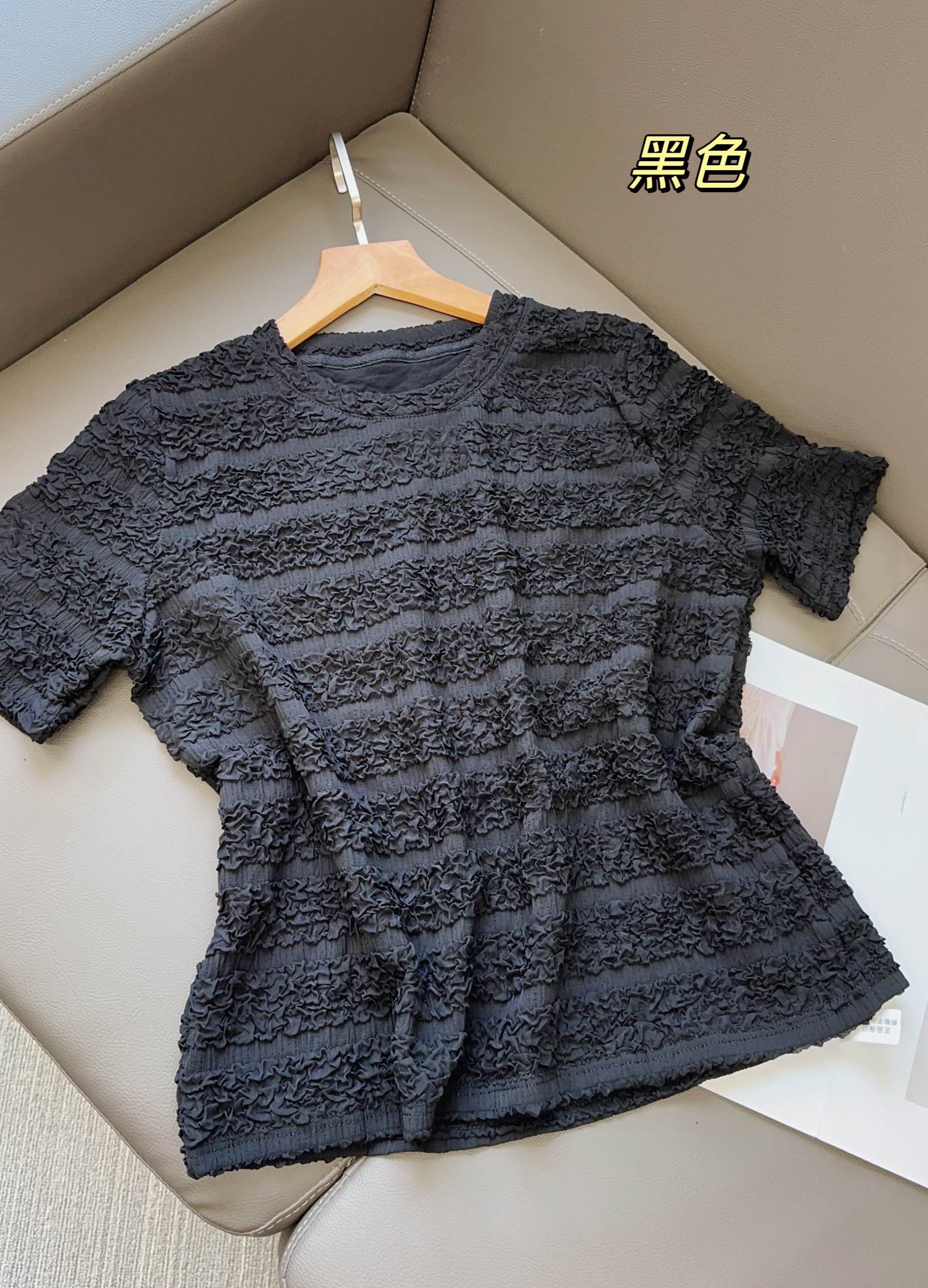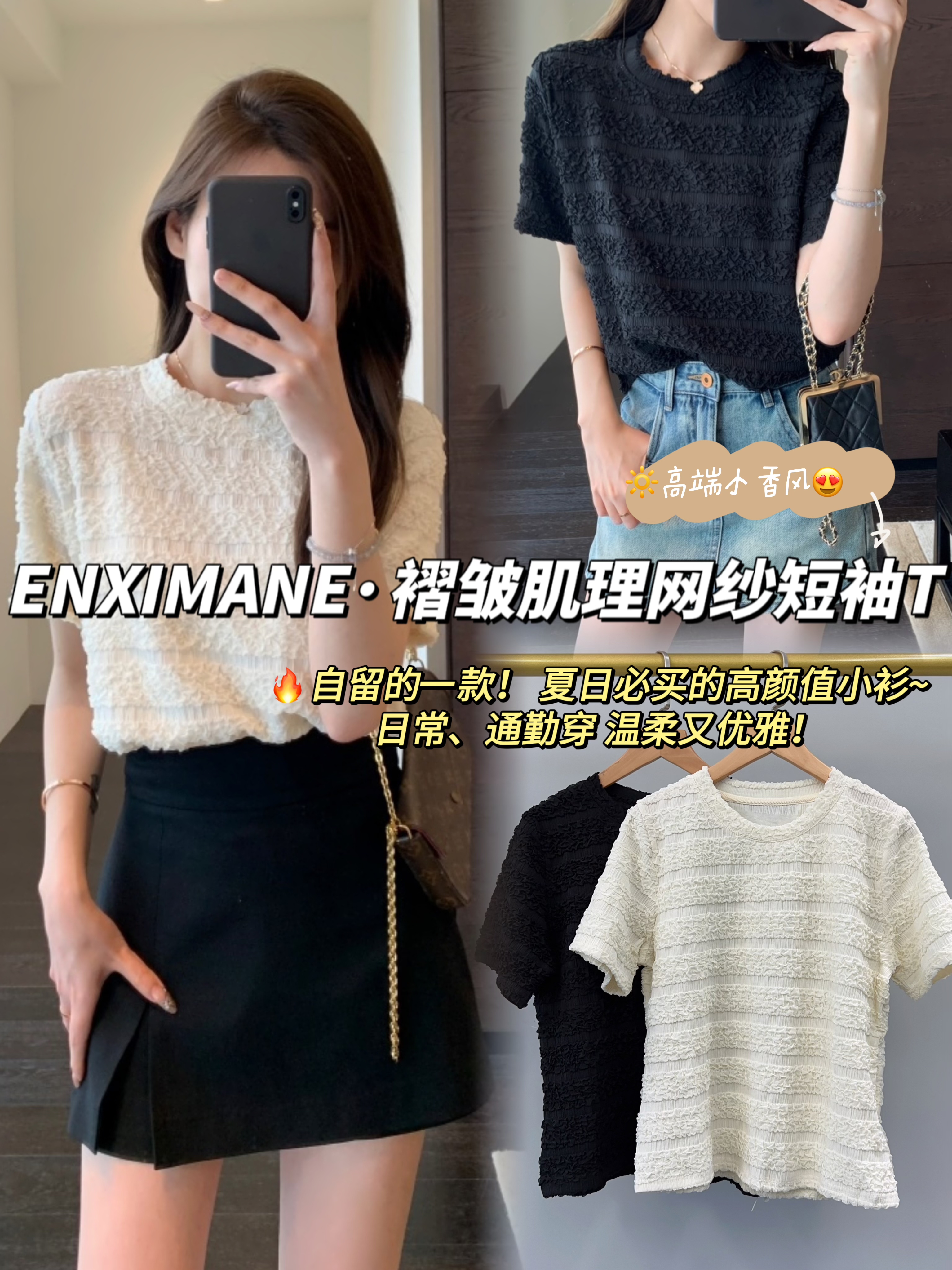 【樱西玛ENXIMANE 重工褶皱肌理感网纱短袖T】经典圆领正肩短款设计 舒适百搭 细腻柔软 不会闷热