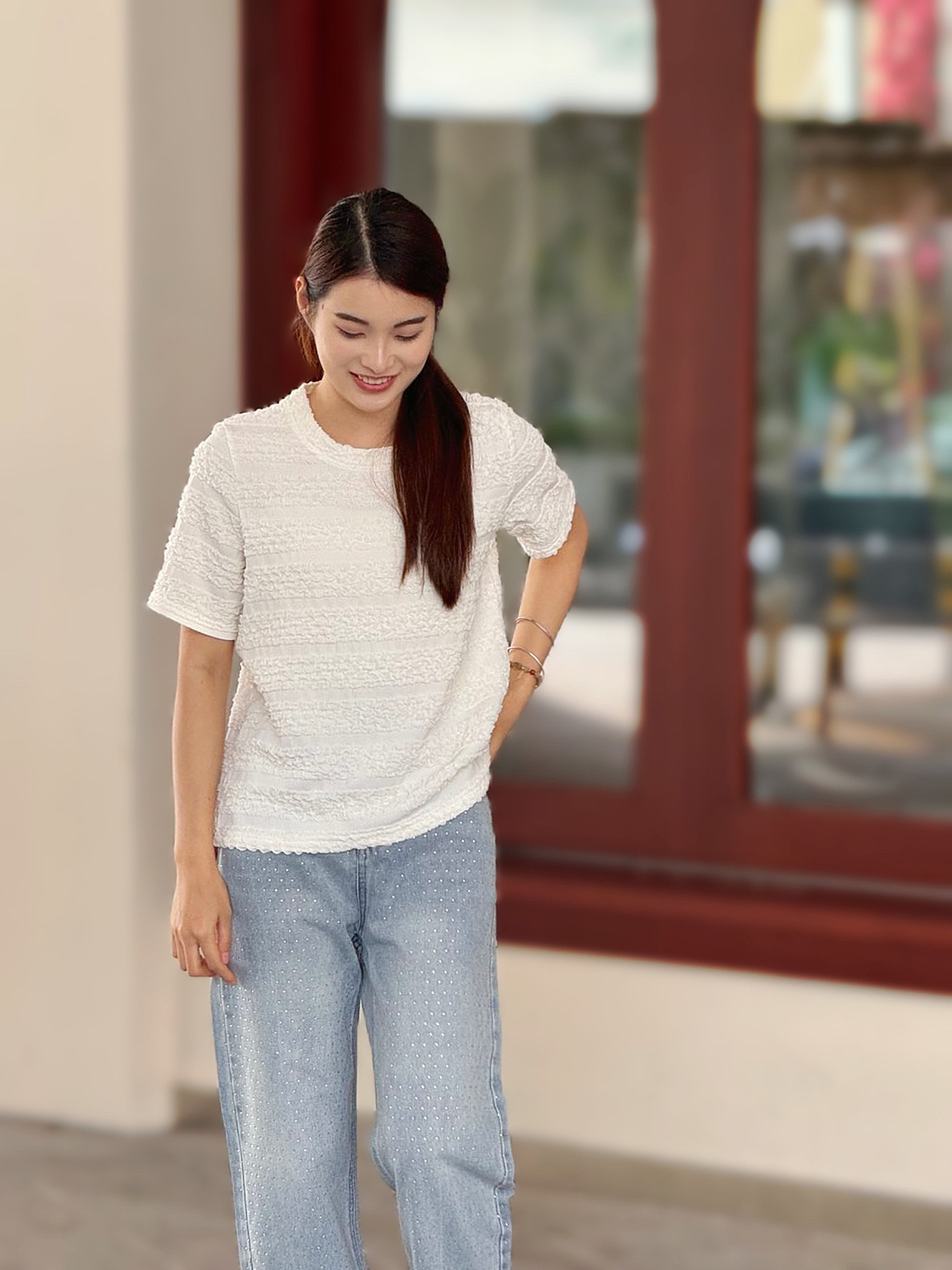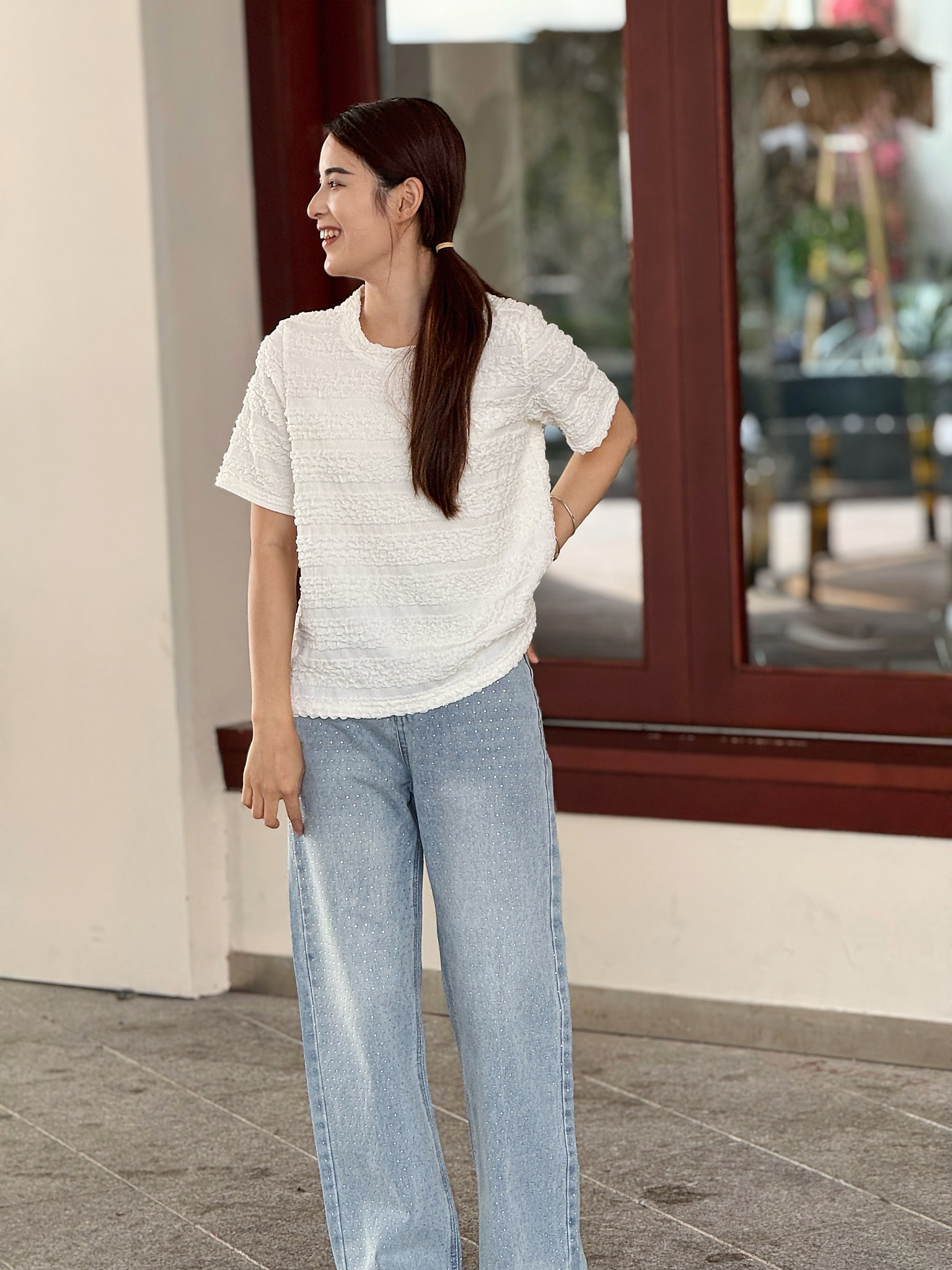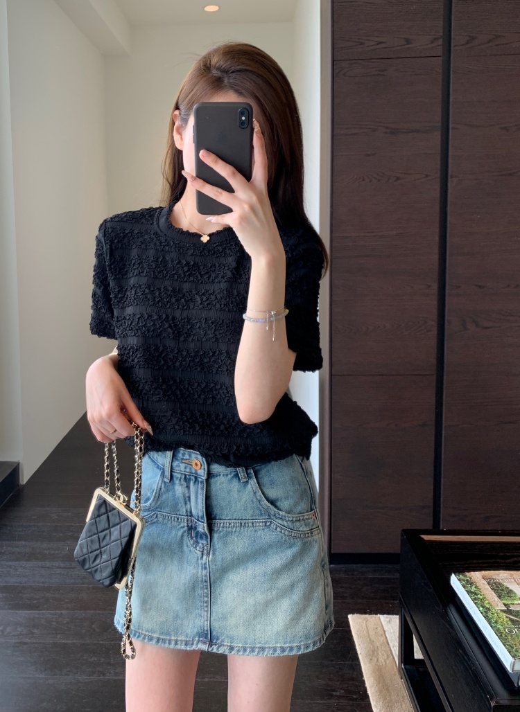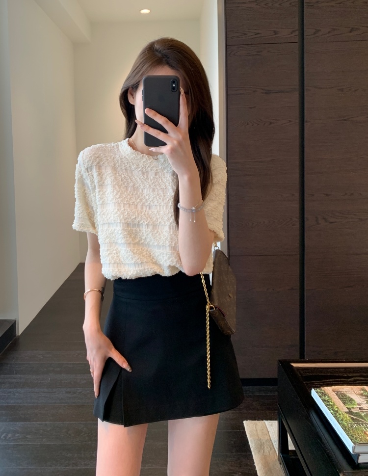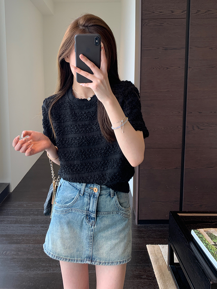 【樱西玛ENXIMANE 重工褶皱肌理感网纱短袖T】经典圆领正肩短款设计 舒适百搭 细腻柔软 不会闷热