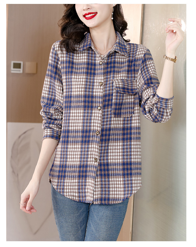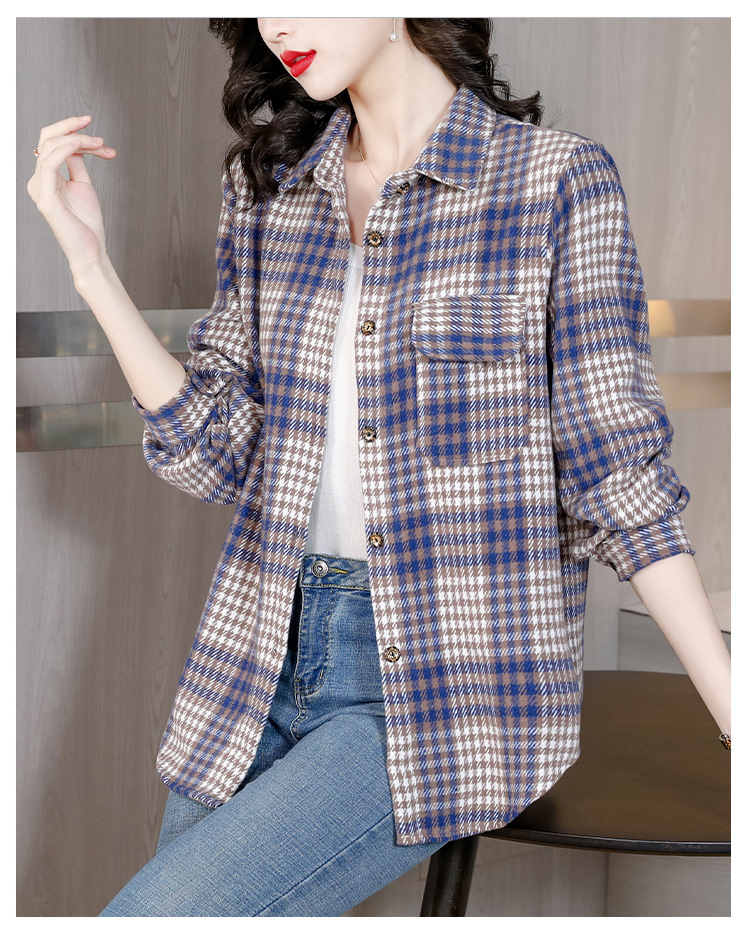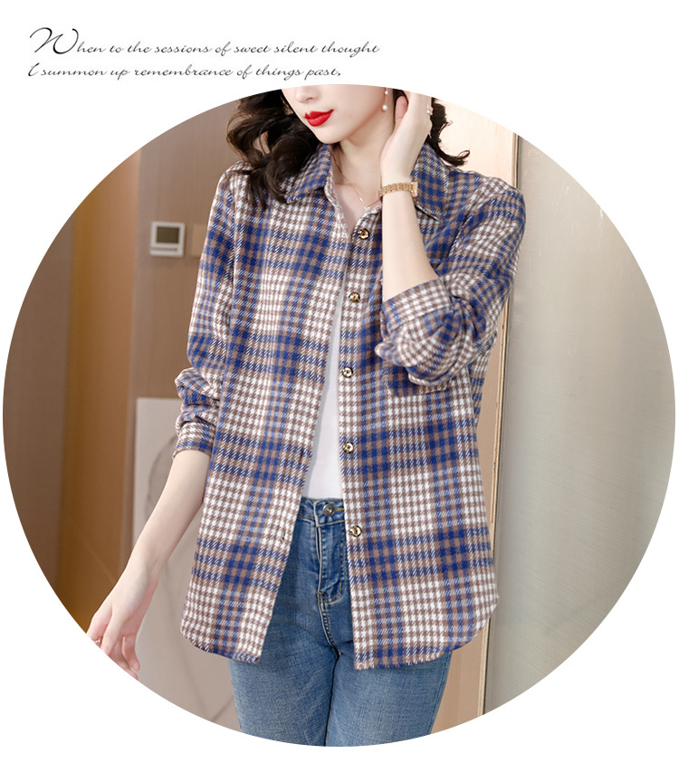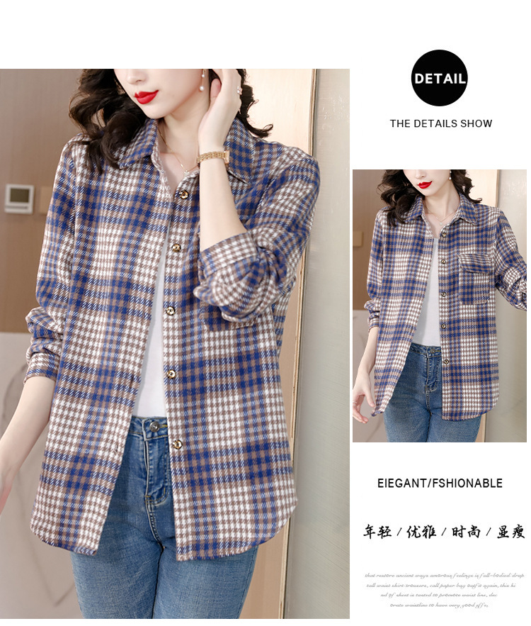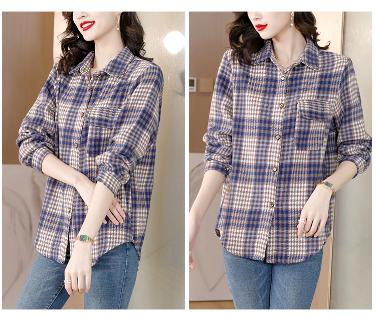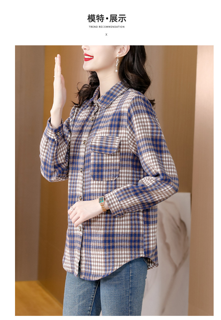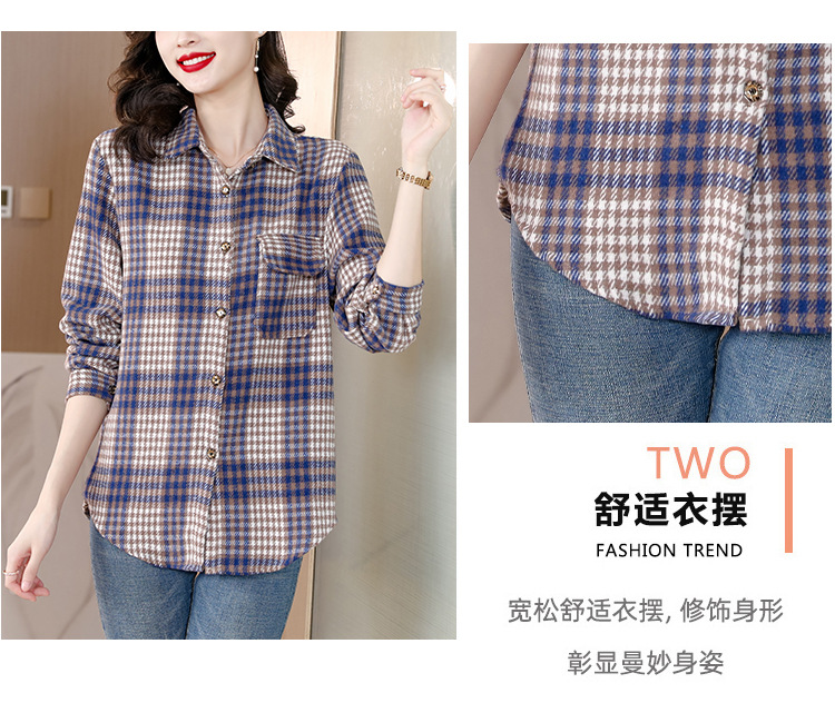 KQL E333M6757格子衬衫加厚磨毛保暖衬衫妈妈外套