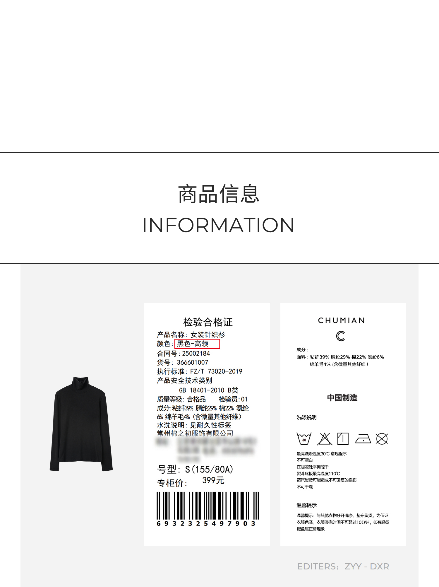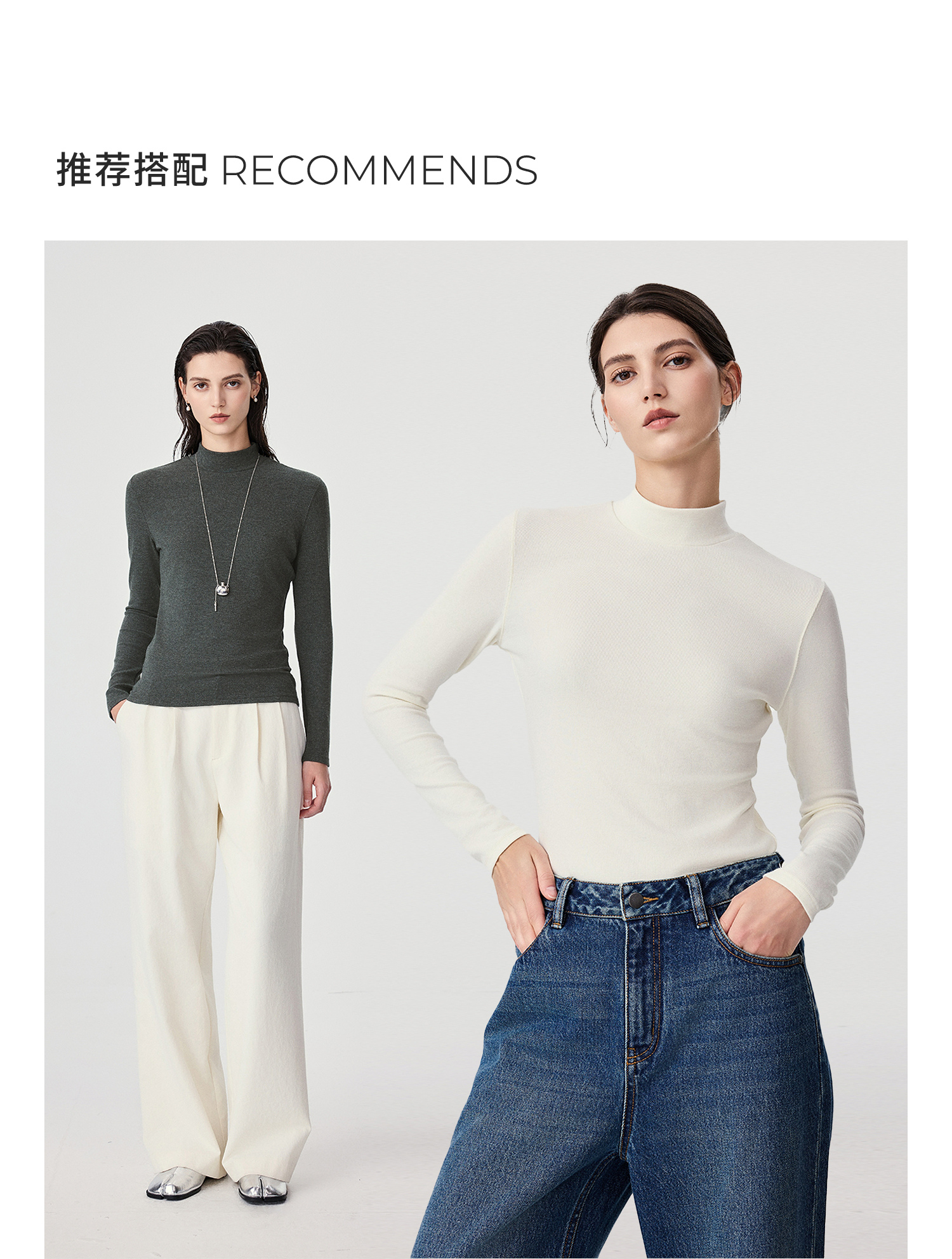 百搭全羊毛无缝半高领极简老钱风打底衫MY2503034