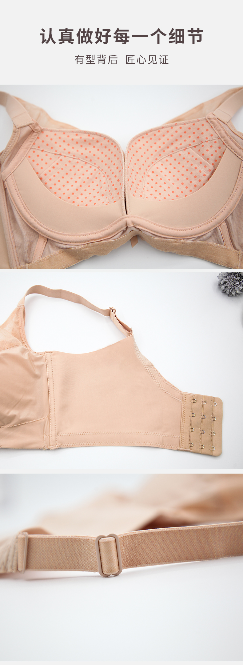 贝佳人新品全罩杯大包容显小文胸收副乳强承托半光面无痕红色内衣