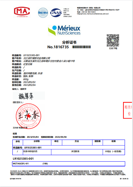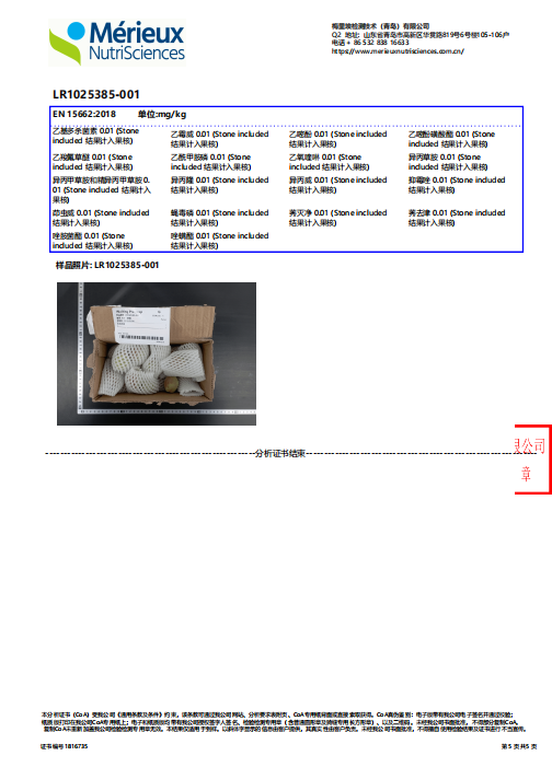 桃子即将成熟了,产地也送检了检测机构,检测278项农残(均未检出)。