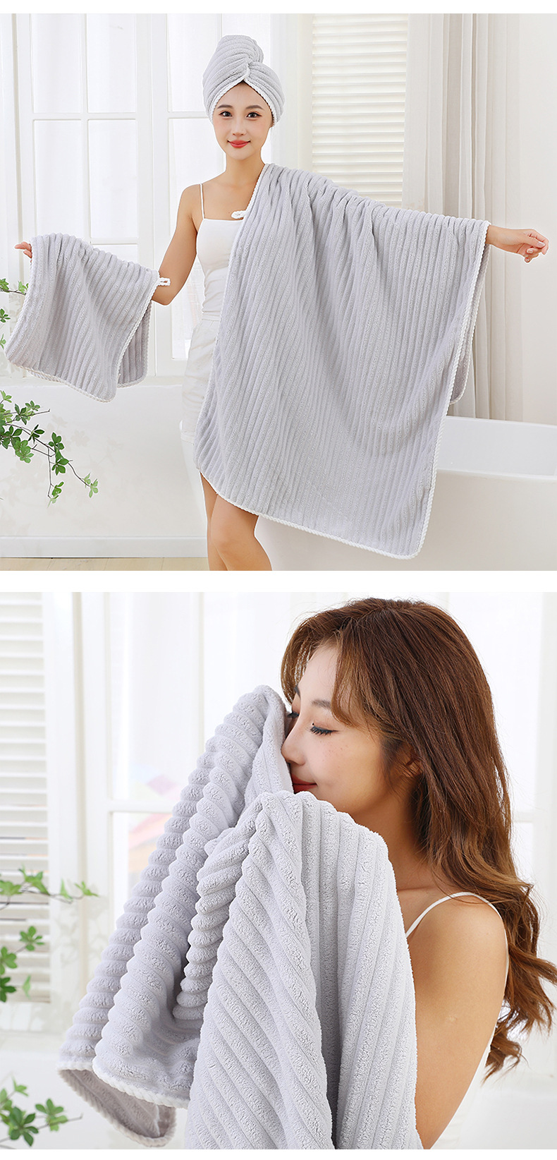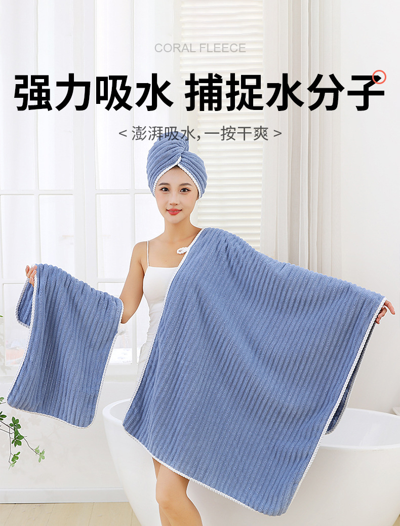 【9.9包邮!糖果条绒,柔软包裹毛巾】糖果条绒珊瑚绒高阳毛巾 浴巾浴帽套装 加厚吸水不掉毛三件套家用 拥抱云端般柔软“浴”见你-QQ