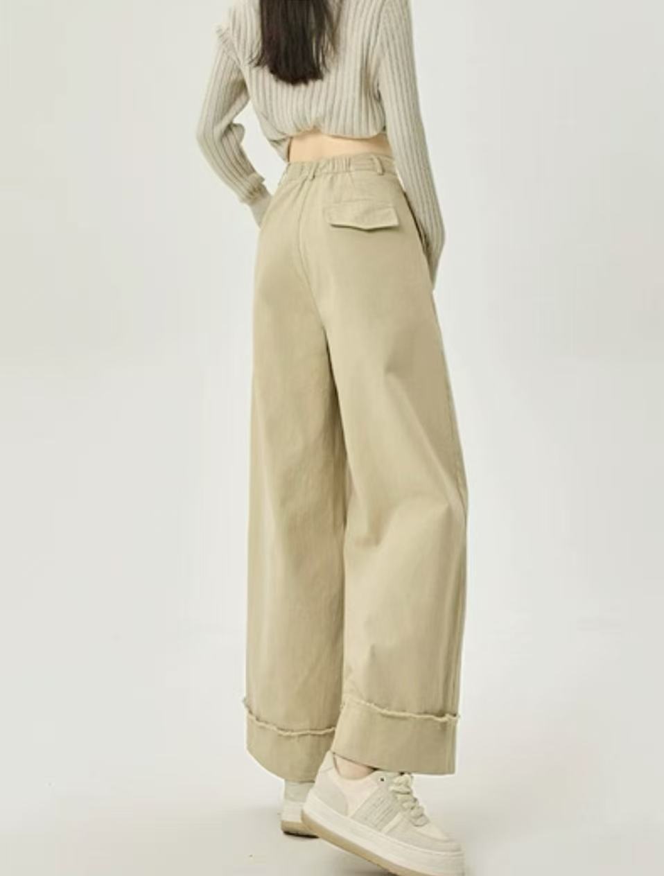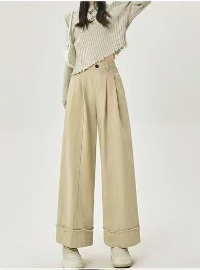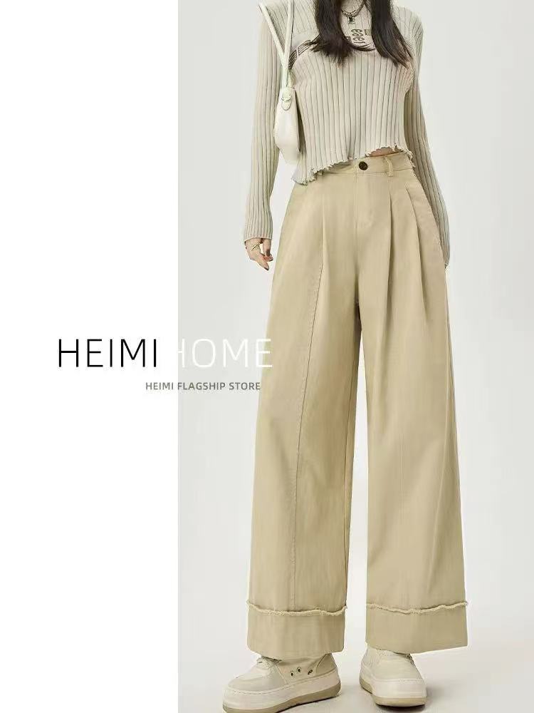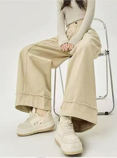 12.20清仓促!!韩系6316高腰毛边阔腿裤女2025秋季搭休闲显瘦直筒裤长裤子-喜出