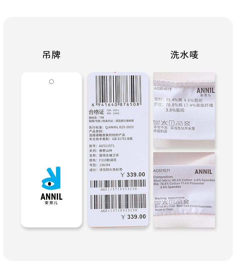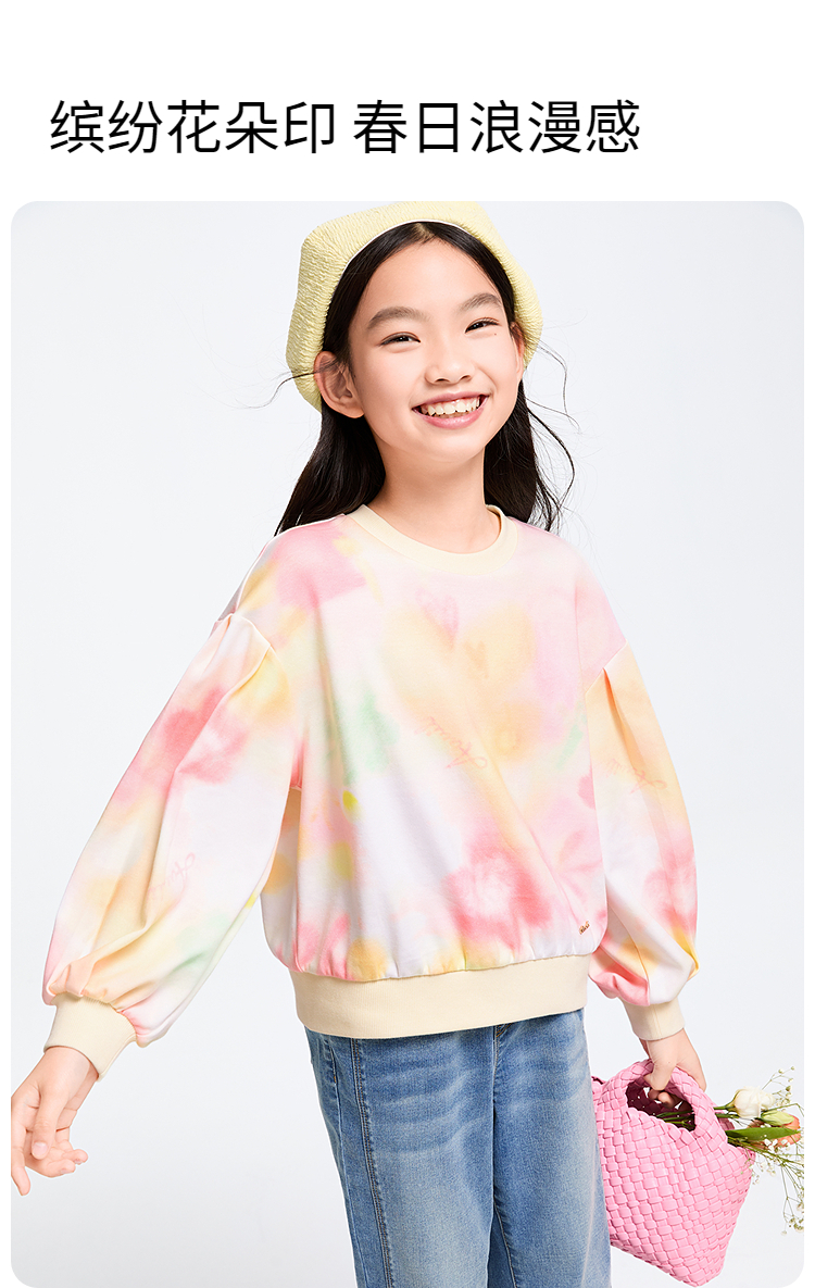 女童圆领长袖卫衣春季新款安奈儿童装实体店同款AG511571