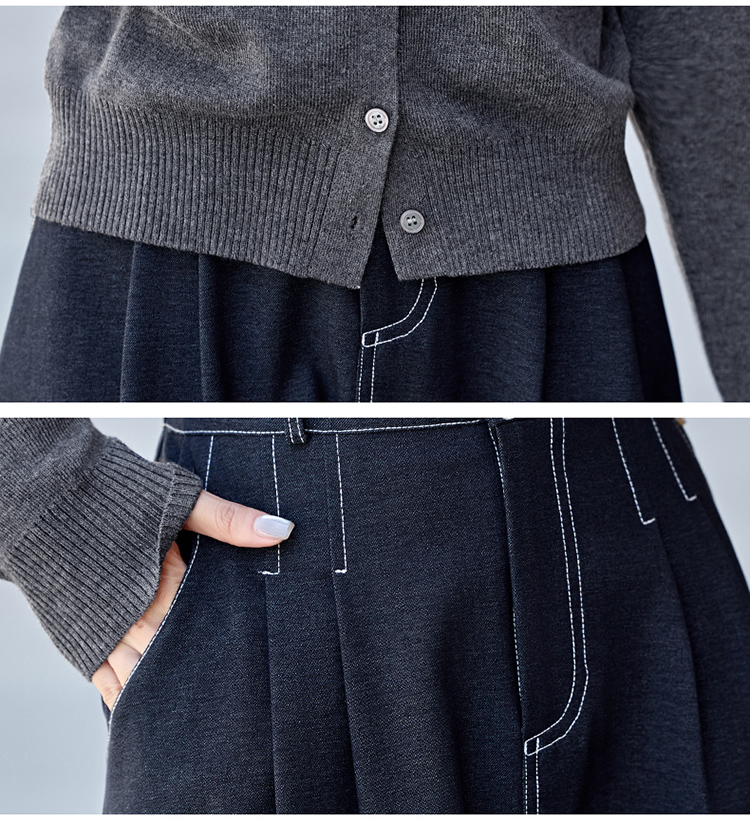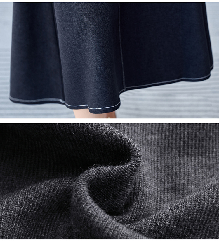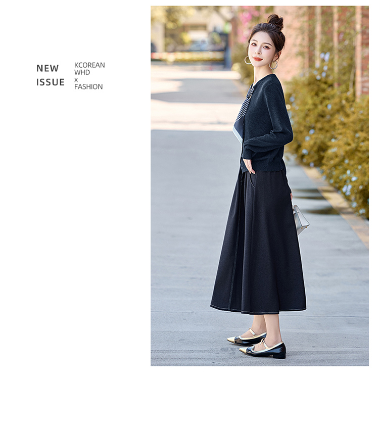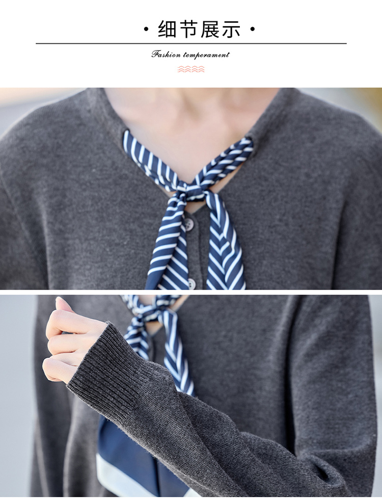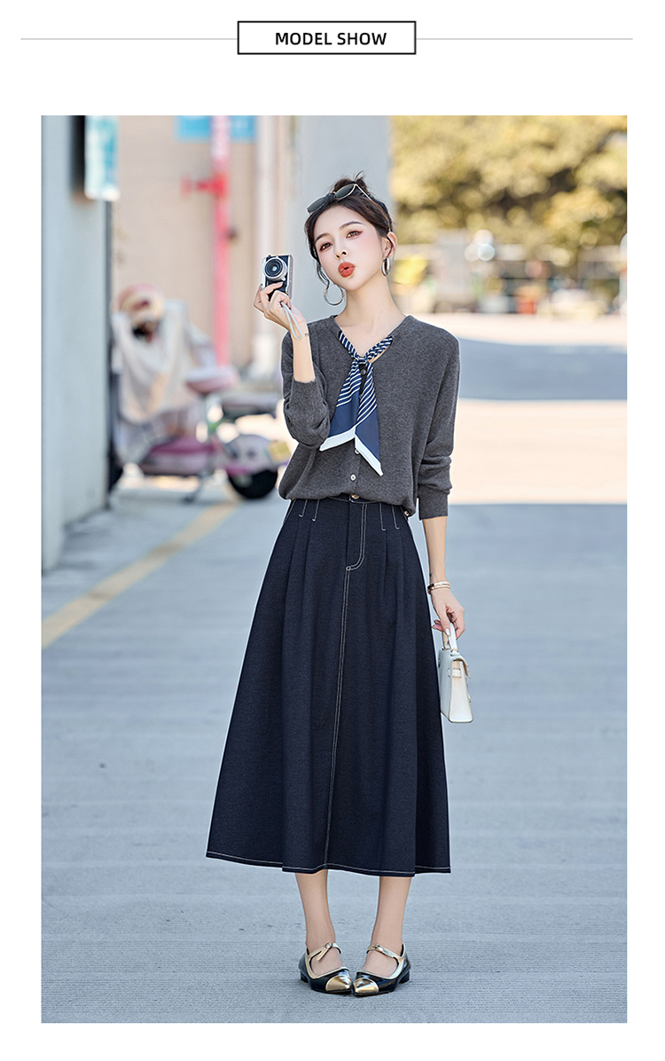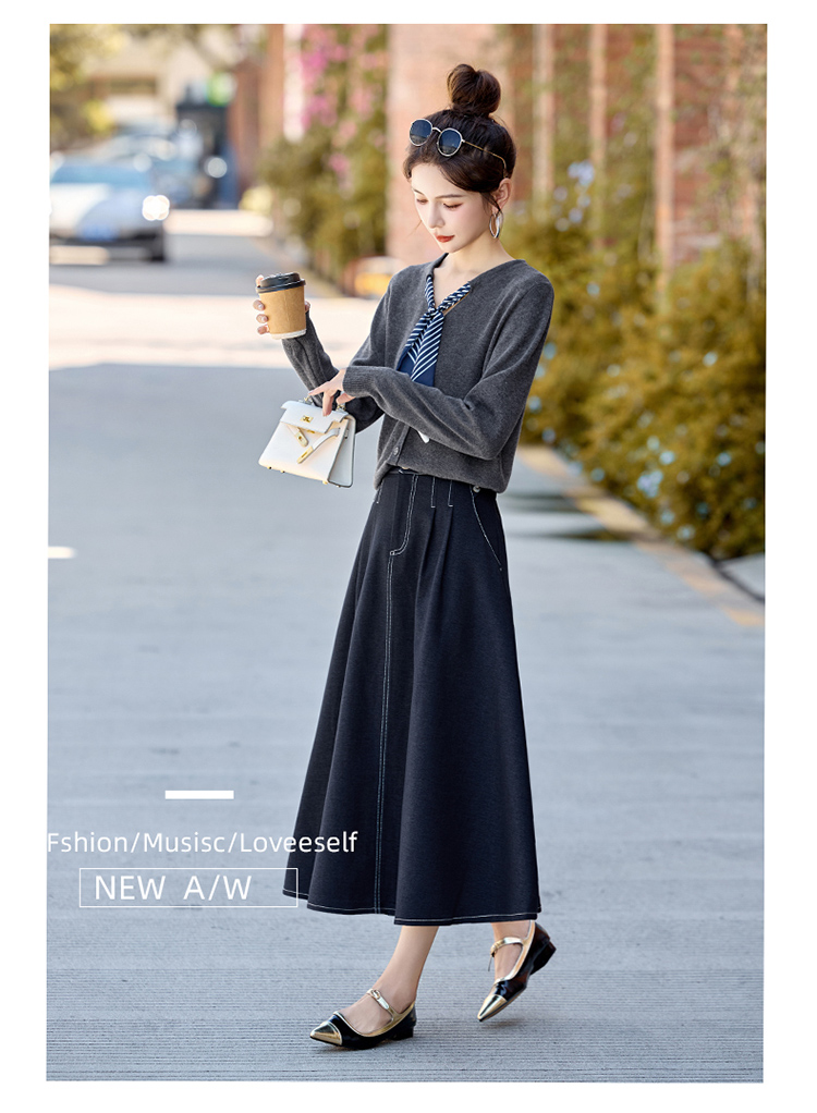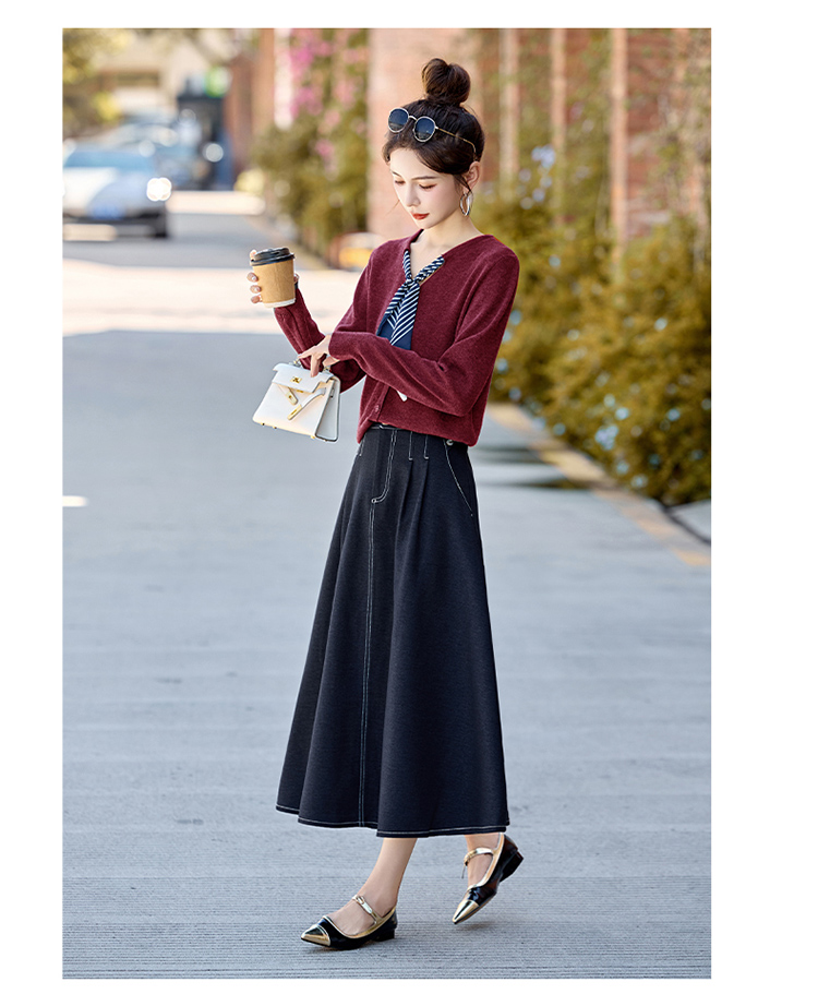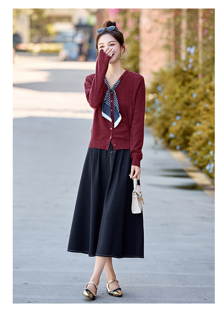 时尚高级感长袖丝巾针织开衫+高腰牛仔半身裙两件套HR-YM7738