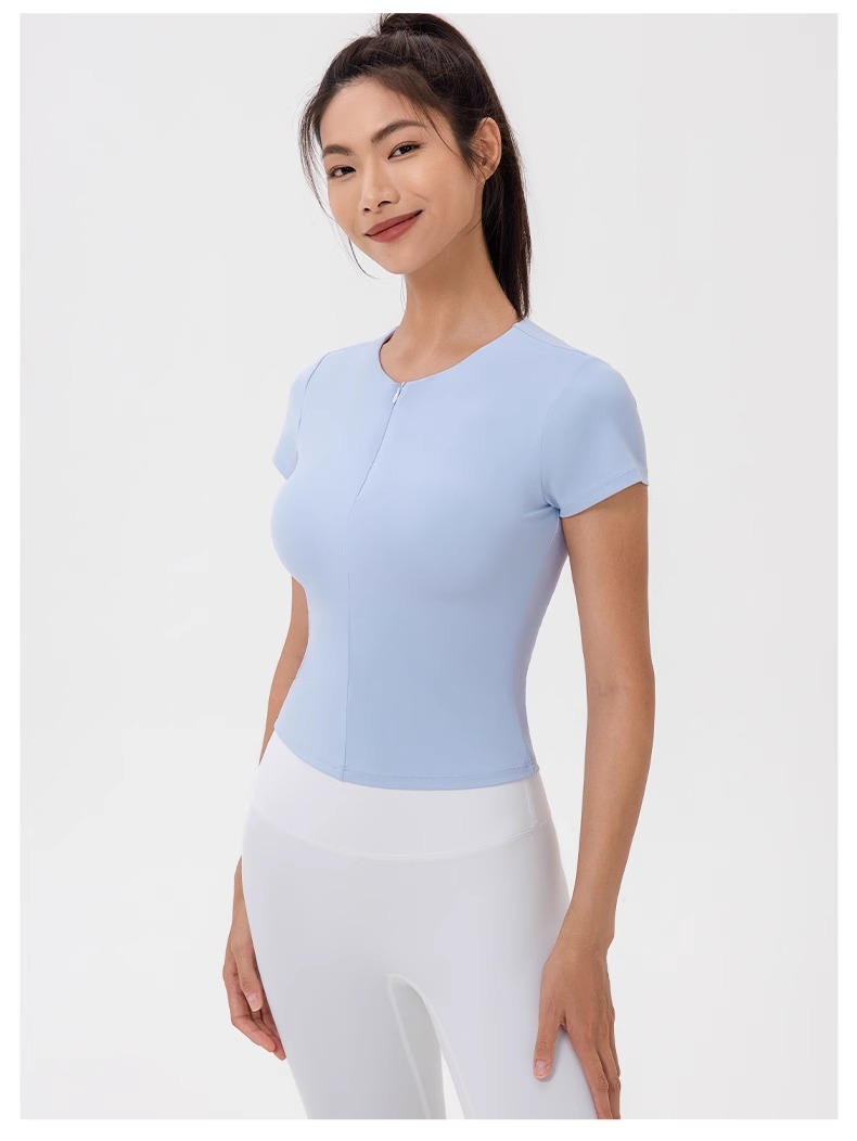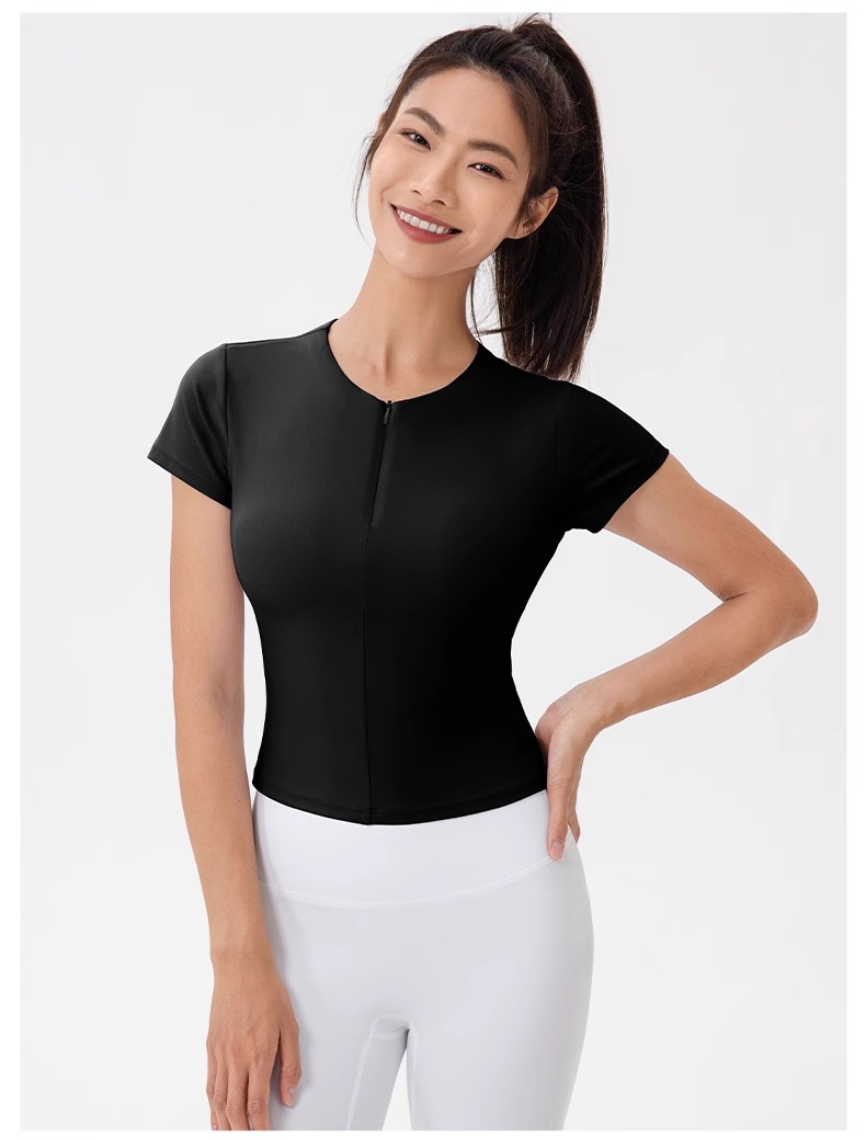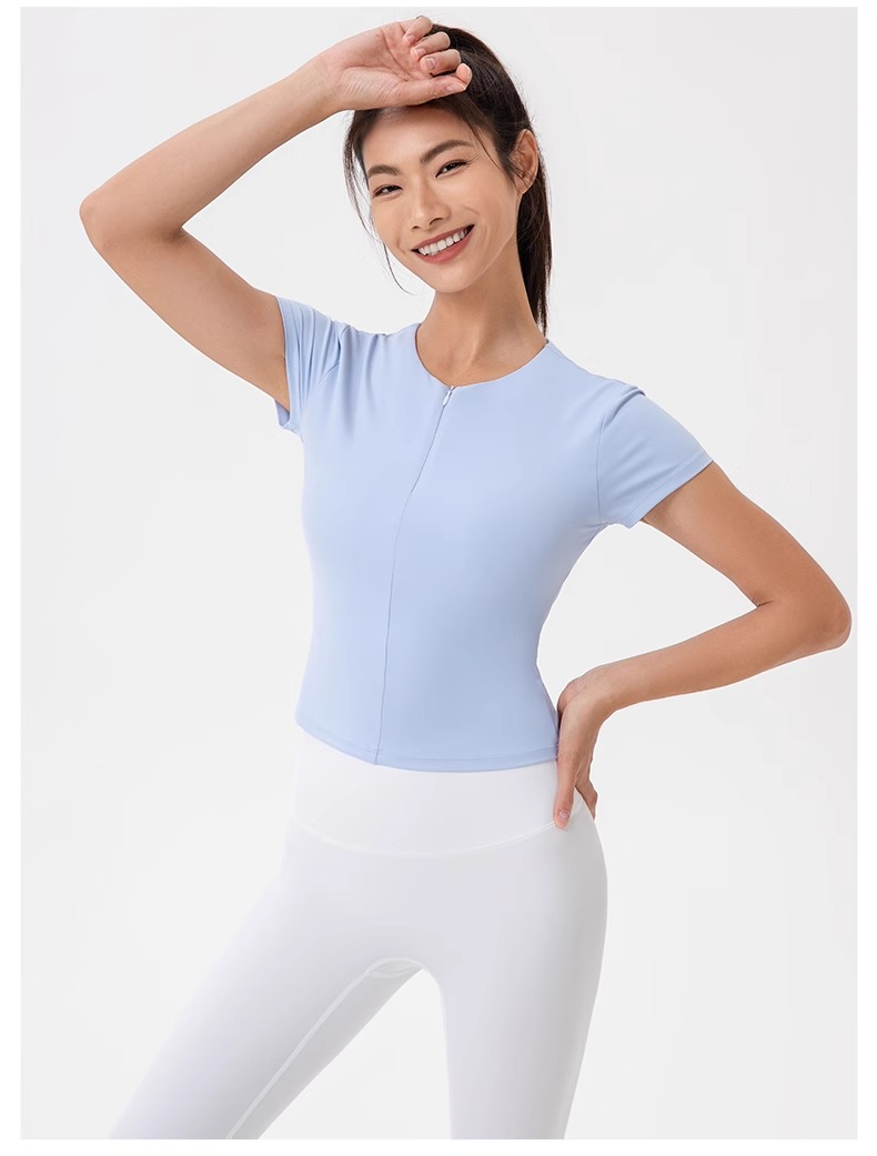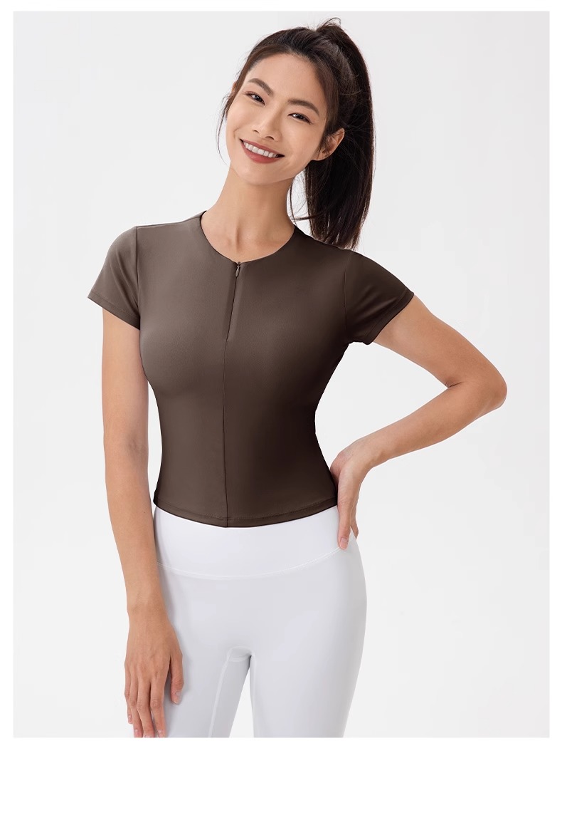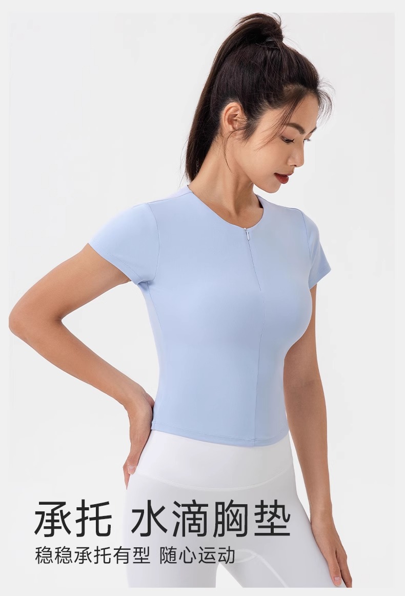 跃牌【欲动春风】系列 前拉链紧身显瘦含胸垫裸感高弹运动跑步t恤24340