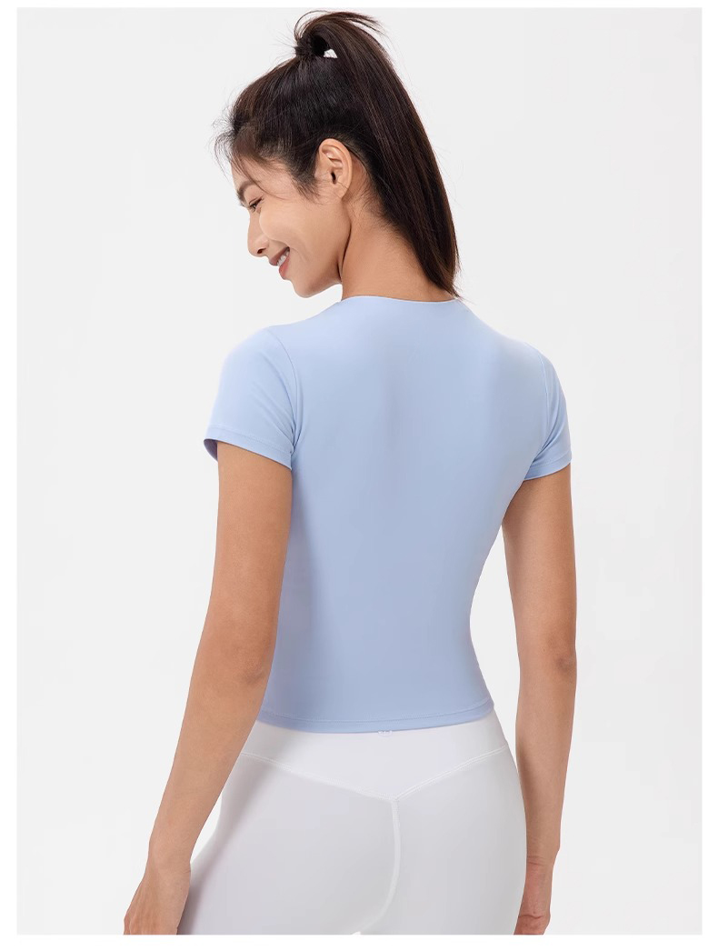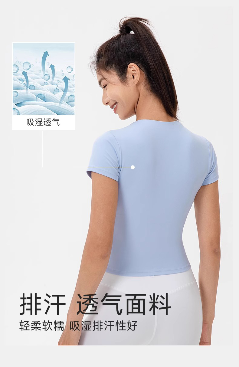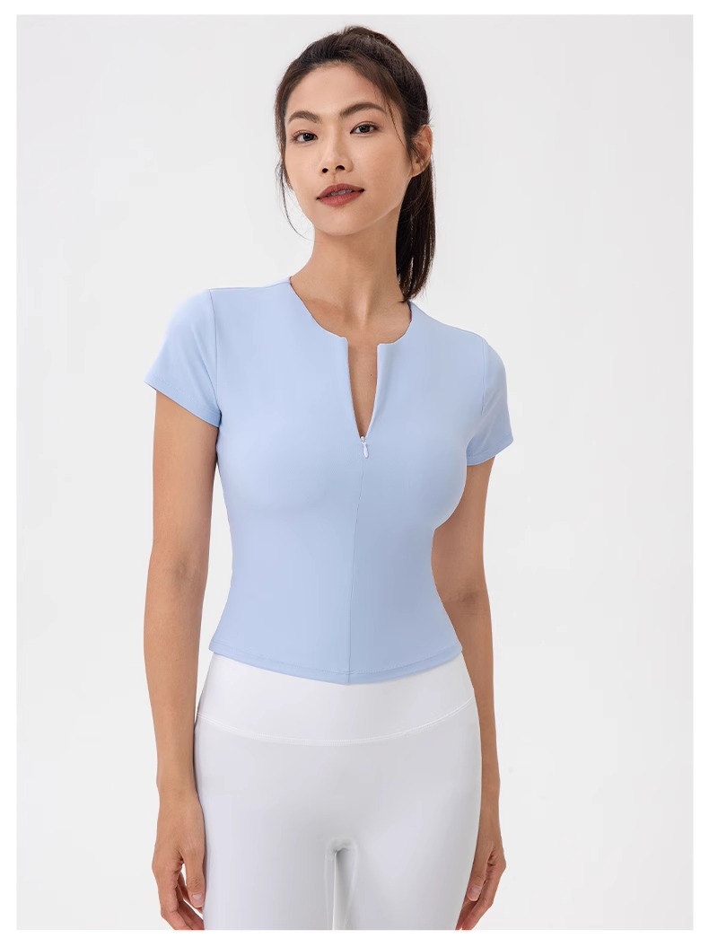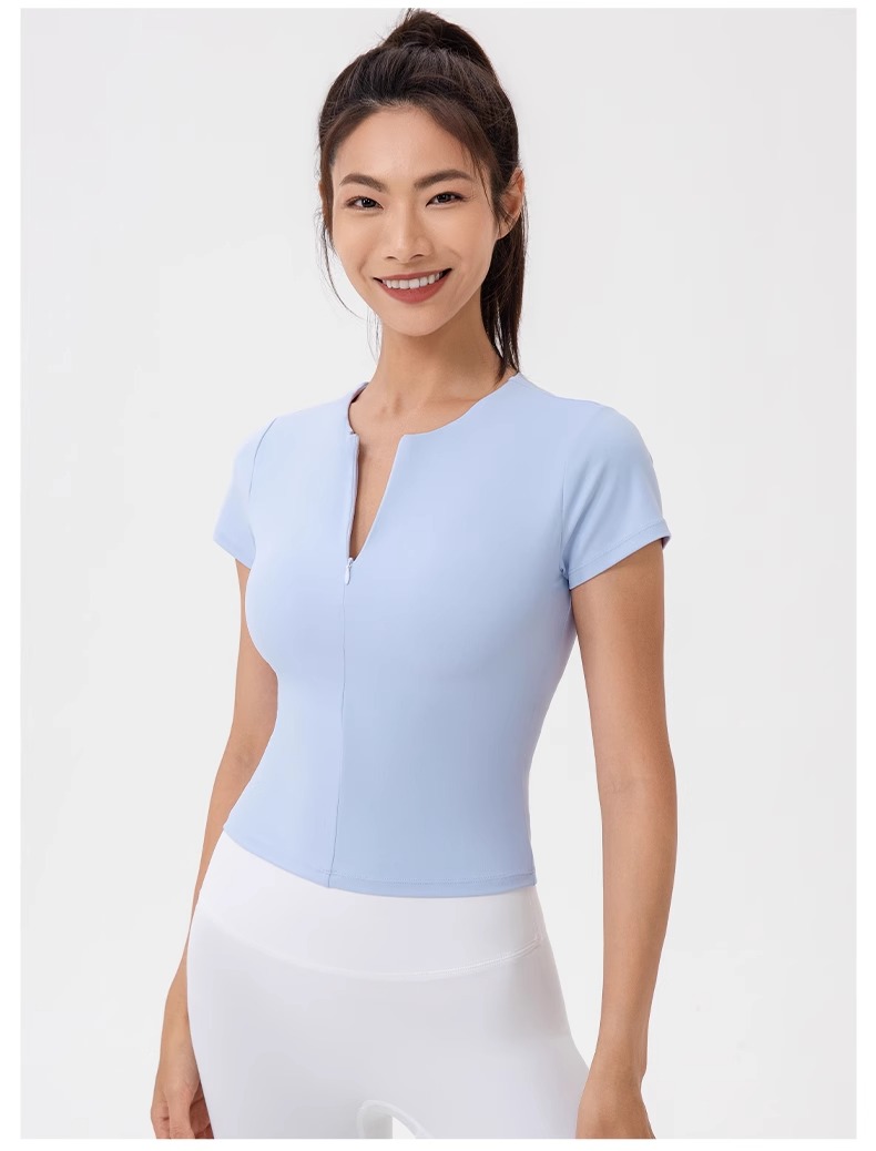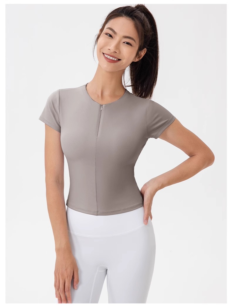 跃牌【欲动春风】系列 前拉链紧身显瘦含胸垫裸感高弹运动跑步t恤24340