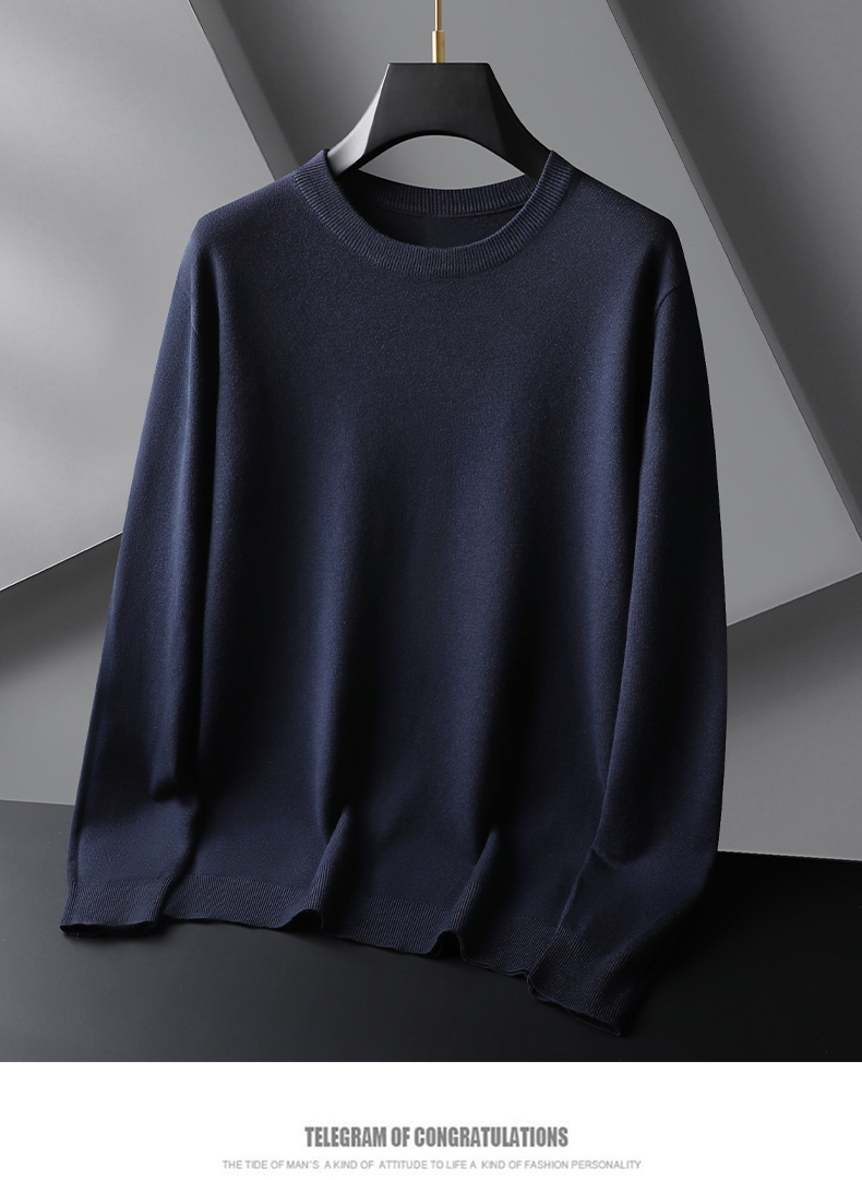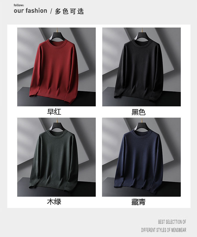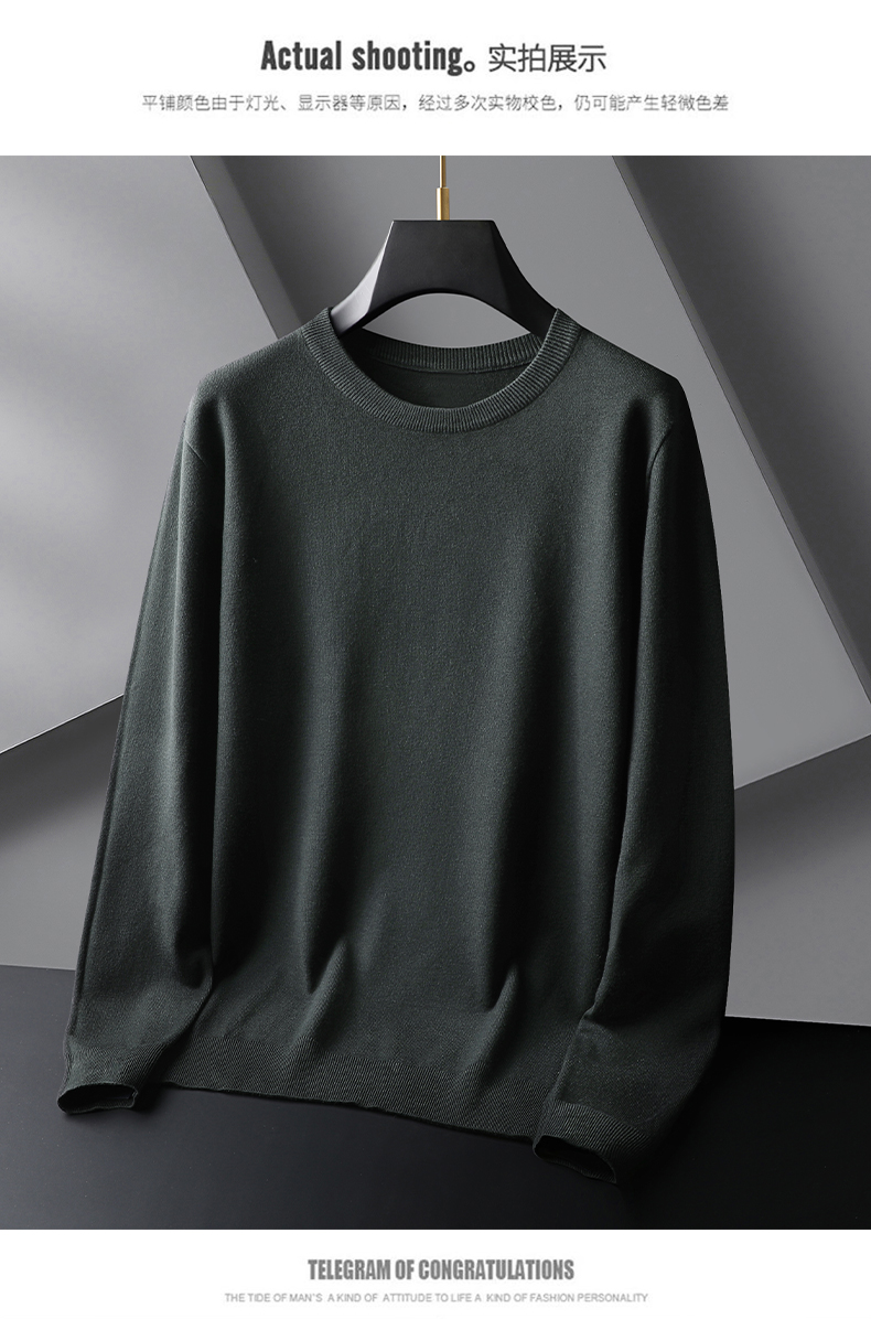 【莱赛尔+绵羊毛】【新款DG】大依优型净版纯色圆领长袖绵羊毛毛衣针织衫休闲针织衫毛背心加肥加大上衣男士胖子大码毛衫t恤打底