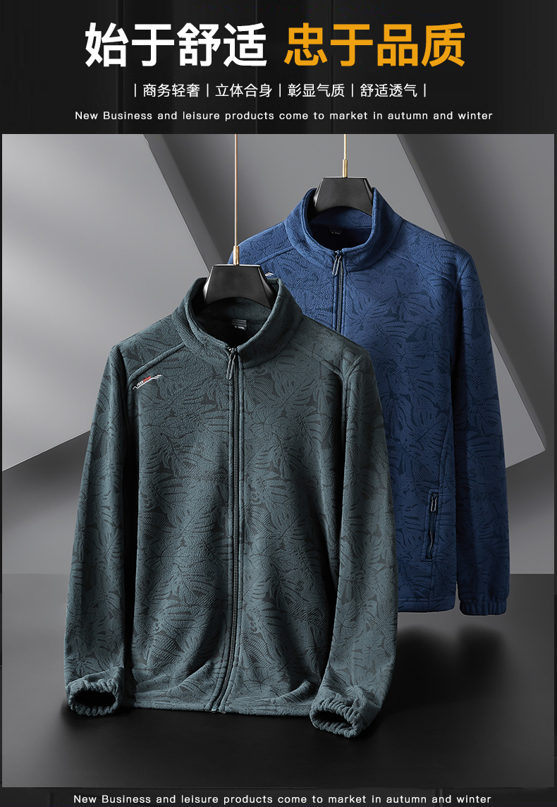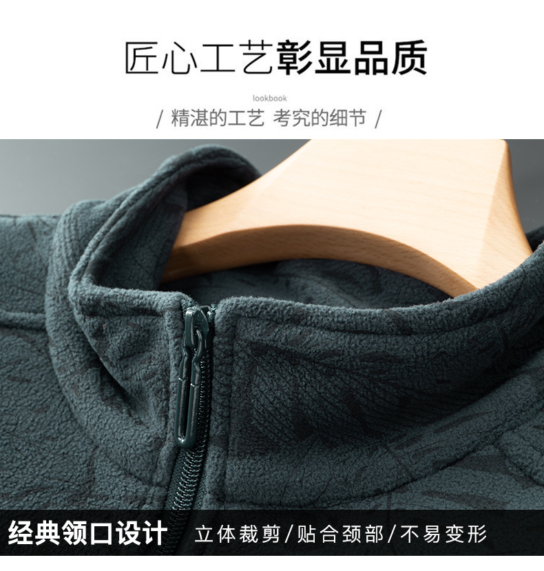 【Q】【抓绒衣】【新款DPF】大依优型大码男装加绒立领夹克抓绒衣加肥加大休闲夹克胖子宽松防风外套上衣