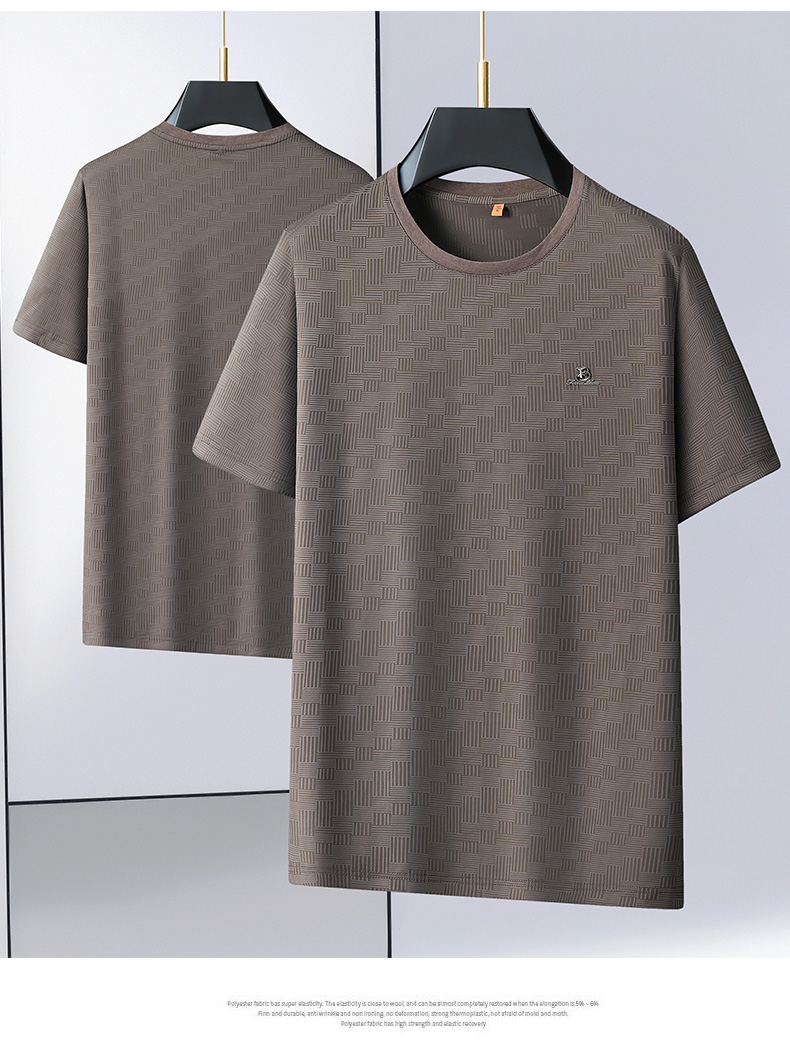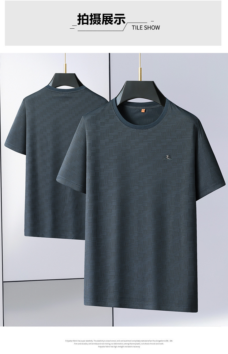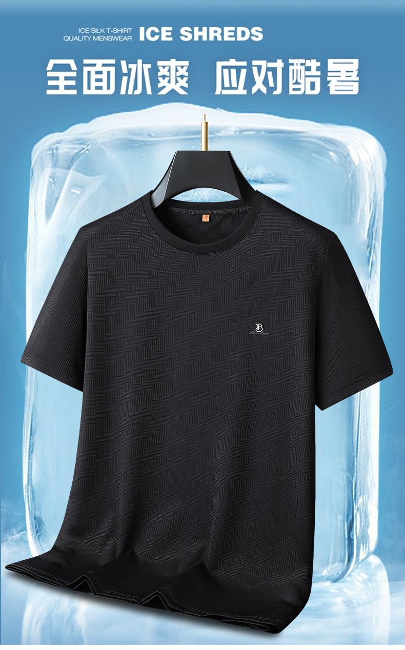 【冰丝高弹】【新款DWP】大依优型大码短袖T恤圆领加肥加大男士大号弹力透气舒适夏季半袖