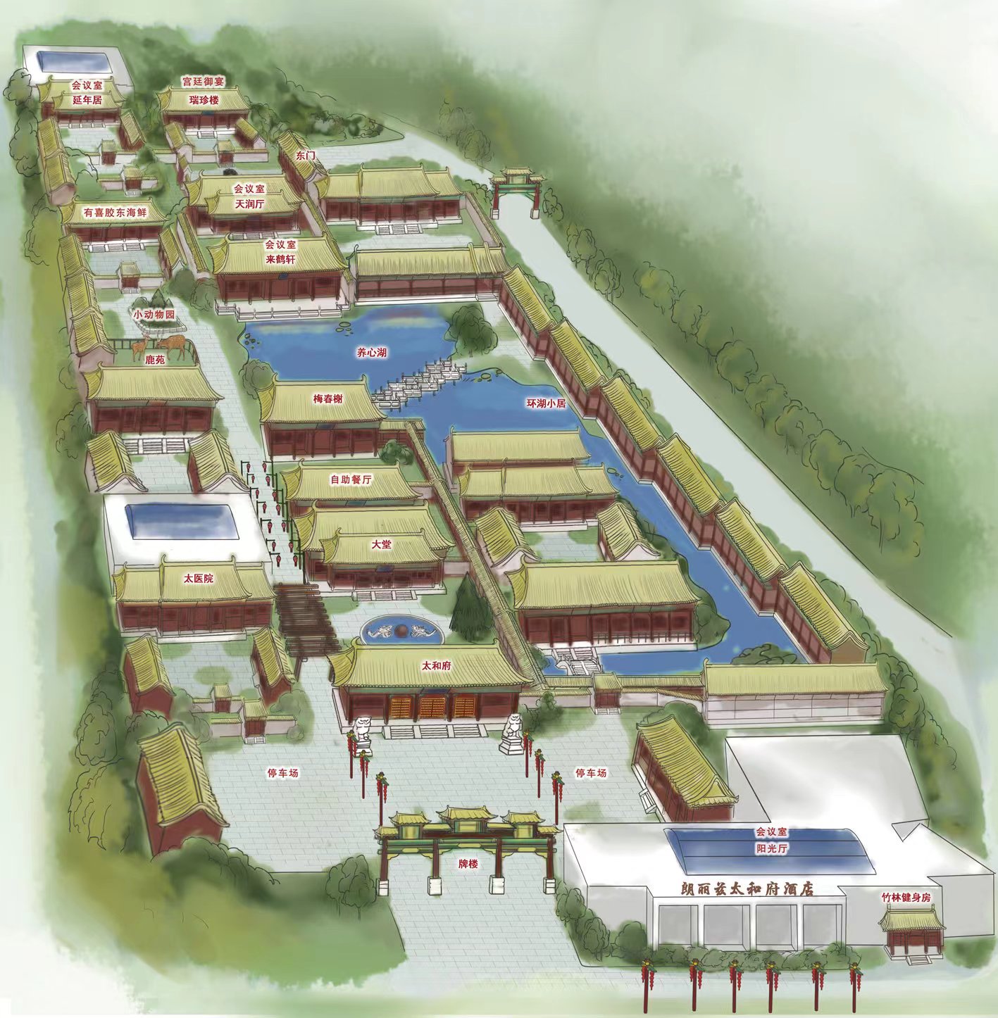 6、户外投壶、喂锦鲤、放莲花灯、王府夜色欣赏。