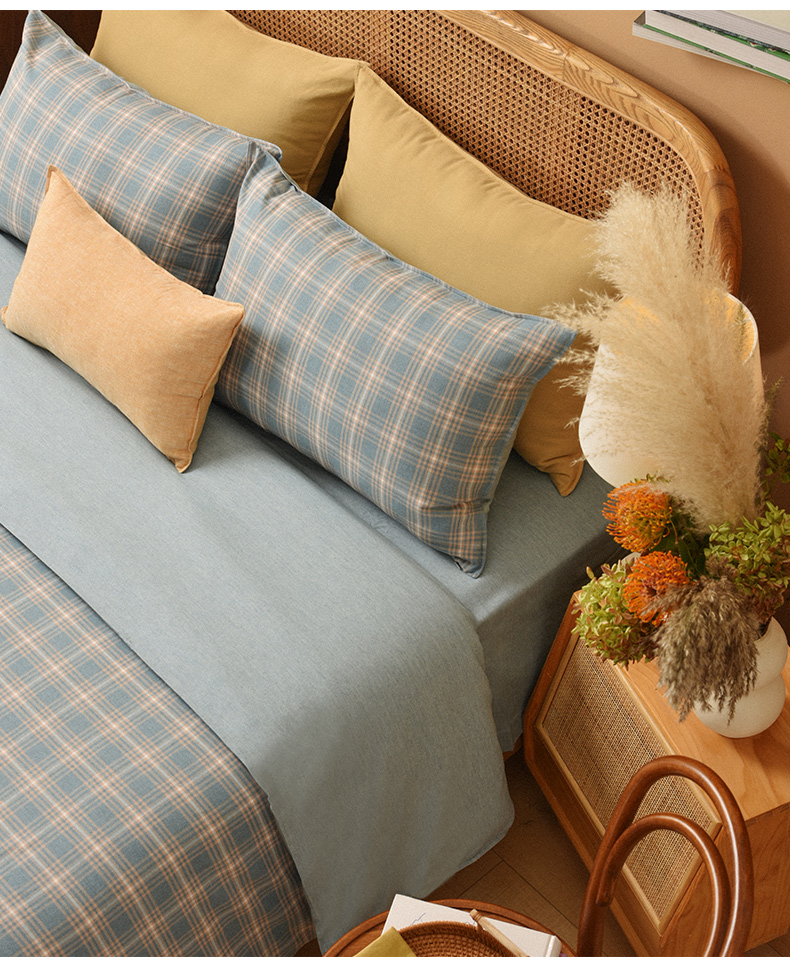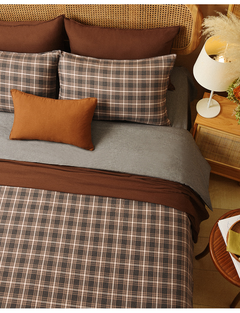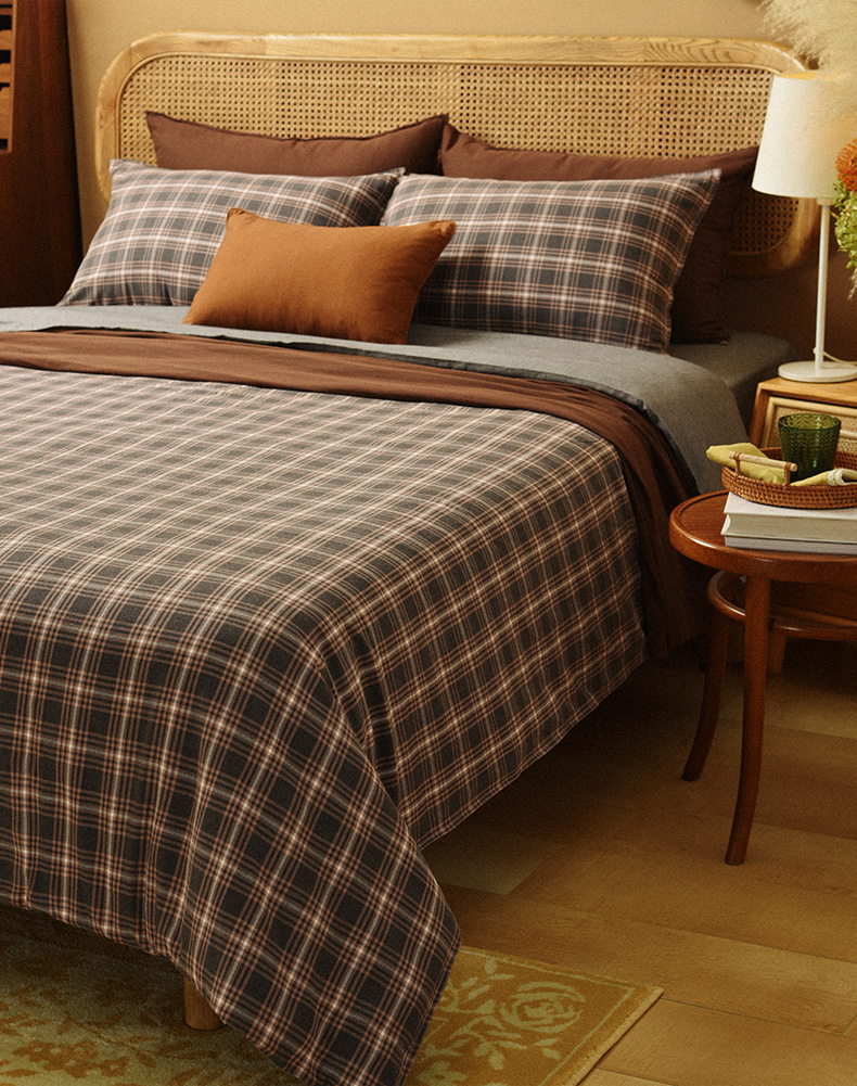 格子床上四件套全棉纯棉床单被罩枕头床品轻奢高级感