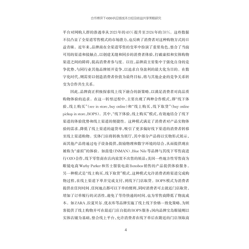 书名:合作博弈下O2O供应链成本分担及收益共享策略研究