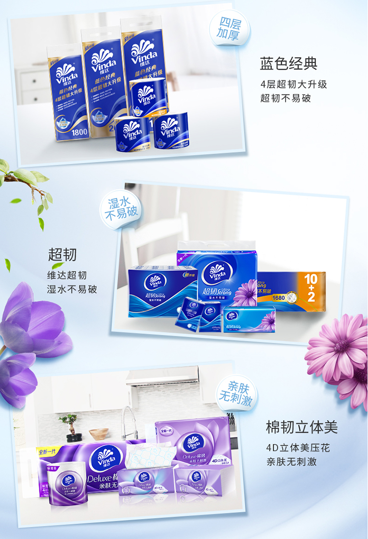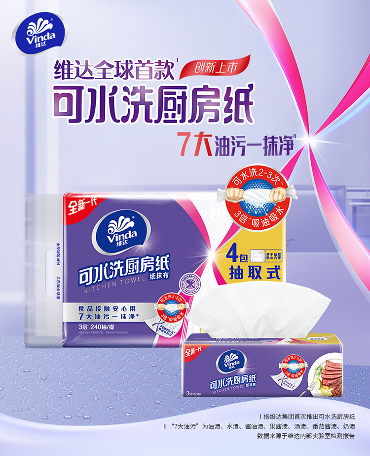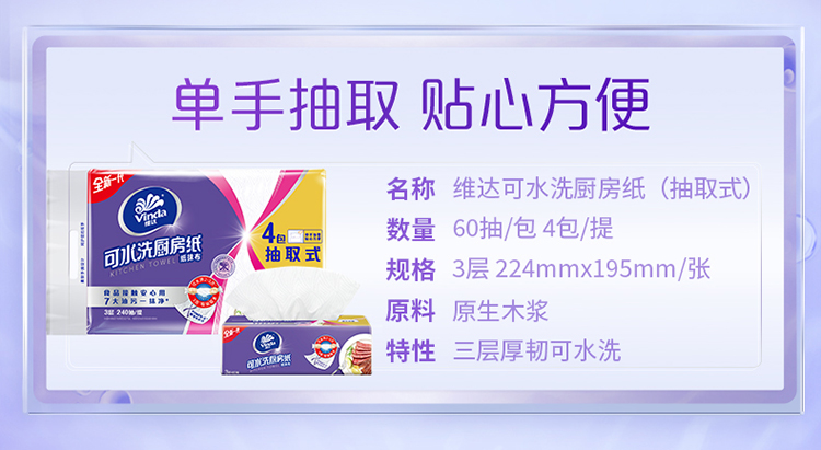【官方包邮】维达可水洗厨房纸(抽取式)XL码 60抽/包×4包/提