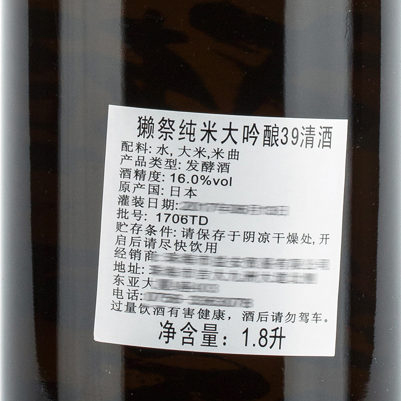 【日本清酒】1800ml獭祭39纯米大吟酿