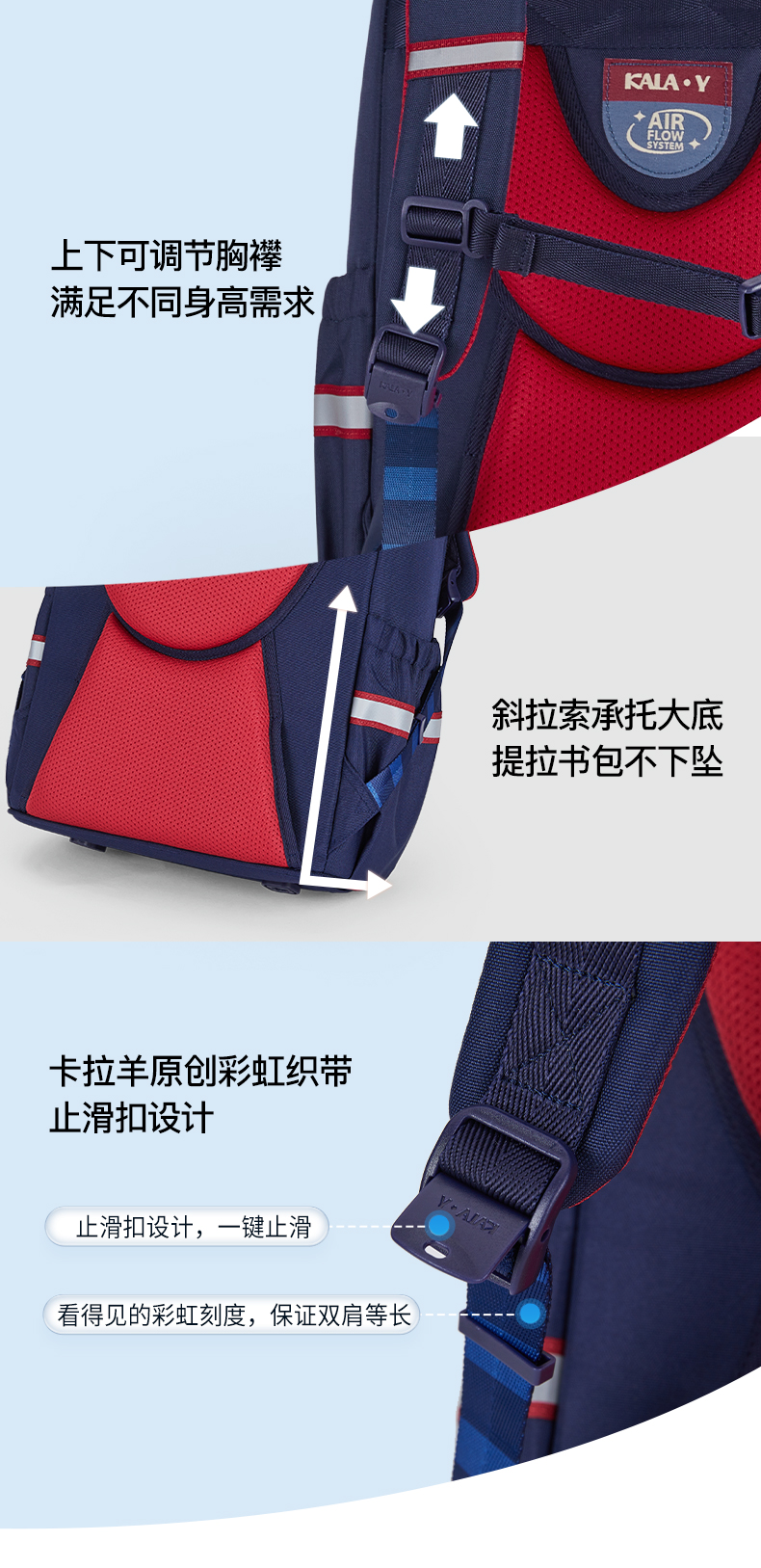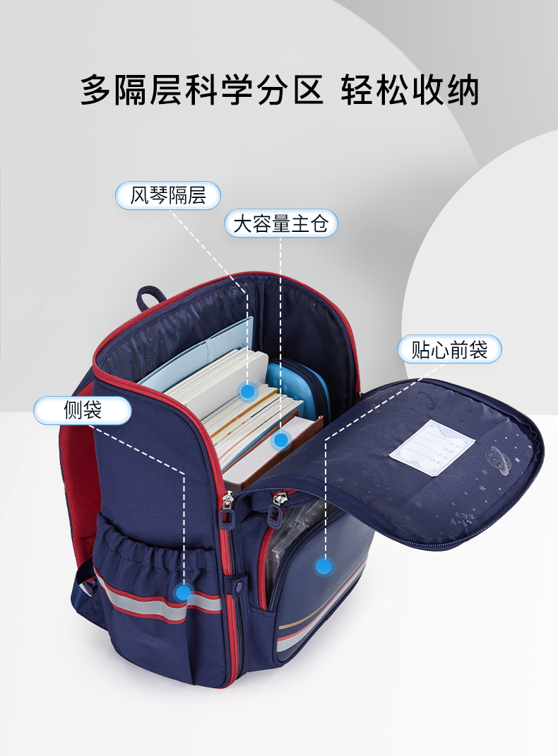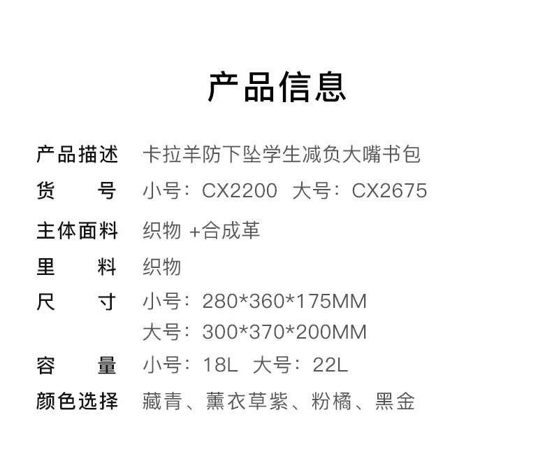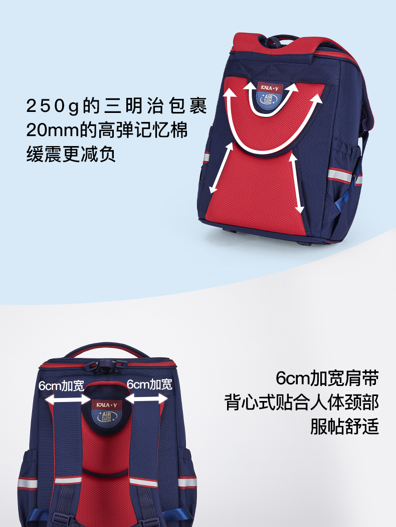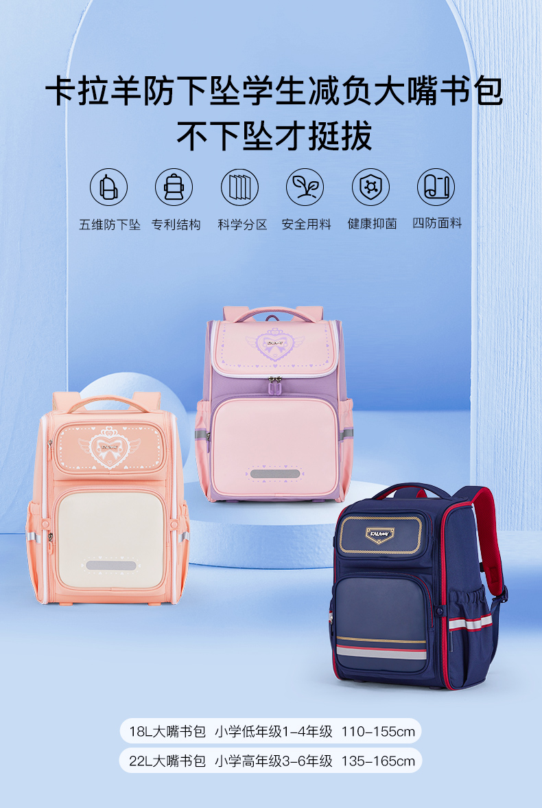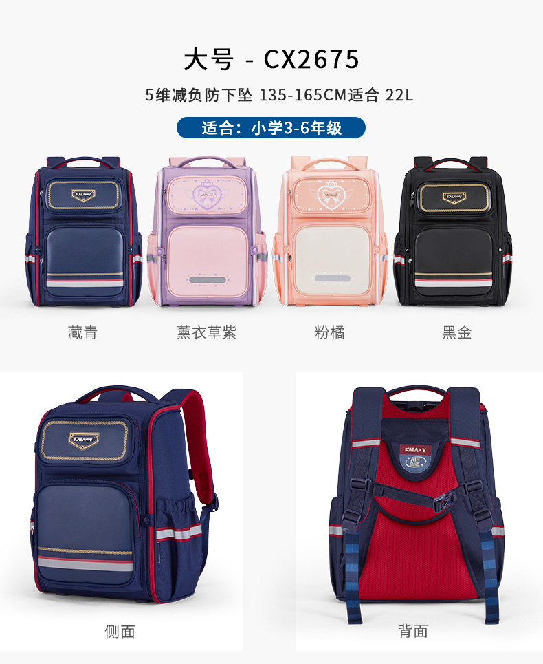 卡拉羊1-6年级18L/22L五维减负防下坠大嘴书包 追梦 CX2200+CX2675