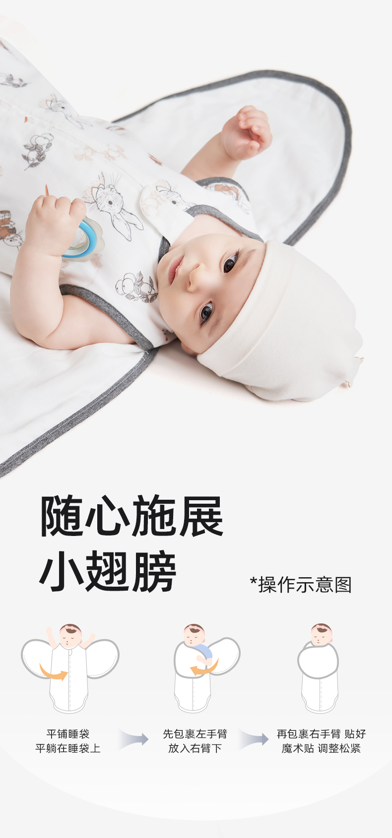 英国伊维诗乐Evoceler婴儿襁褓睡袋新生儿防惊跳春夏季宝宝包裹纯棉防踢被