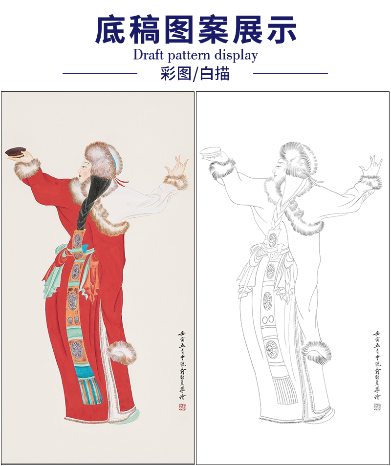 俞致贞人物工笔画白描底稿《番女》临摹勾线高清打印稿ZZ43