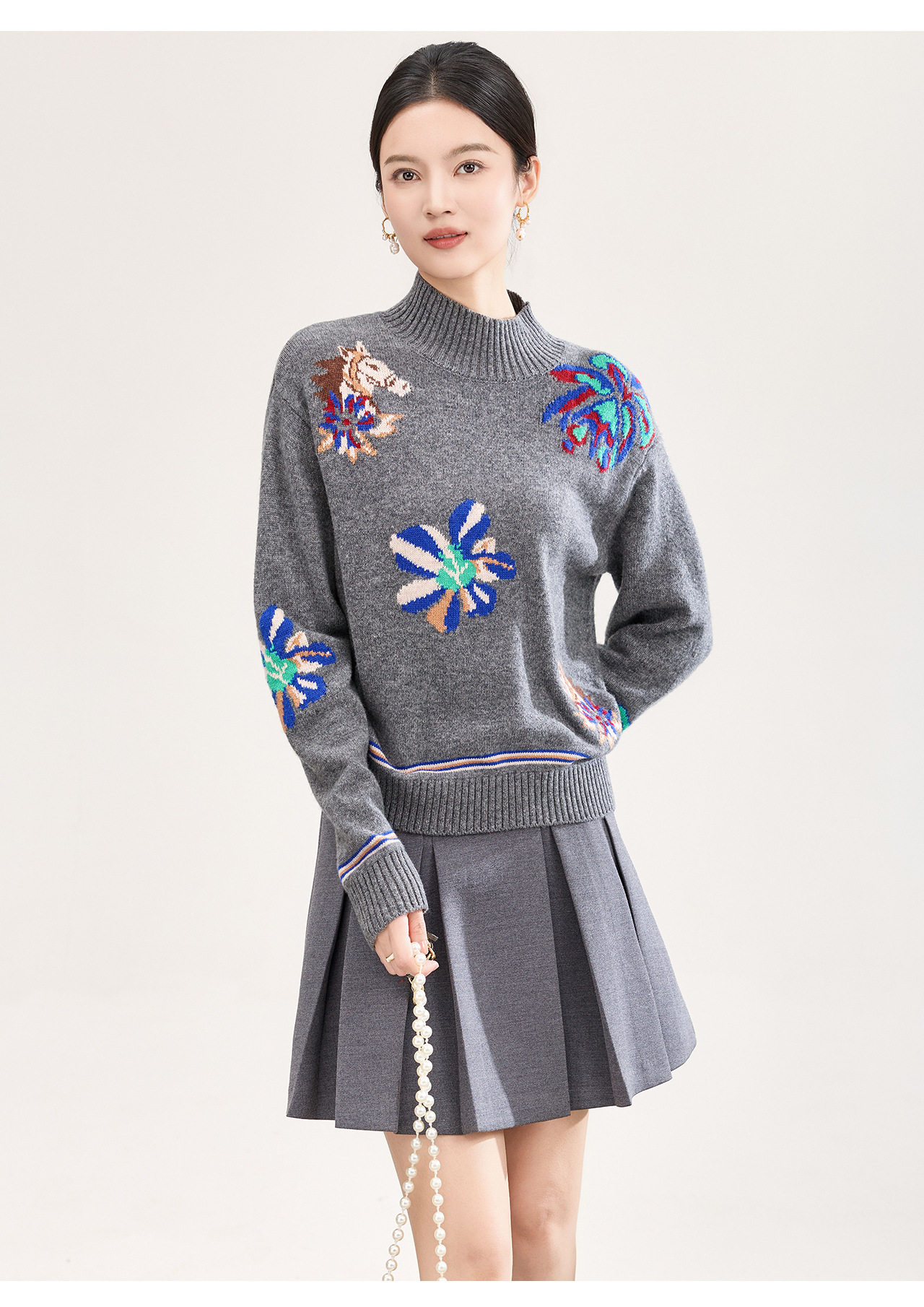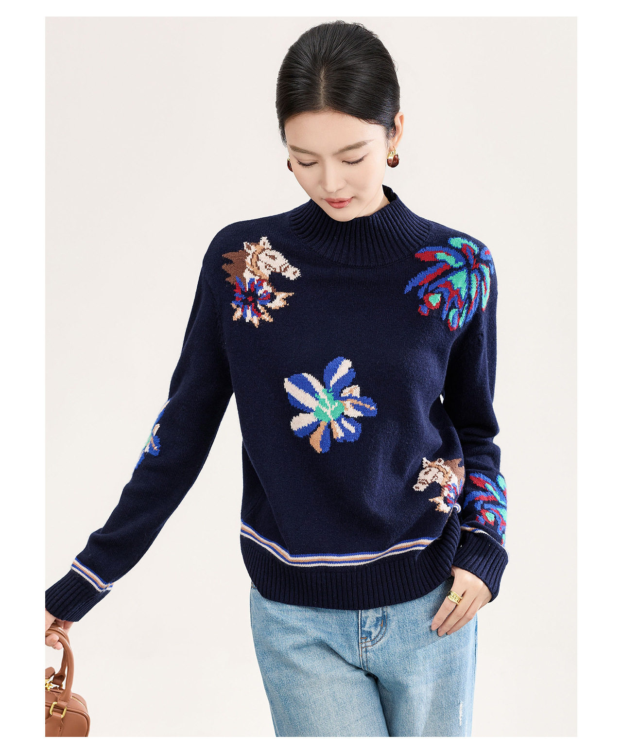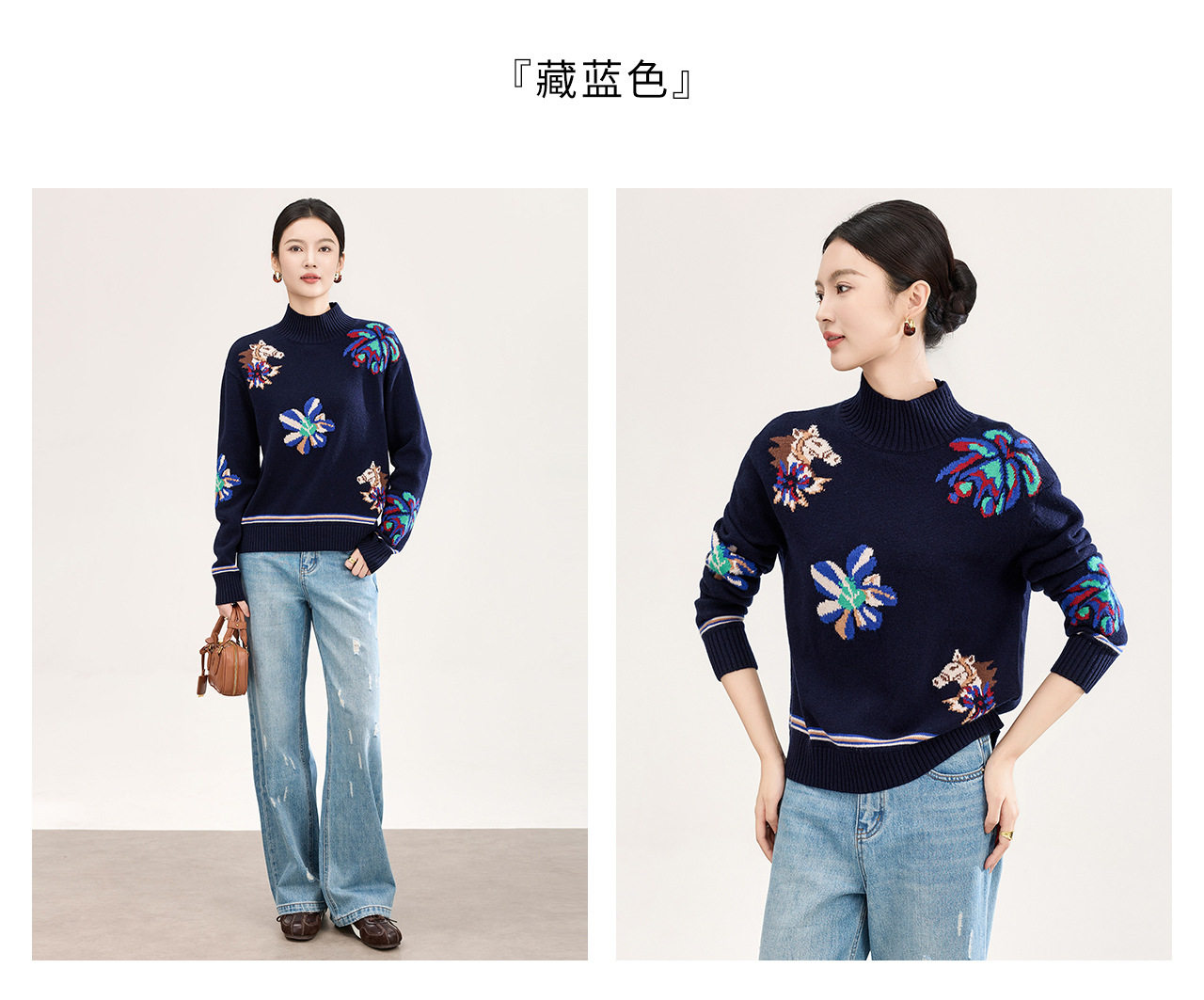 「高货wl」全新升级【铂金会员330/天猫449/差价119】(05340)洛诗琳小马钩花羊毛上衣2025秋冬新款气质半高领毛衣女