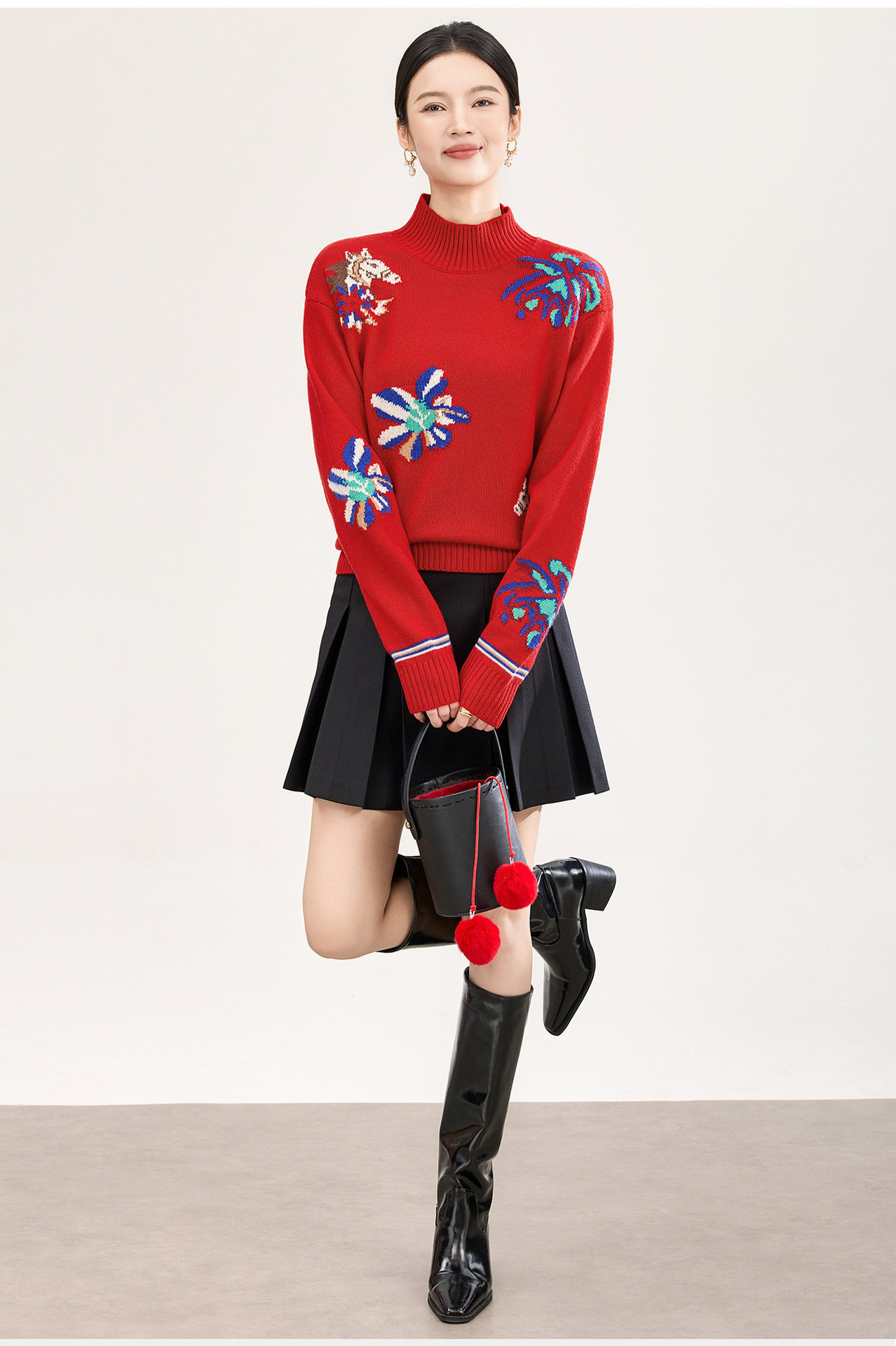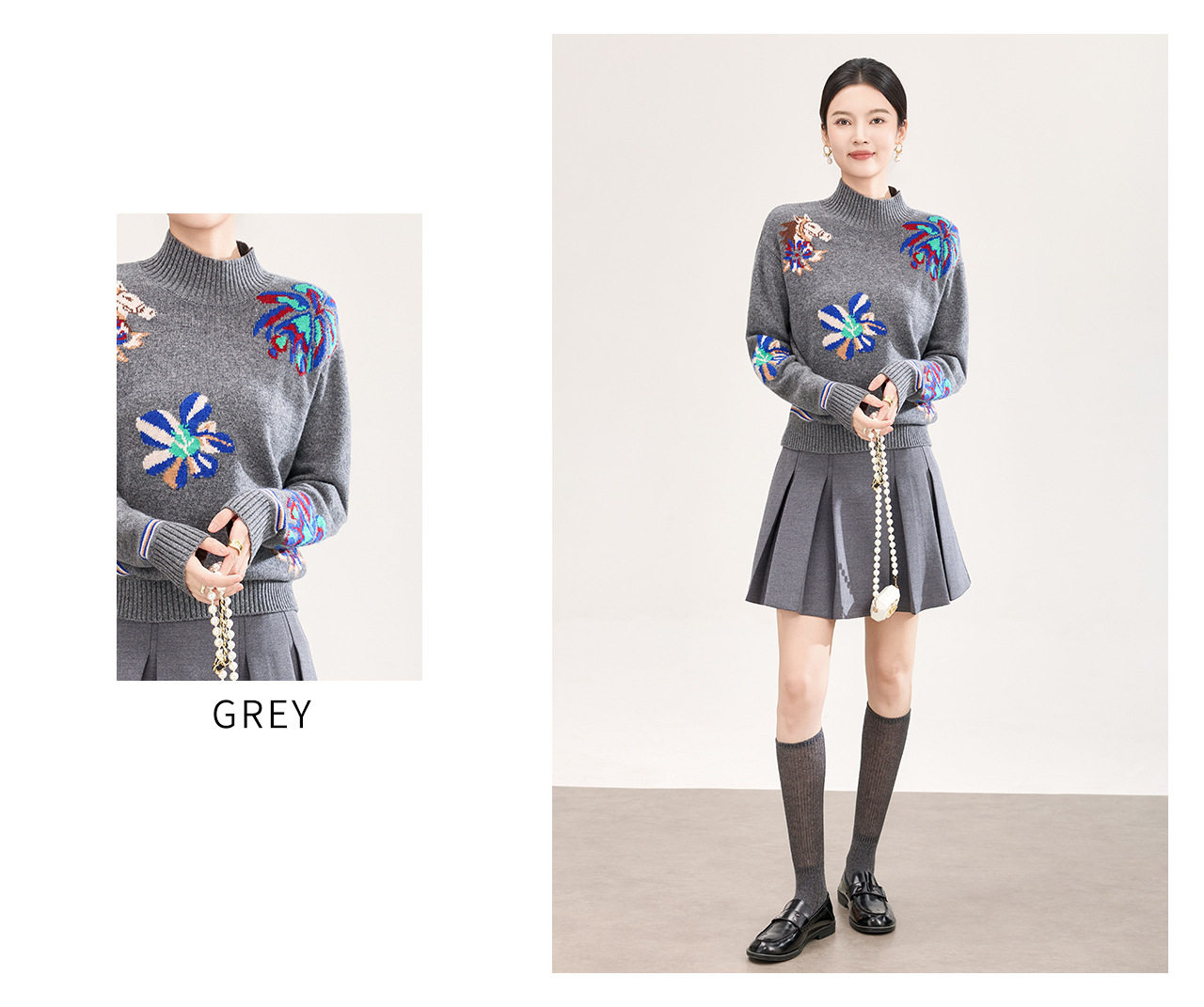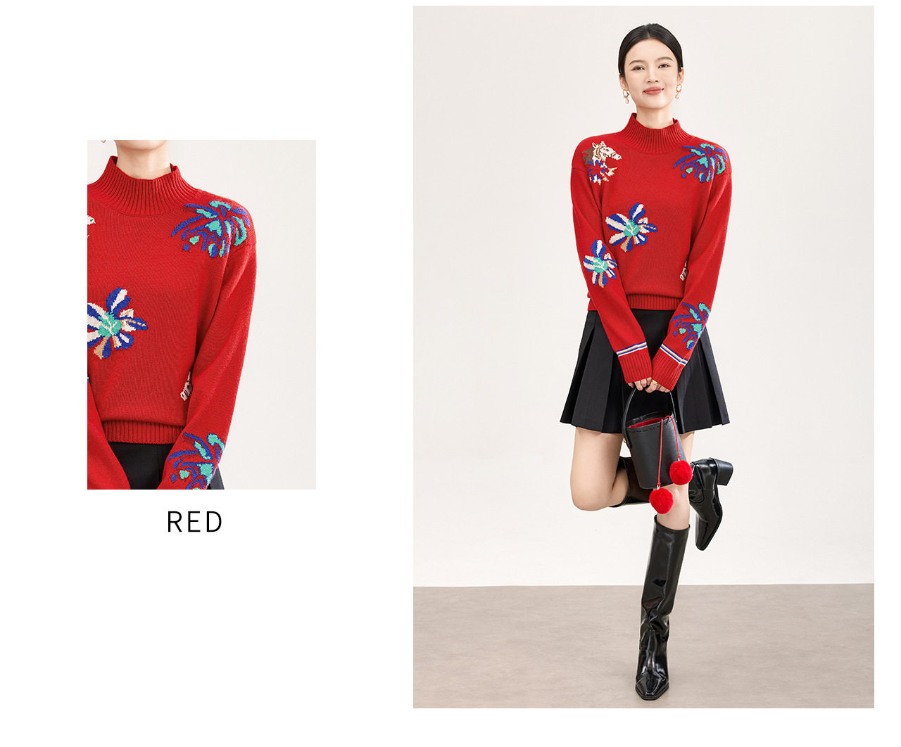 「高货wl」全新升级【铂金会员330/天猫449/差价119】(05340)洛诗琳小马钩花羊毛上衣2025秋冬新款气质半高领毛衣女