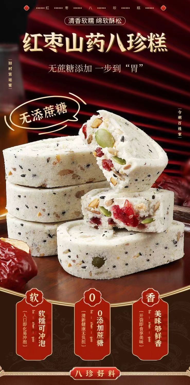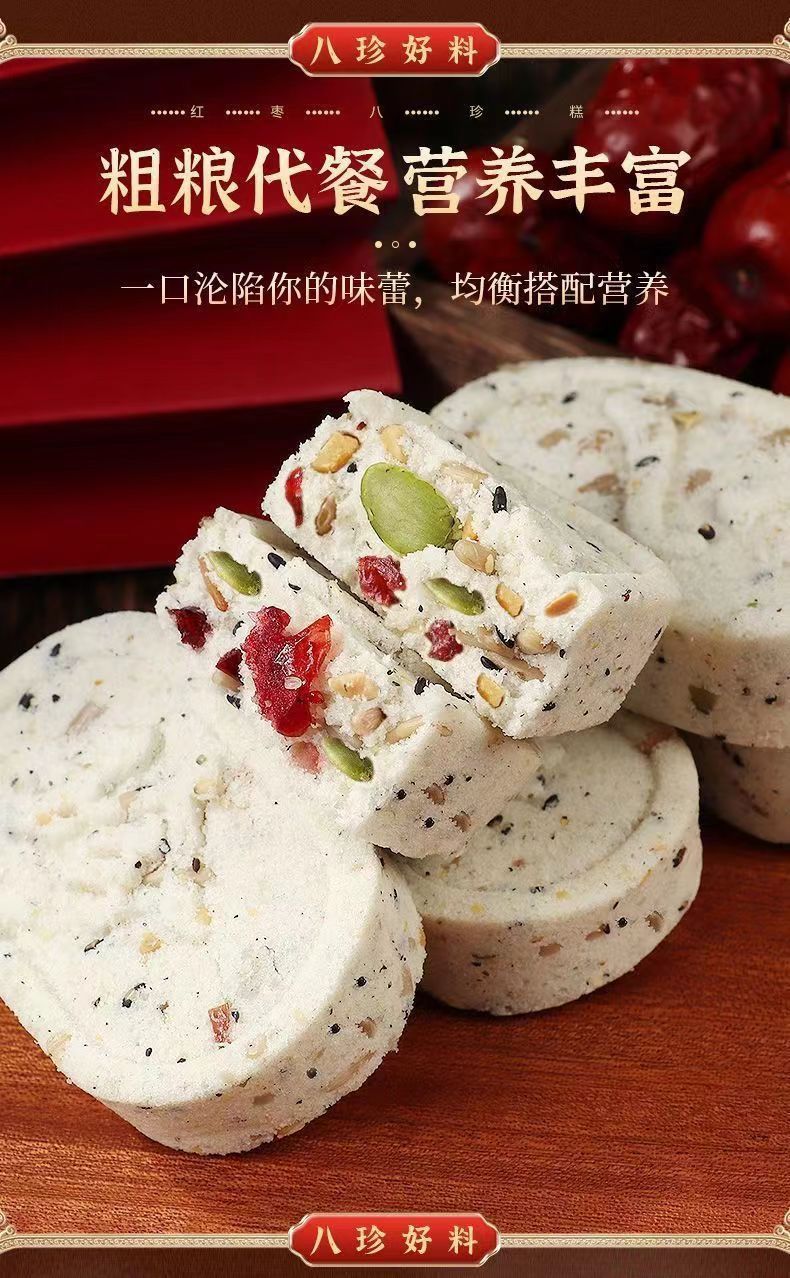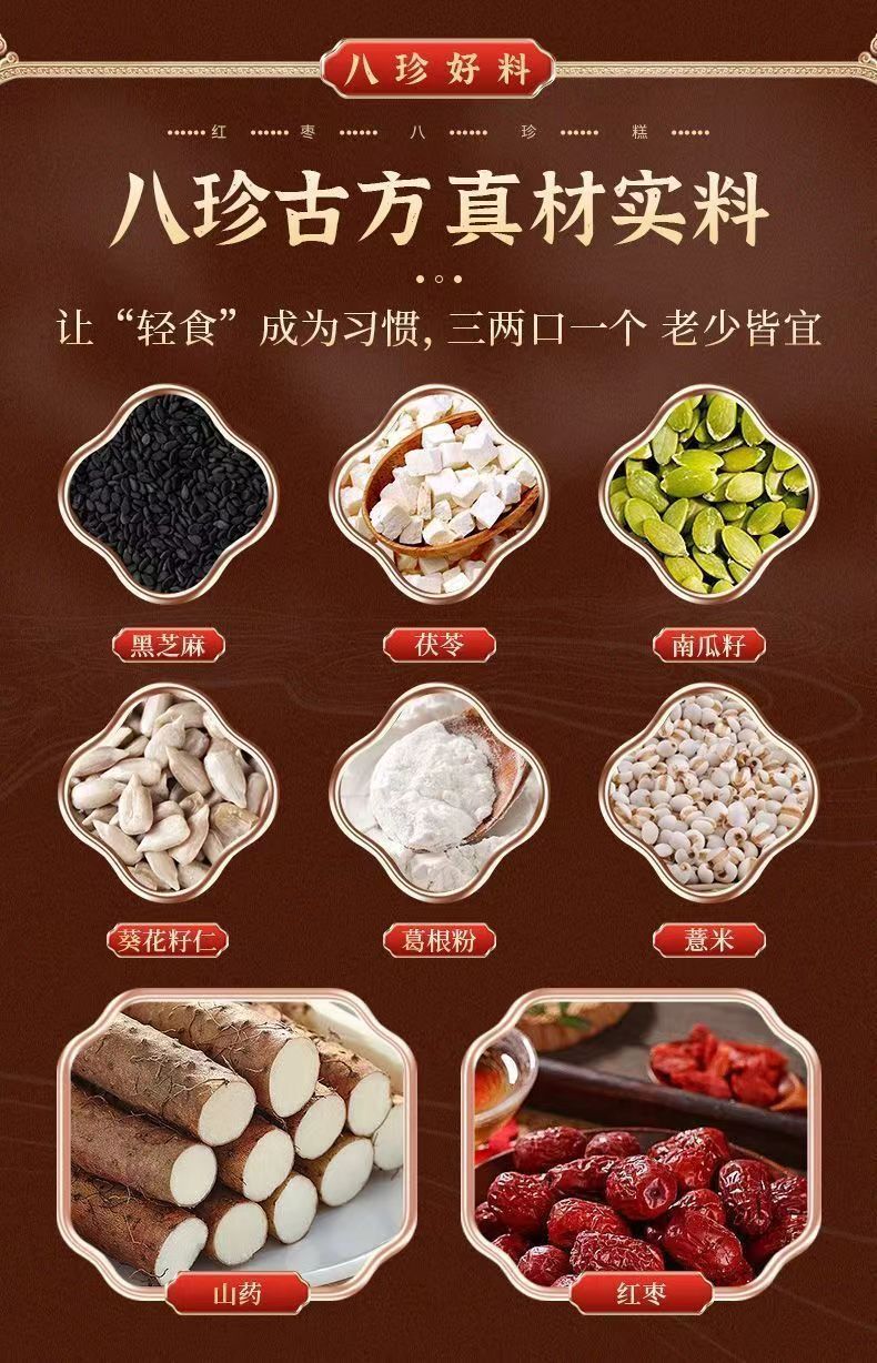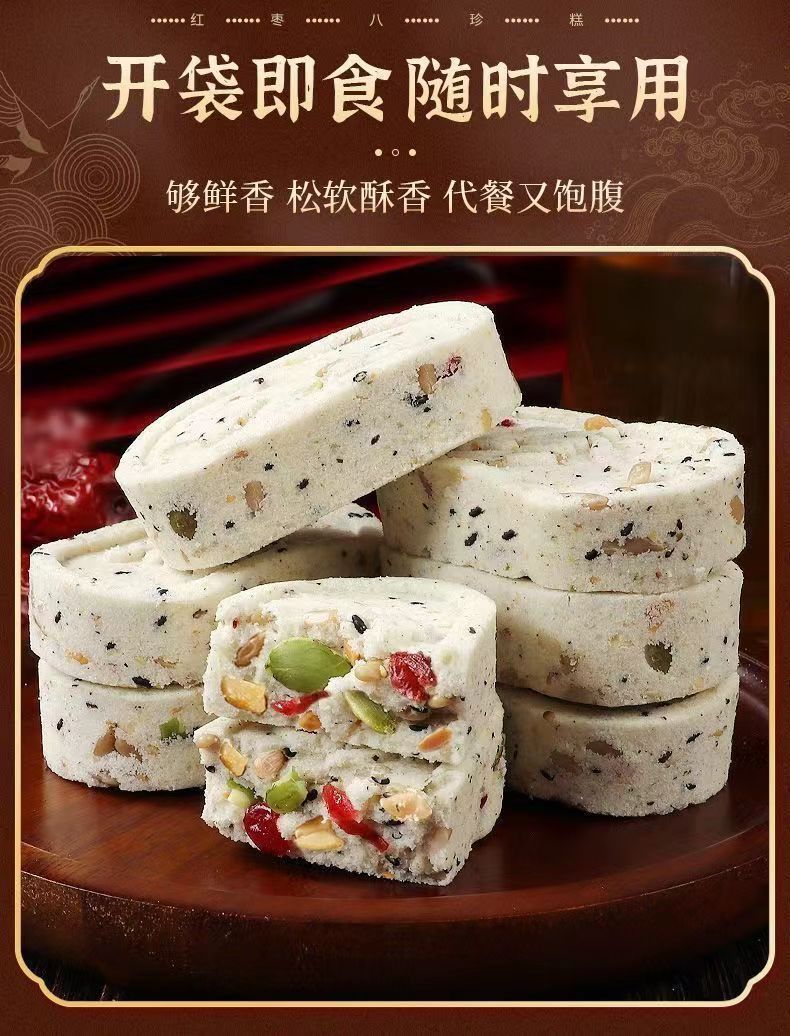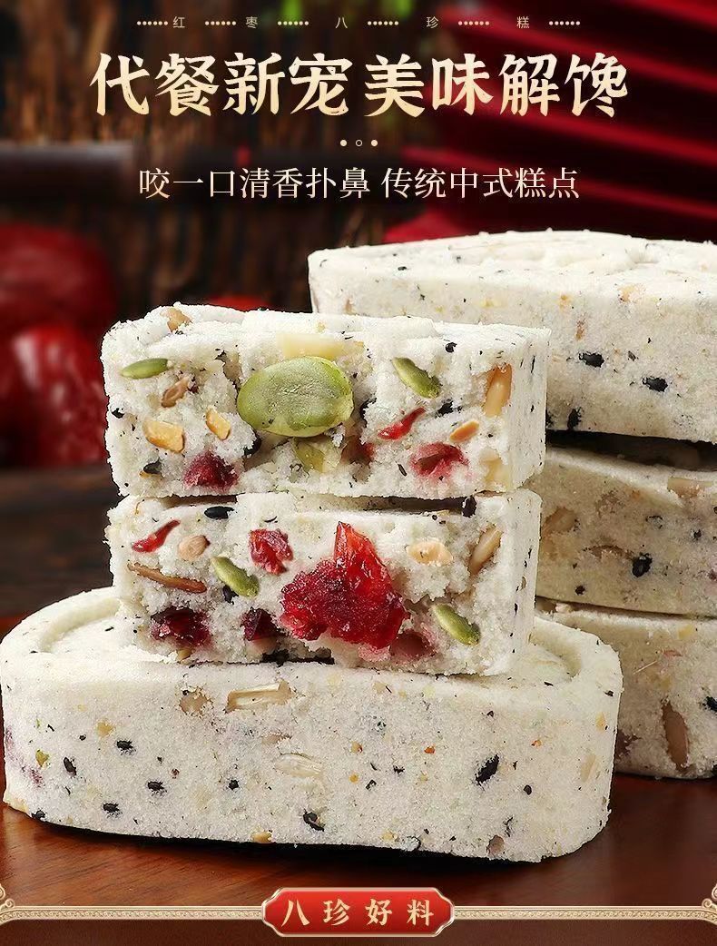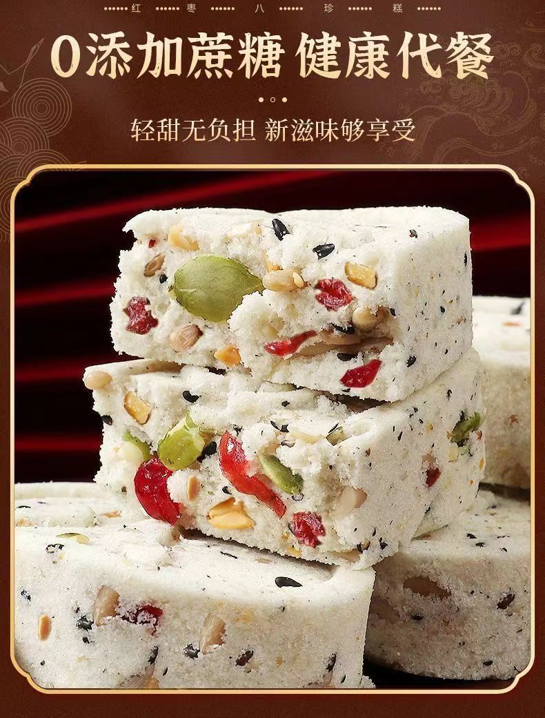 【八珍古方!清香软糯】山药红枣八珍糕坚果茯苓芡实糕薏湿糕无蔗糖中老年儿童零食品下午点心,绵软酥松。ry