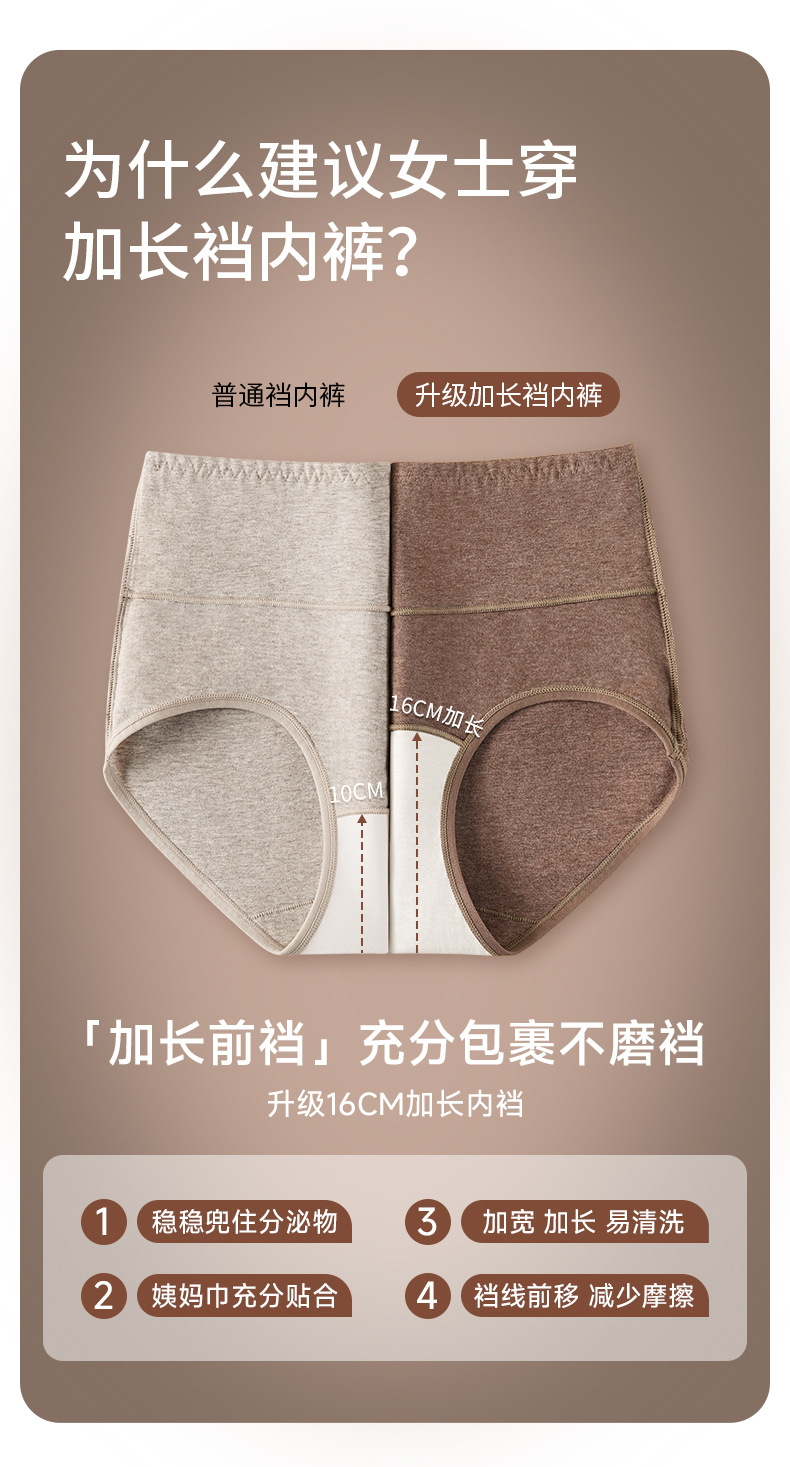 大码高腰纯棉内裤女彩棉桑蚕丝加长裆三角裤头包臀收腹无痕批发