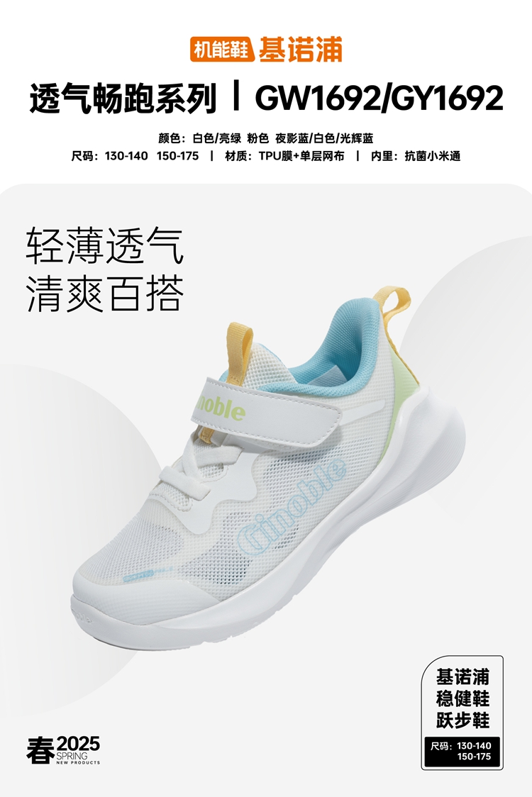基诺浦机能鞋春夏单网运动鞋透气畅跑鞋GY1692