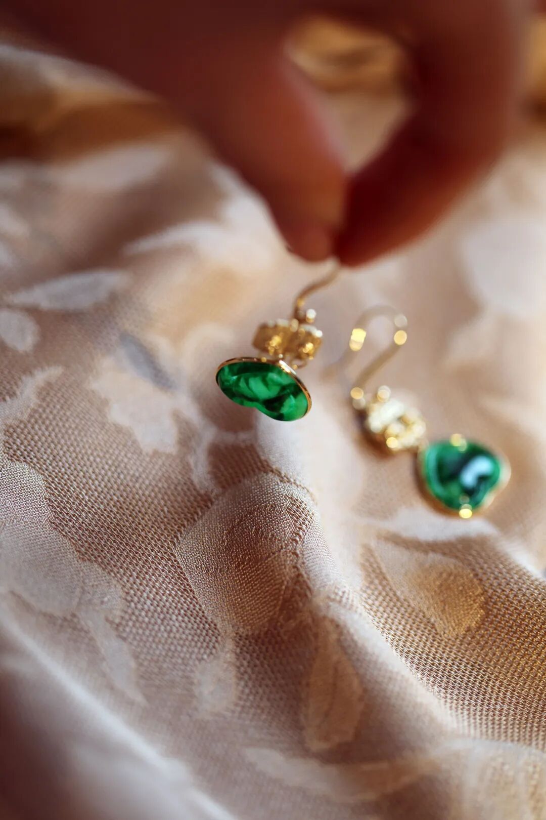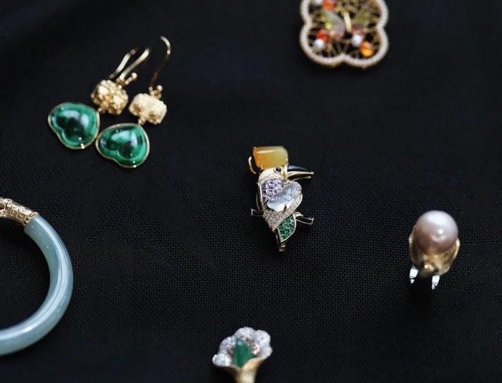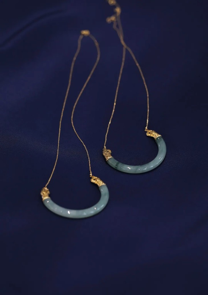 夏天还在马蹄莲的花芯里闪烁,转眼秋风就起来了。一抹凉意荡漾在月牙儿似的玉璜项链上,翠色和金色就这样活泼泼地泼洒出来。