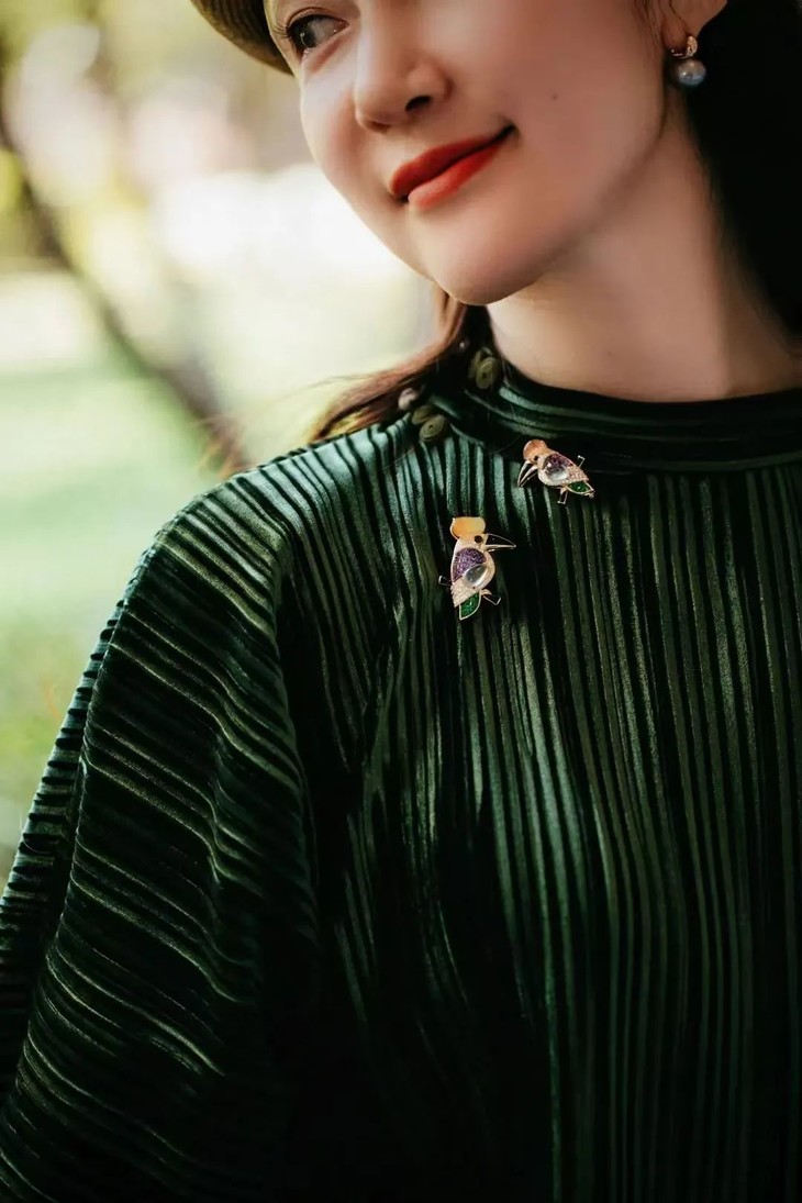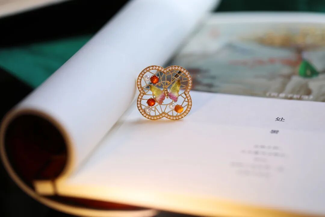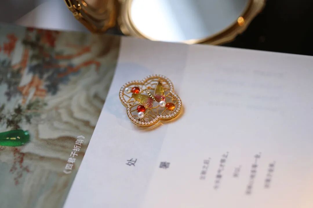 仿佛园林中移步换景小轩窗,庭院深深,赏心乐事也不必非至园林,也在胸针方寸间。