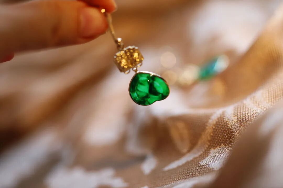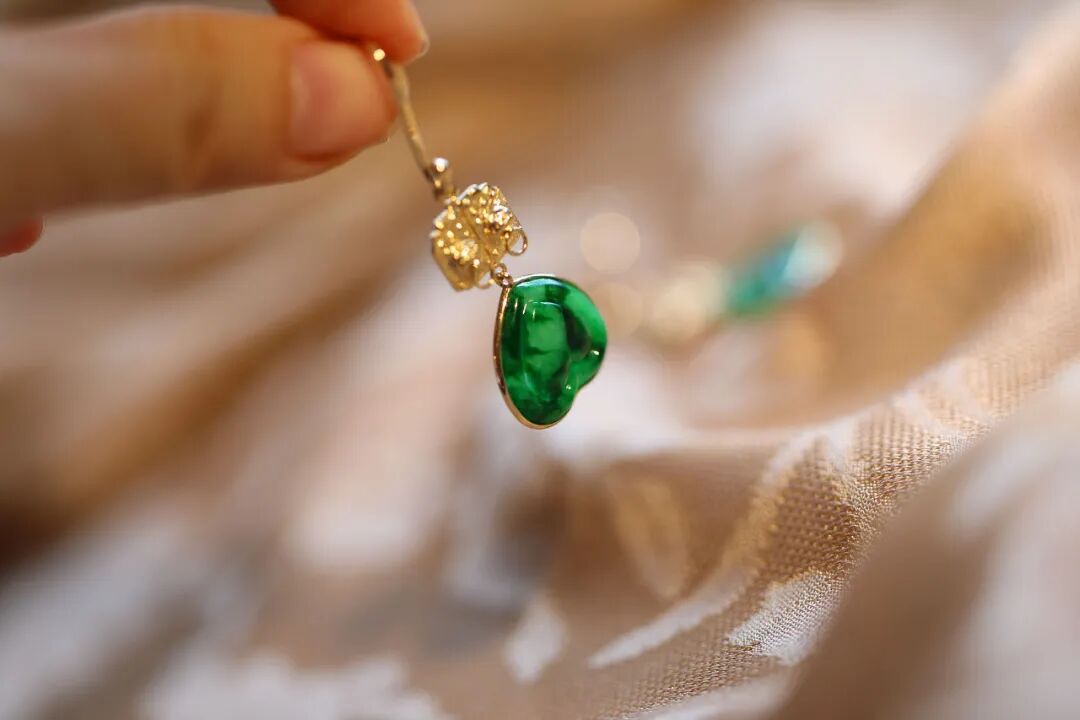红翡翠主石则气质大不同,它有种流金岁月的温柔温润感,