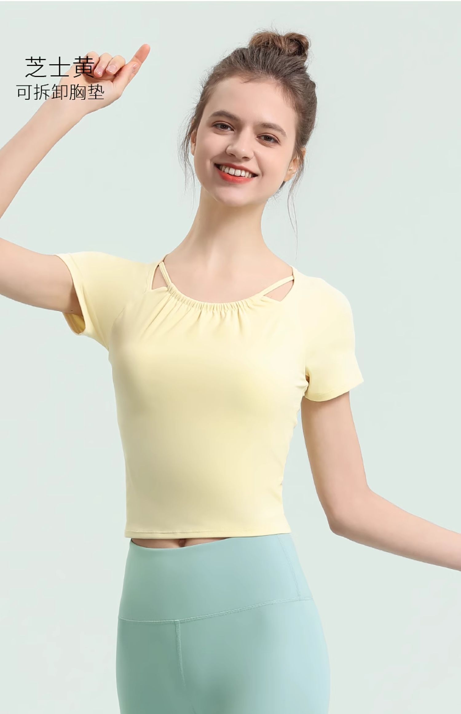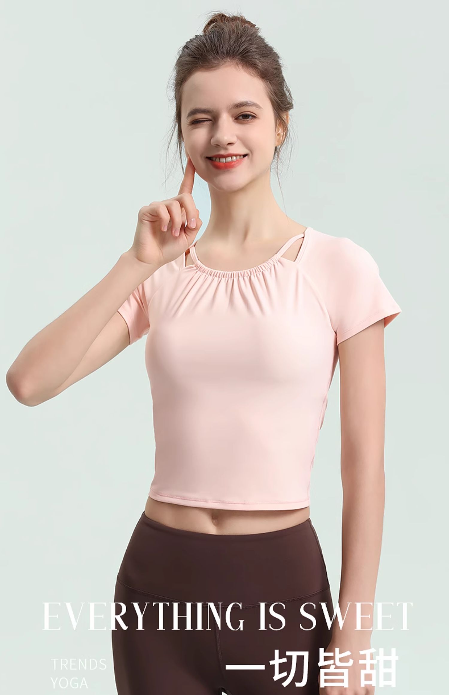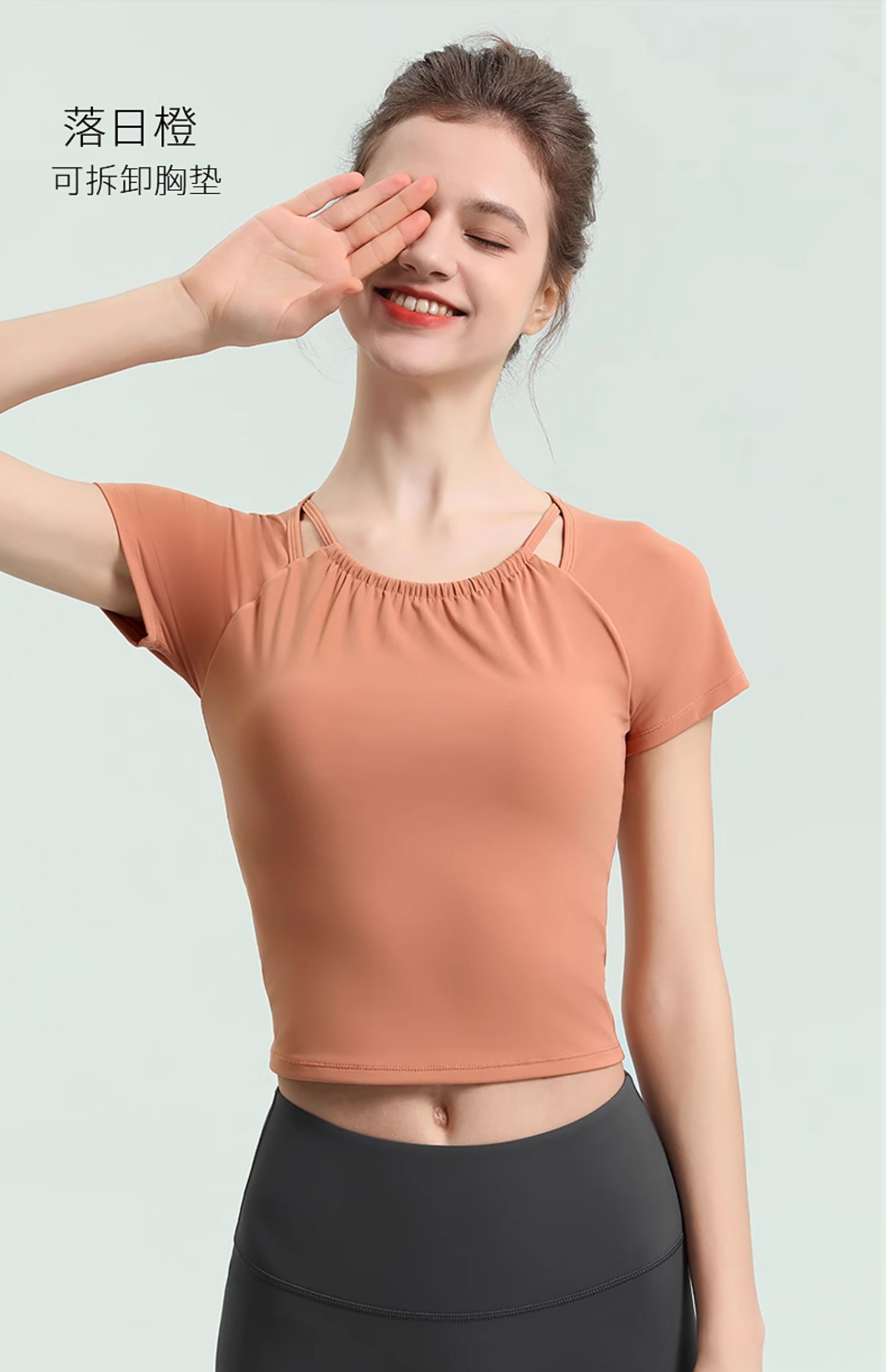 (断码清仓)梵美人 F1039R 瑜伽短袖 带胸垫 轻薄零感