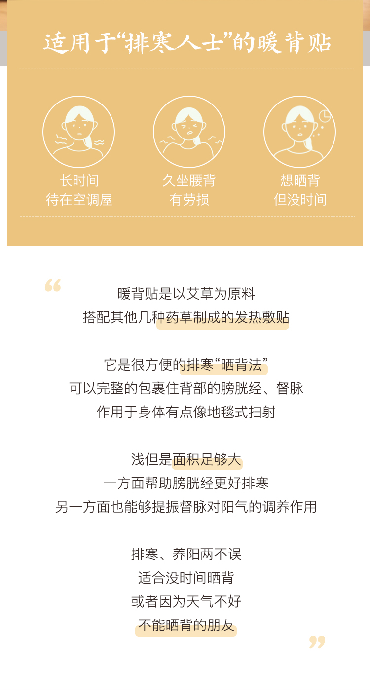 根据大家的反馈和建议,我们对背贴做了一轮升级迭代。增加了一片发热草药包,可以直接覆盖到八髎穴的位置,同时加宽了弹力腰带,佩戴更舒适。由于成本增加,我们对暖背贴的价格做了调整,如您介意请谨慎下单。
