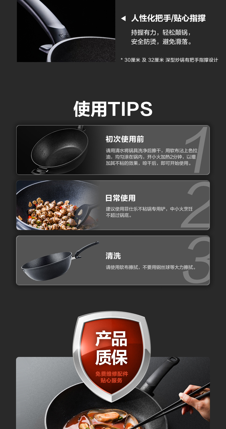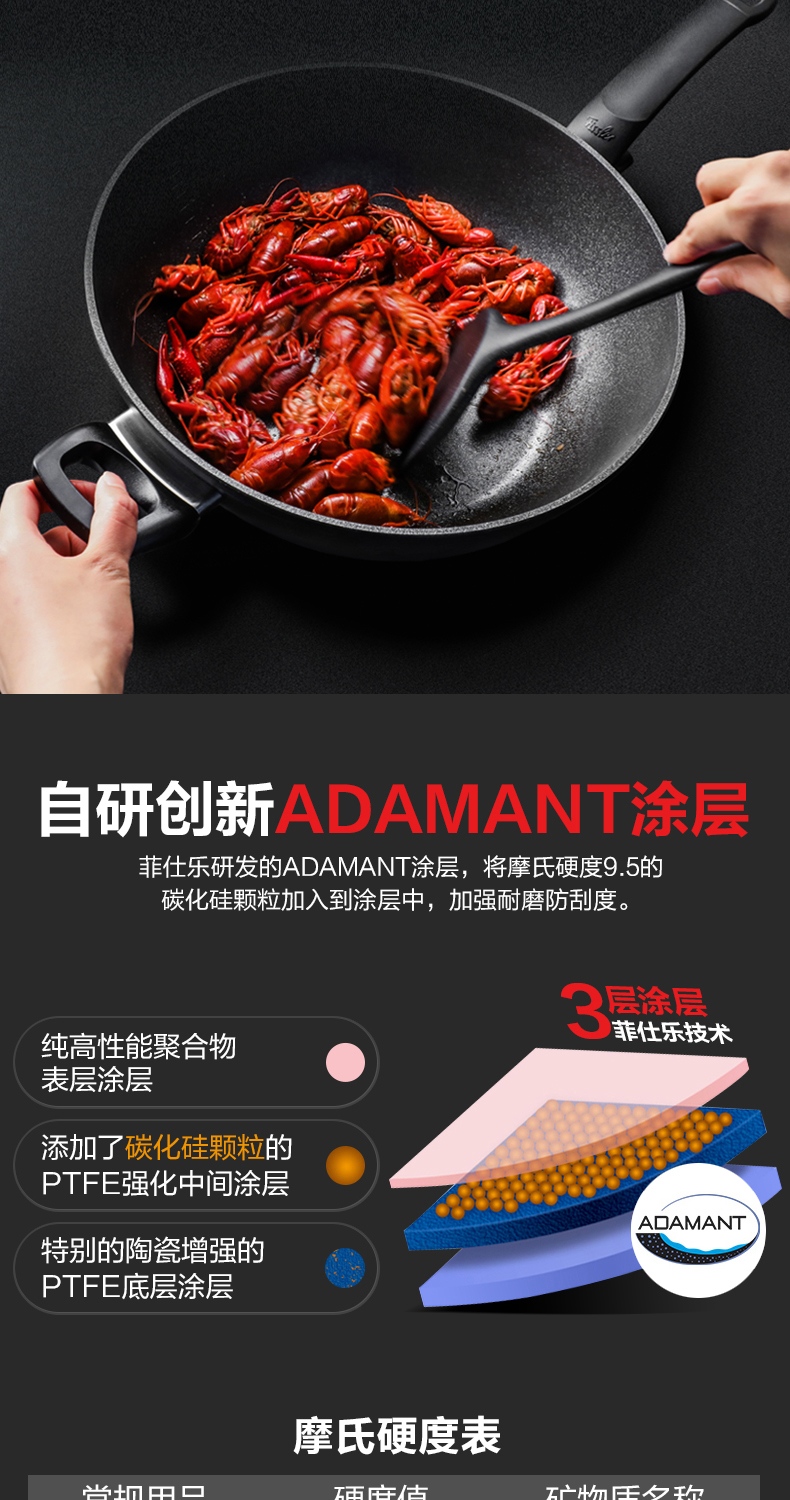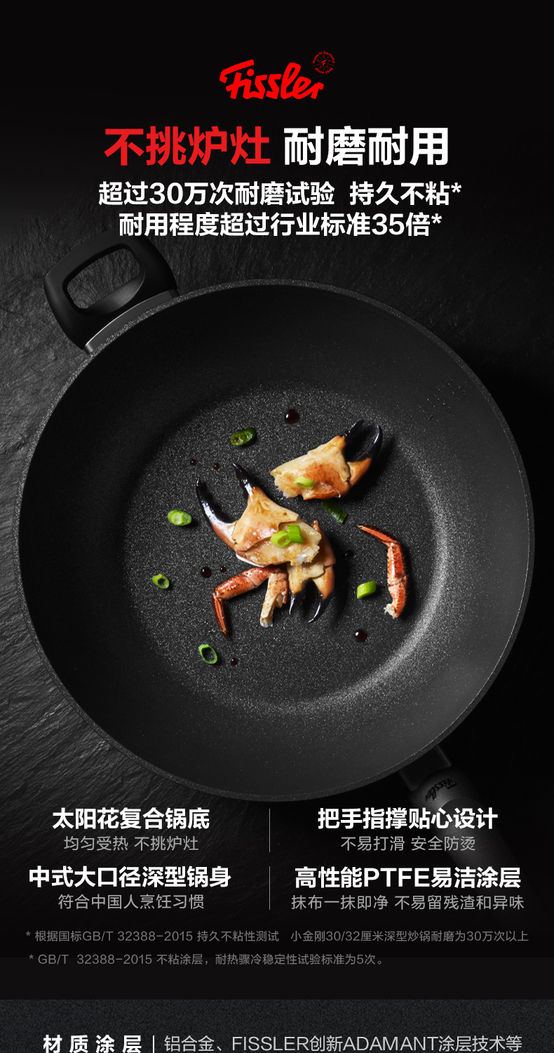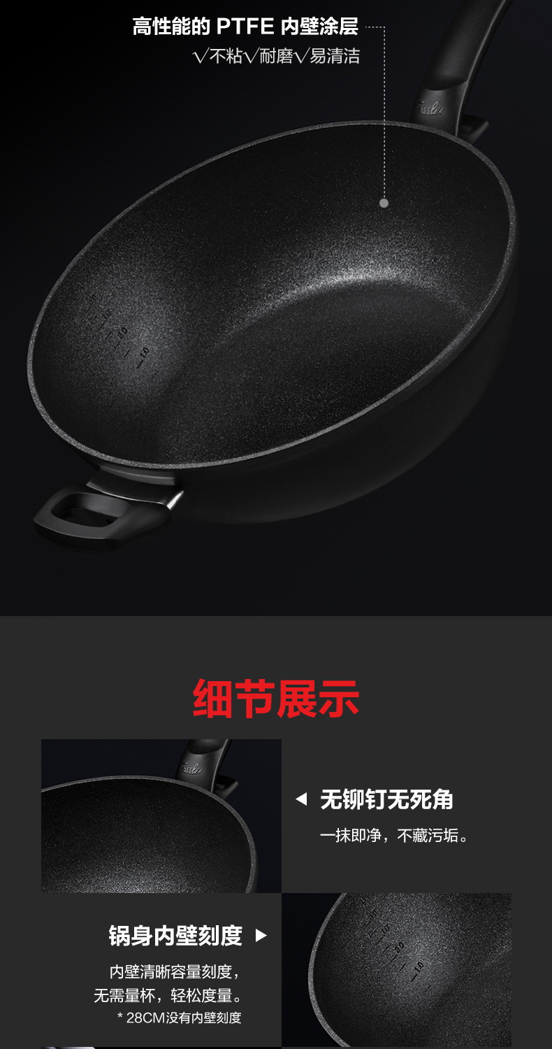 菲仕乐 小金刚深型不粘煎炒锅德国进口-赠配套玻璃盖及不粘锅铲