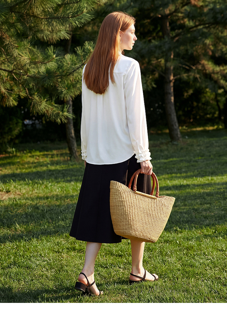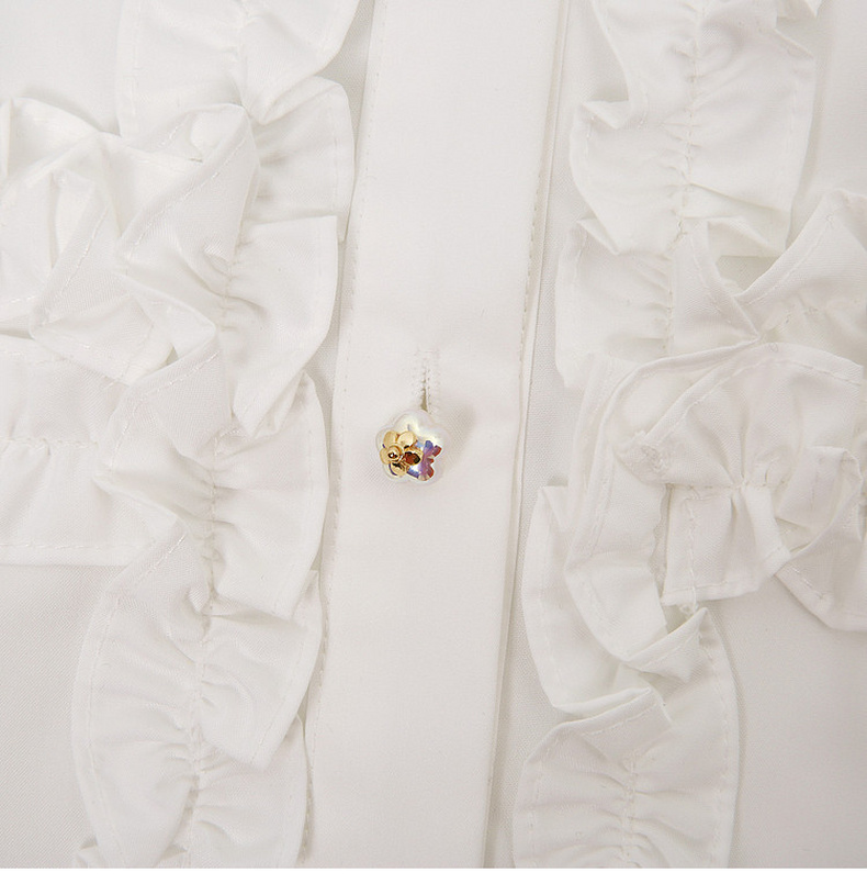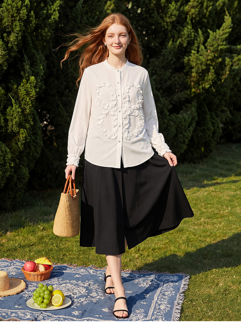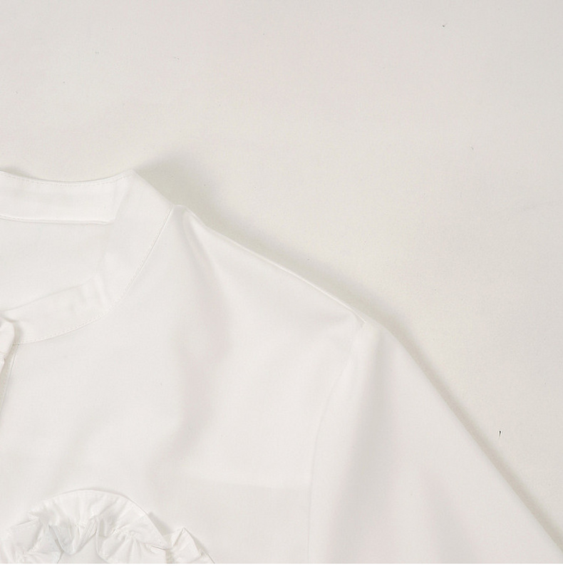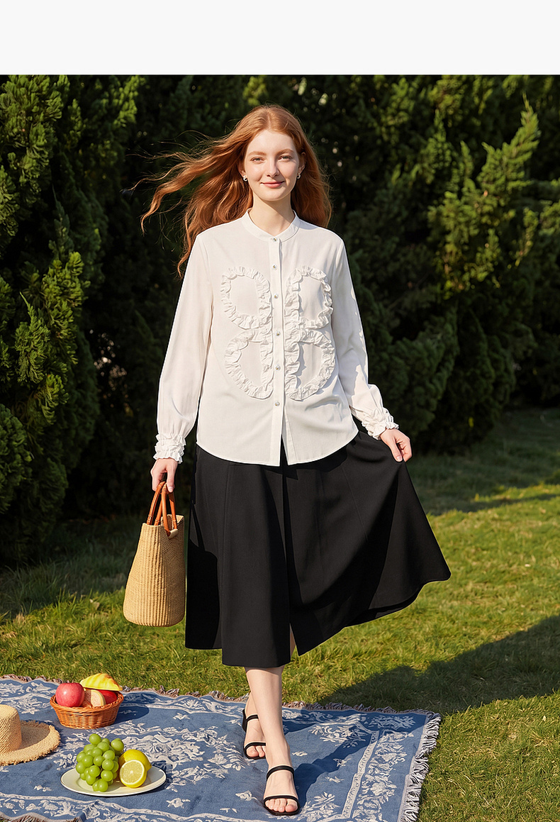 天猫同步【轻奢!法式花边】拉夏贝尔/La Chapelle法式立领轻奢排扣通勤长袖衬衫简约净版气质上衣