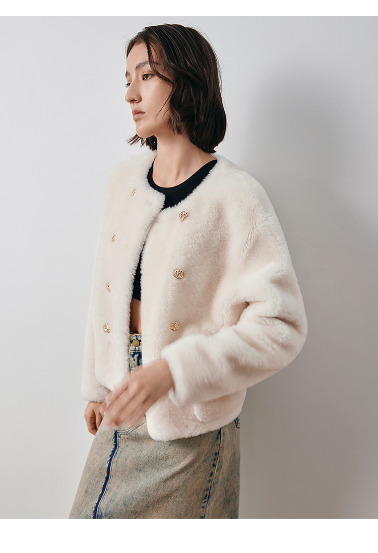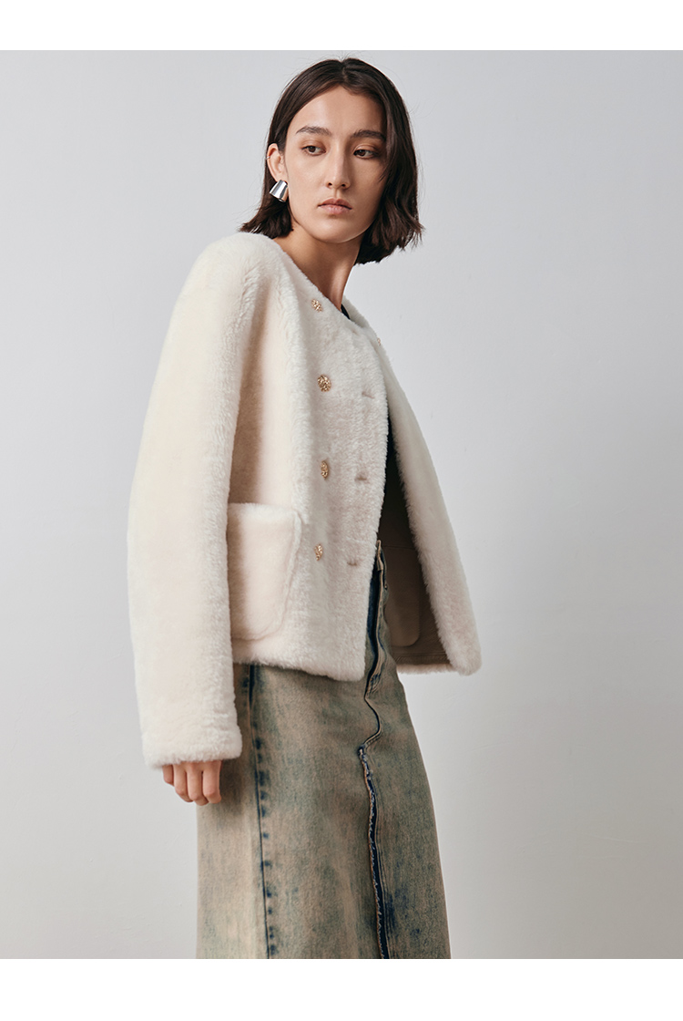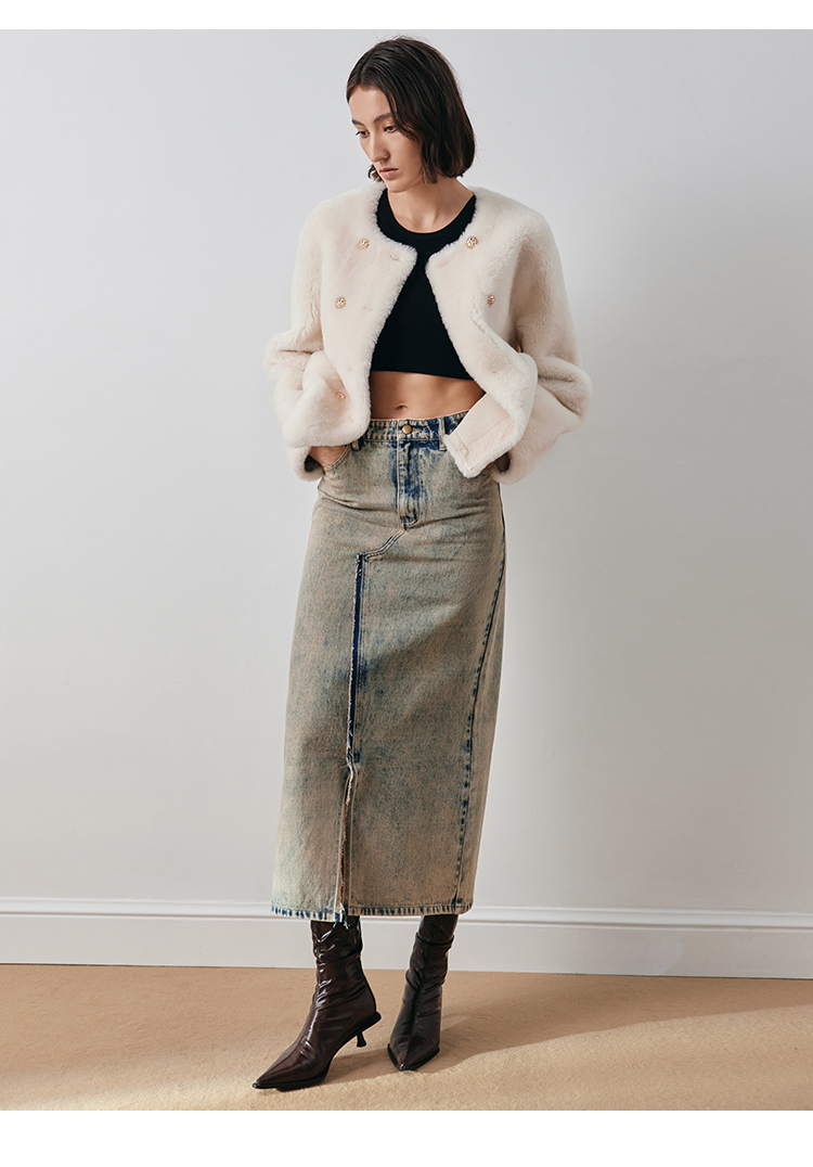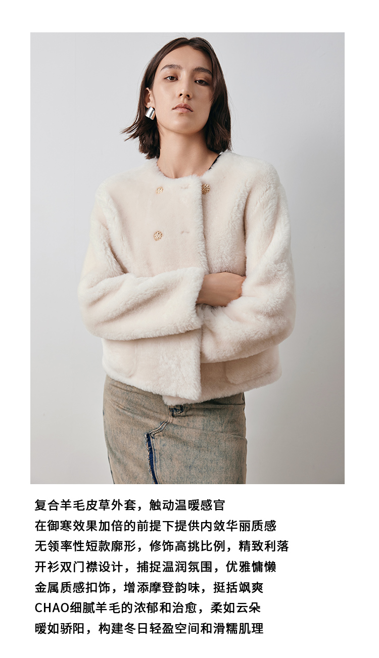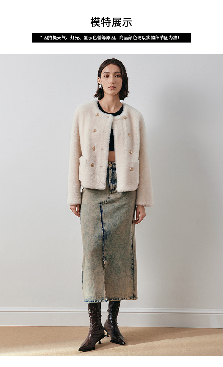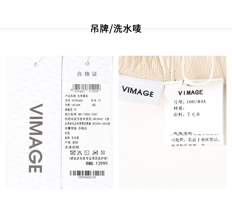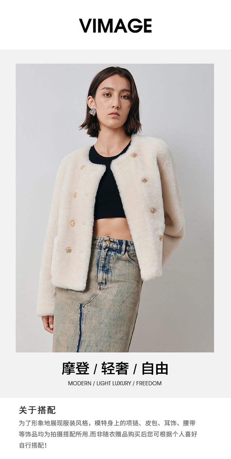 VIMAGE纬漫纪冬季新款气质修身羊皮革外套大衣V2093606