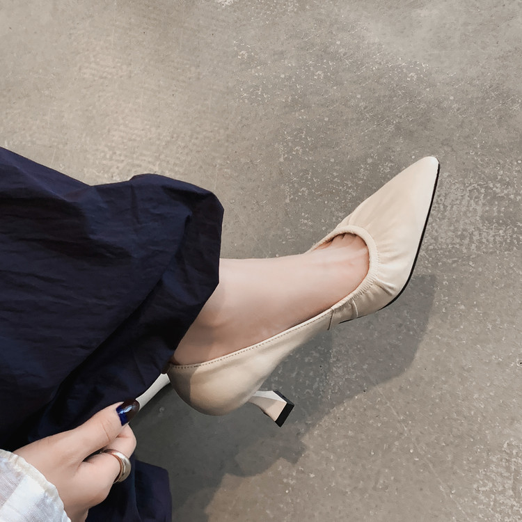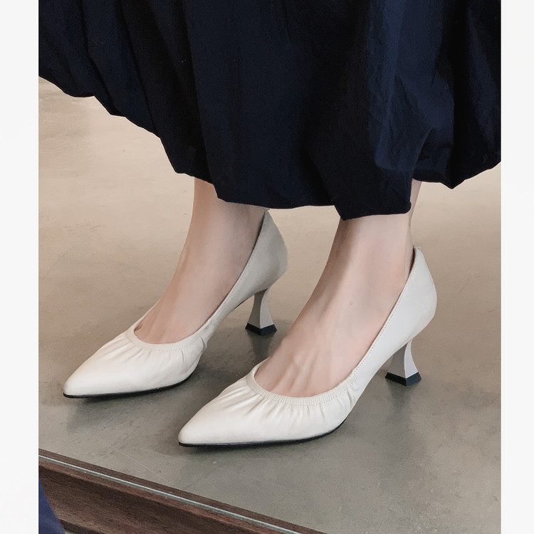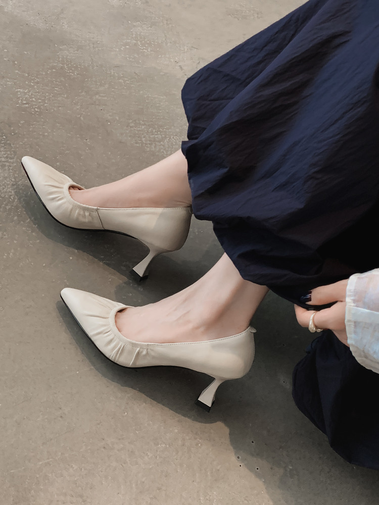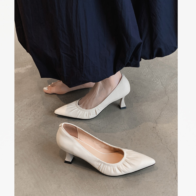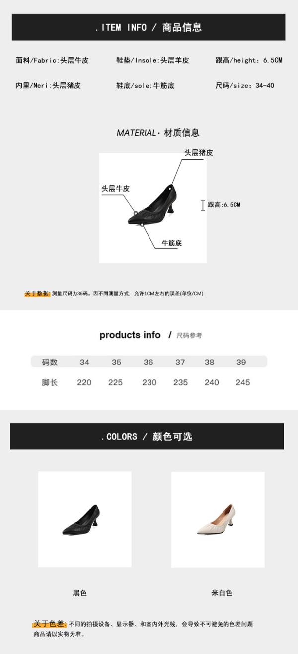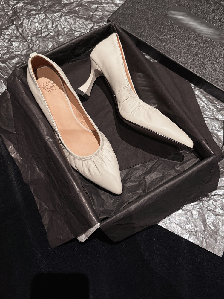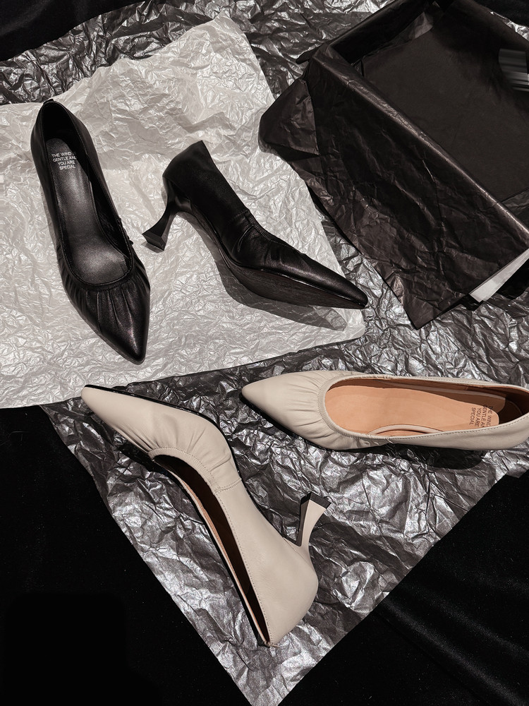 【预售5天】通勤细跟黑色工作鞋秋新款巨软牛皮尖头褶皱高跟鞋DYJ&CX7999-1